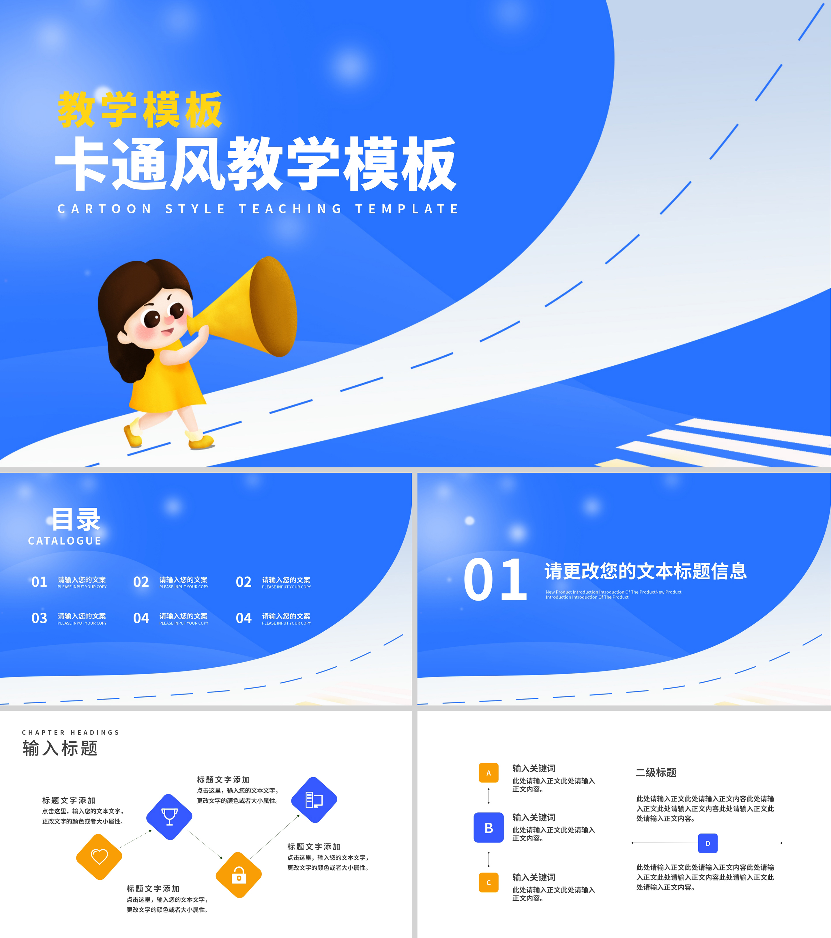 卡通风蓝色喇叭教学汇报PPT模板