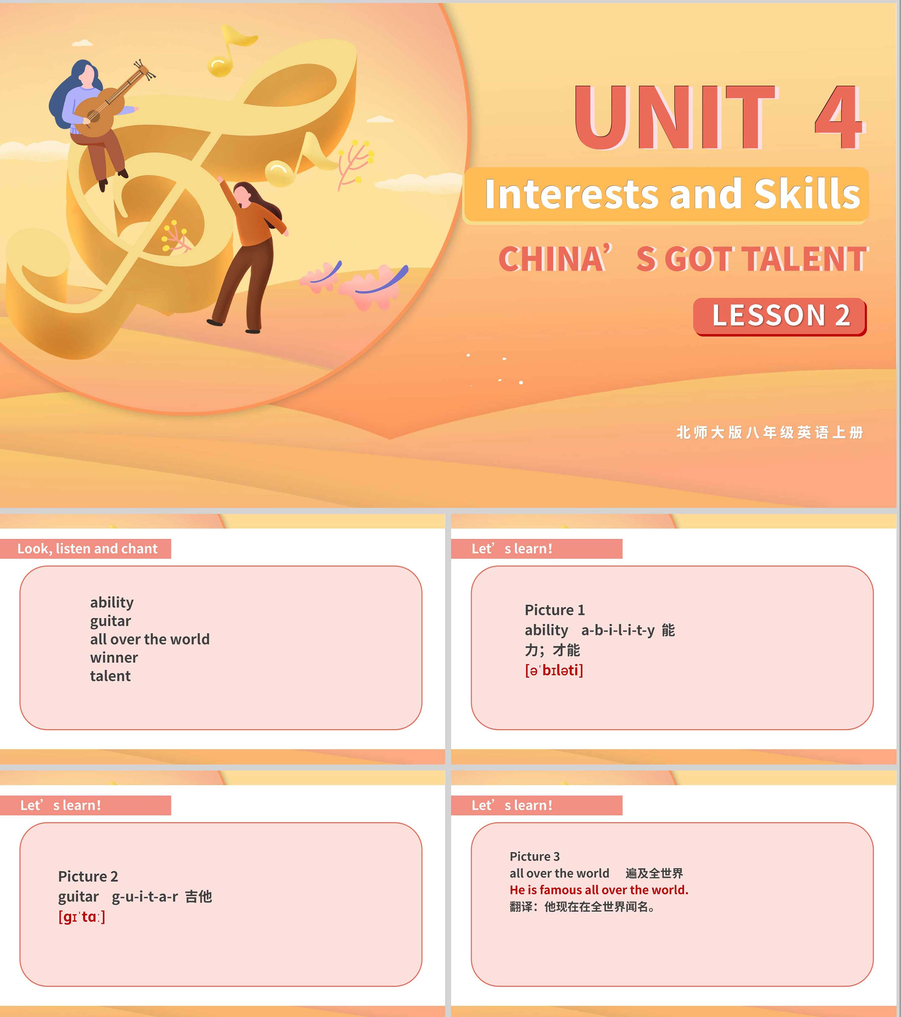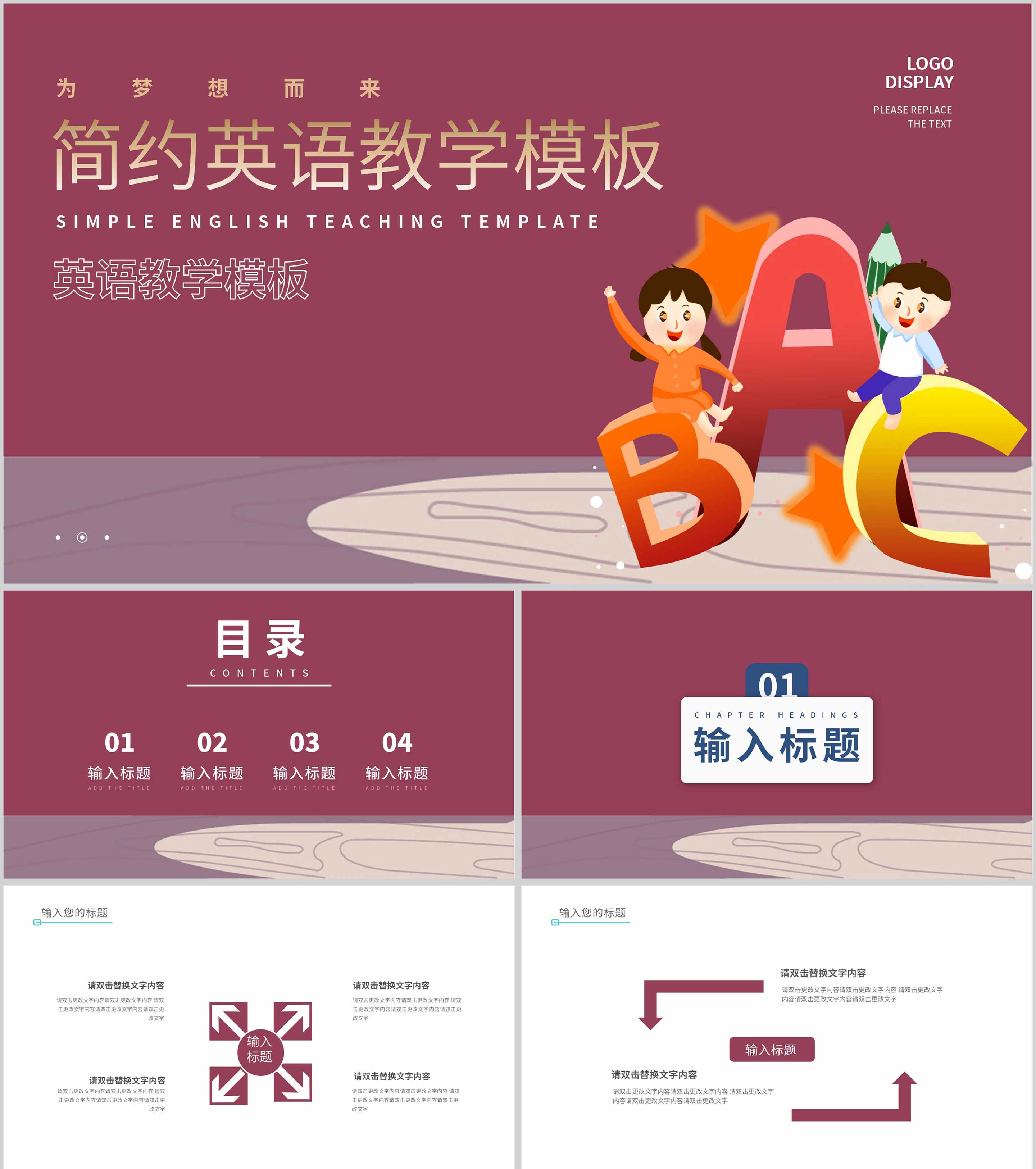 红色简约风英语教学PPT模板