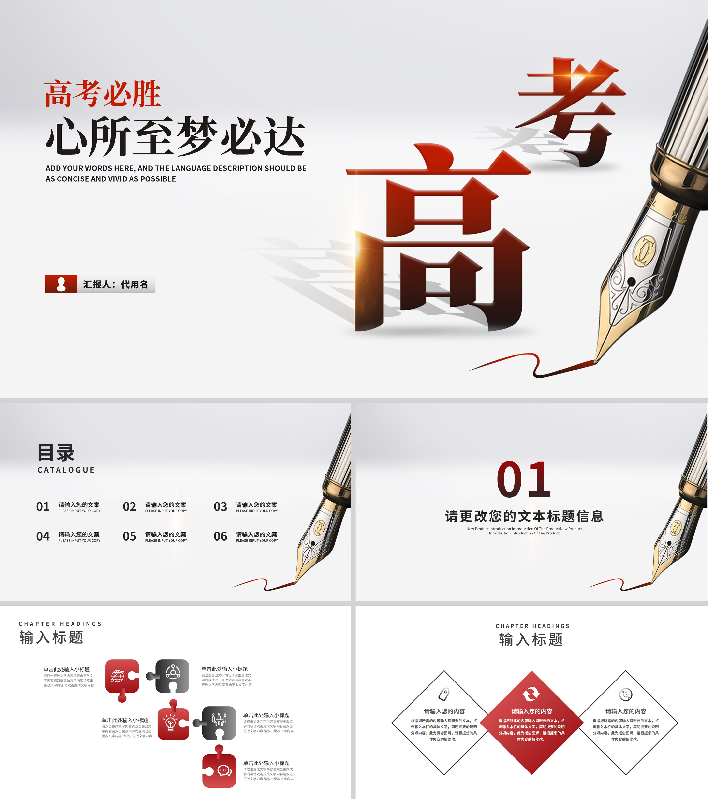 简约风钢笔学生高考汇报演讲PPT模板