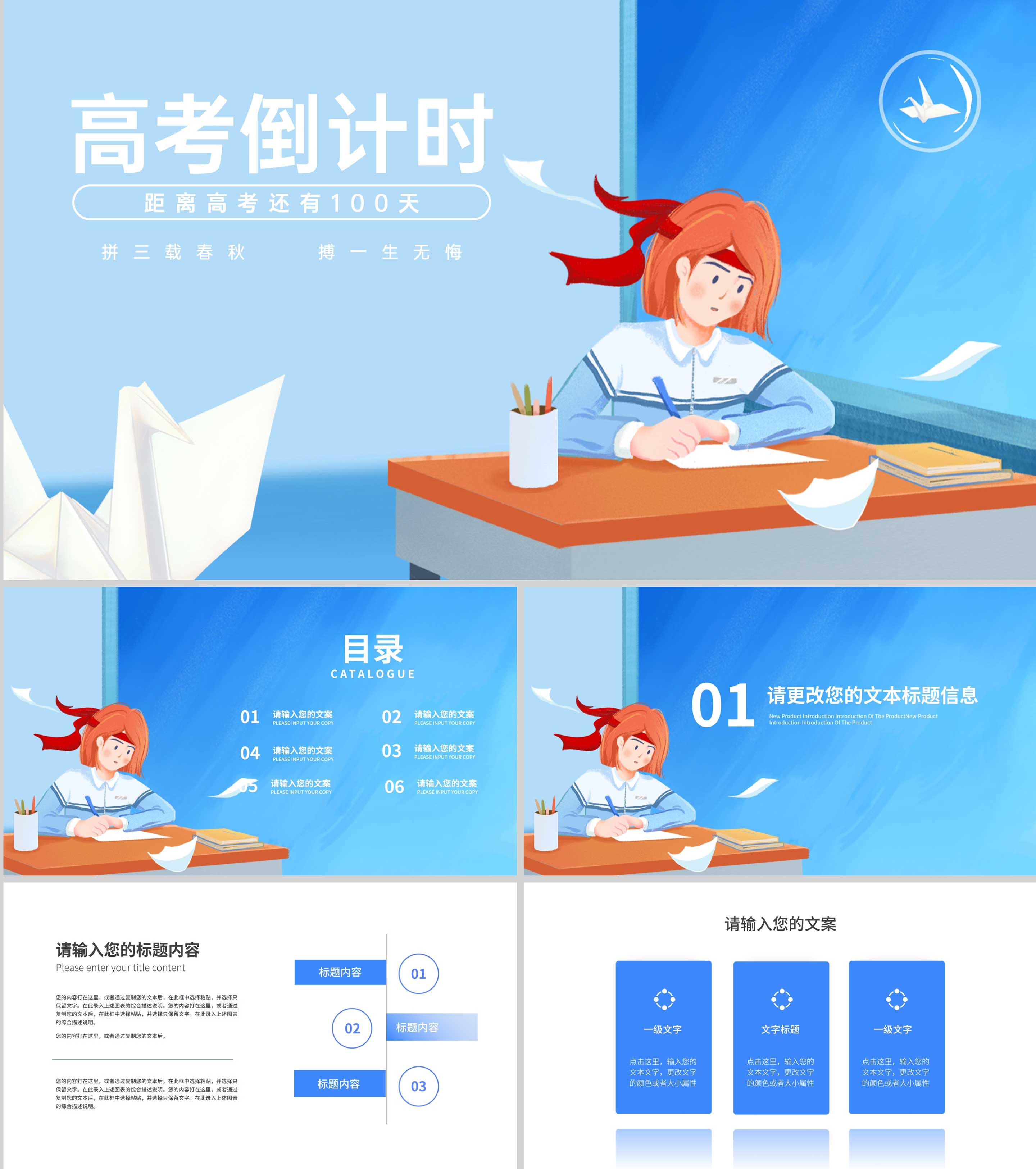 卡通风蓝色学生奋战高考倒计时PPT模板
