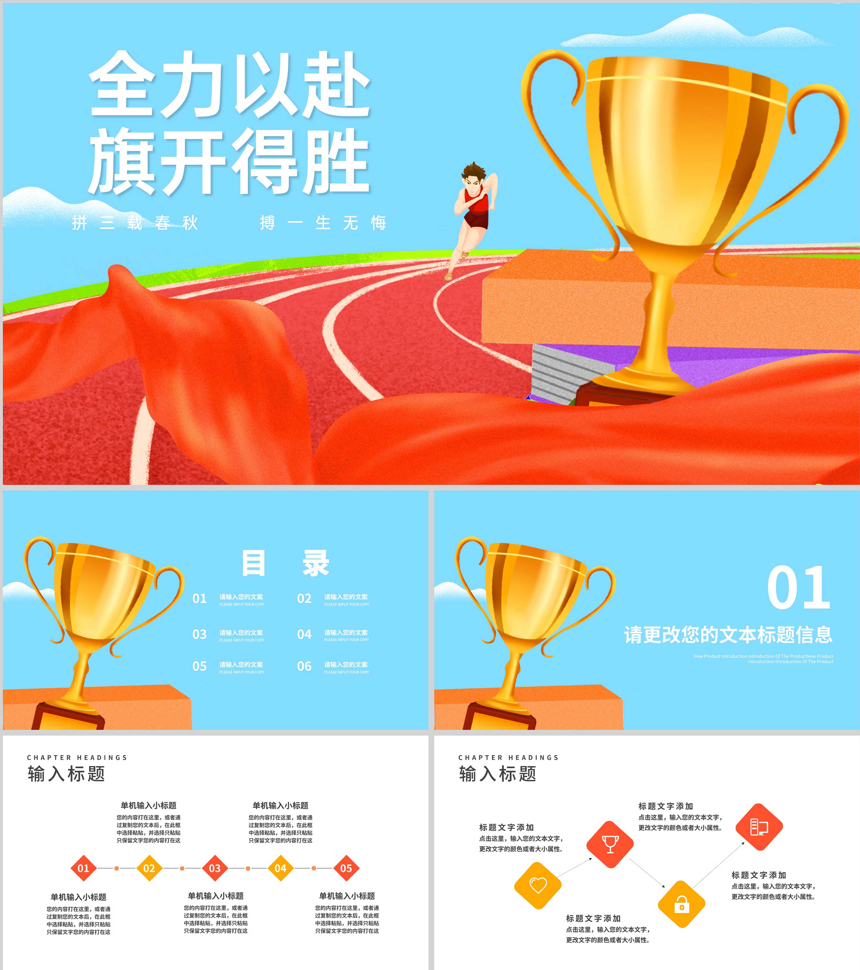 卡通风跑道奖杯高考冲刺倒计时PPT模板