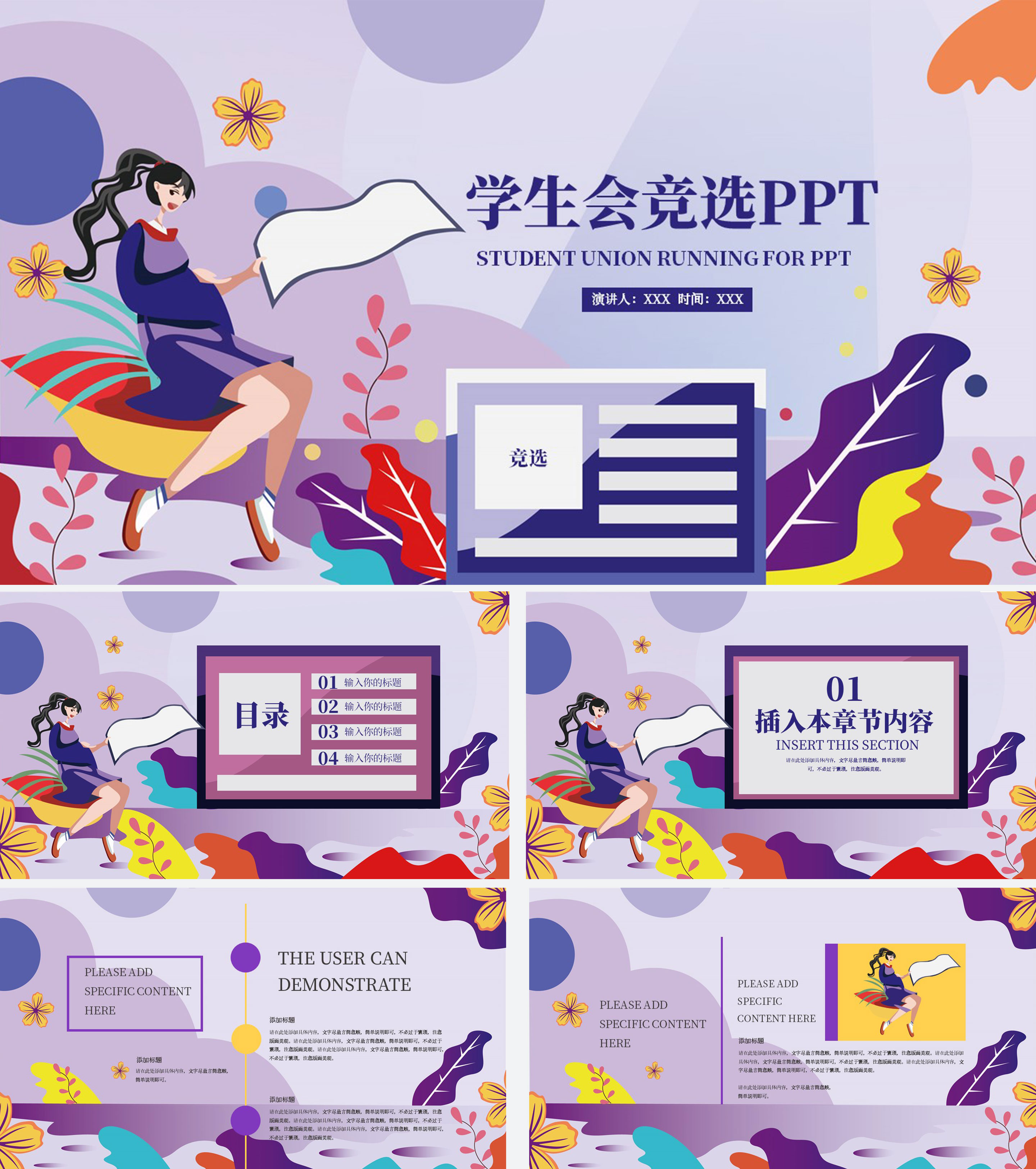 蓝色学生校园学生会干部竞选汇报PPT模板