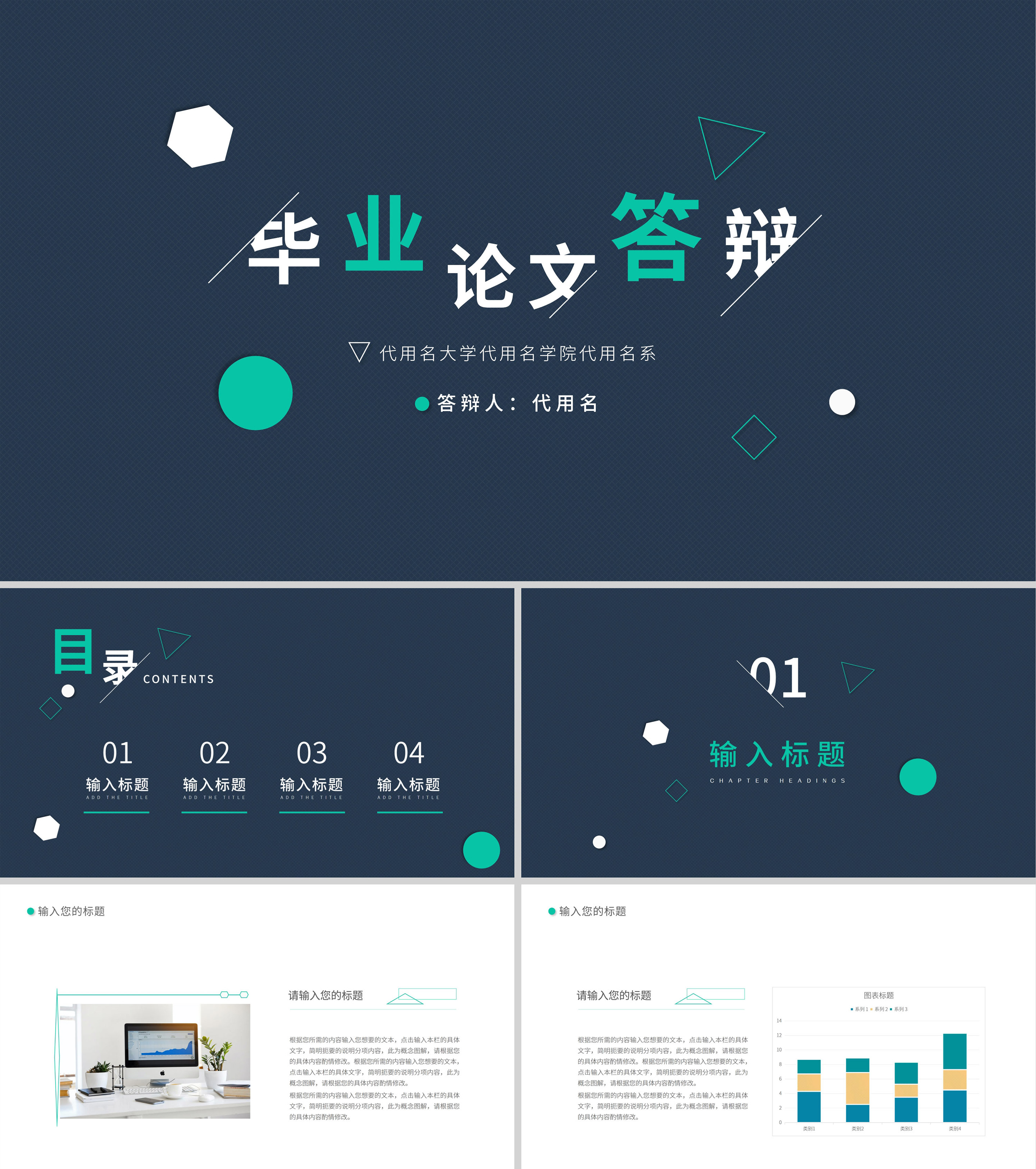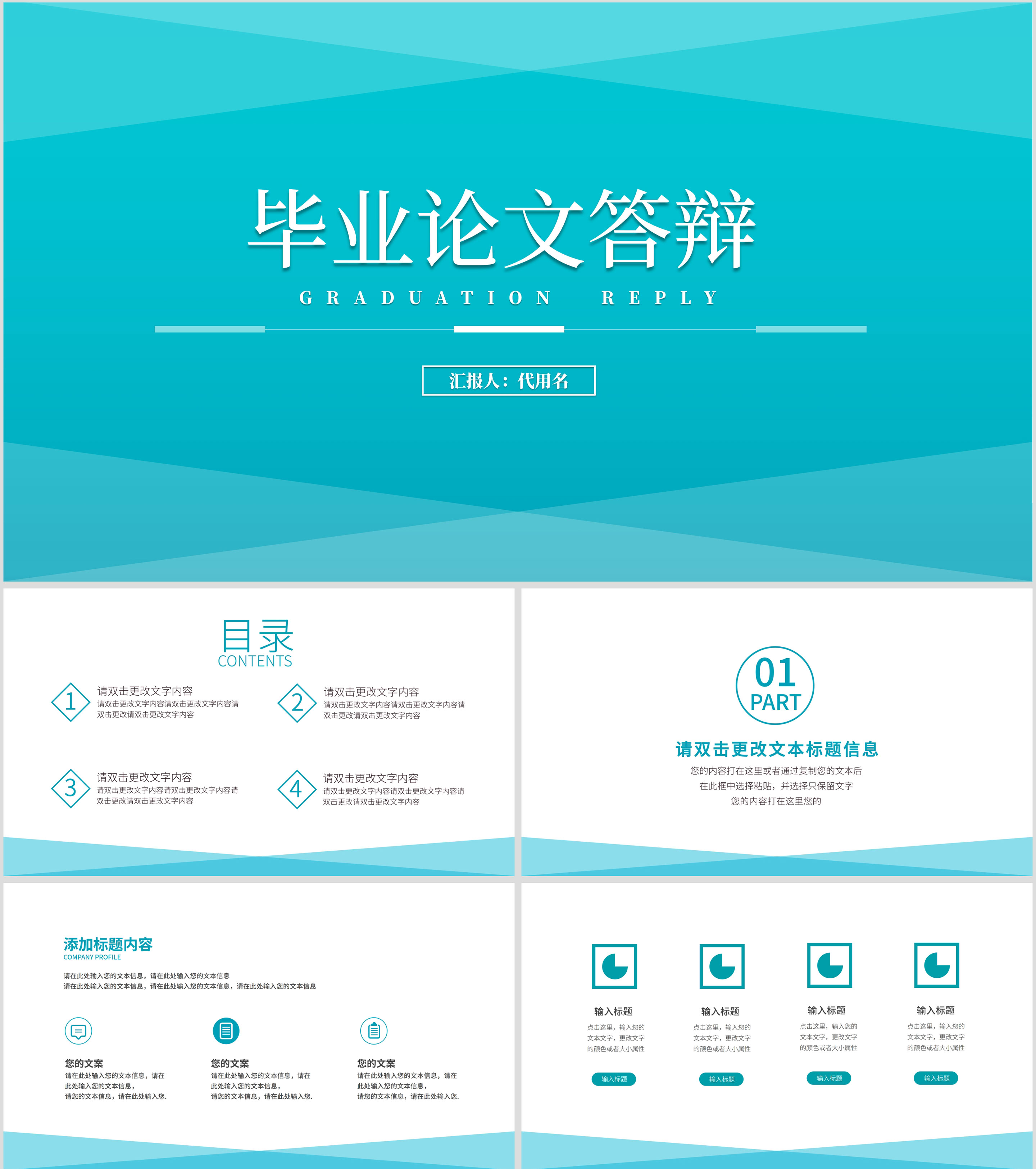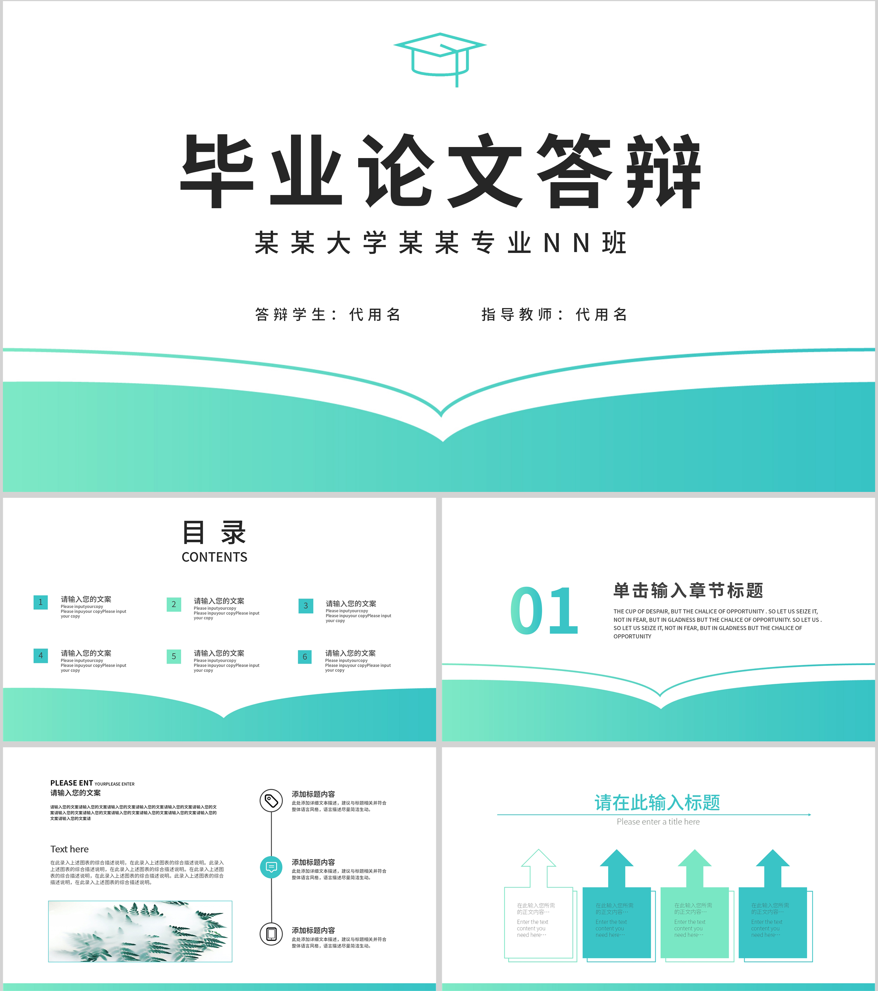蓝绿简约风毕业答辩汇报PPT模板