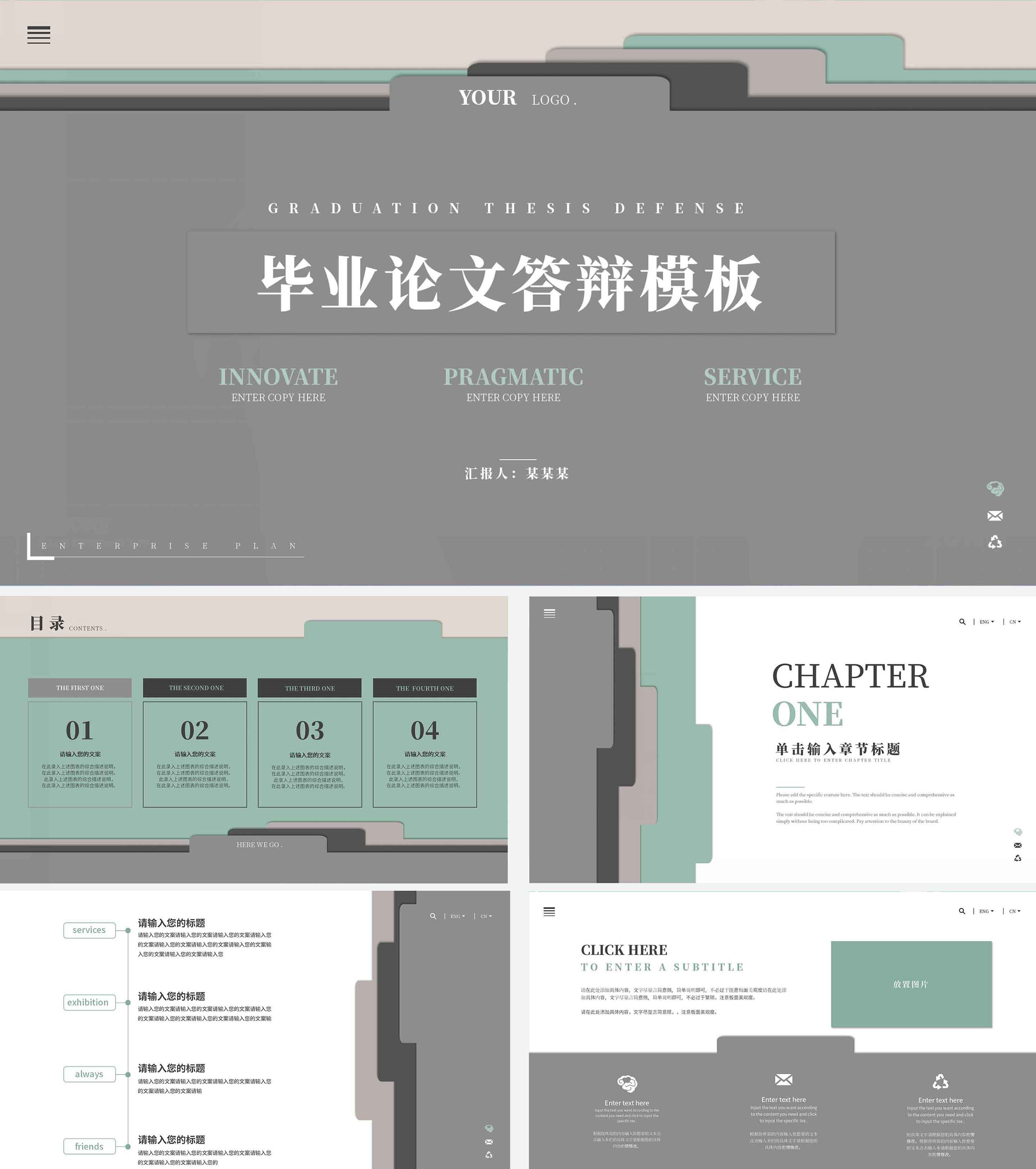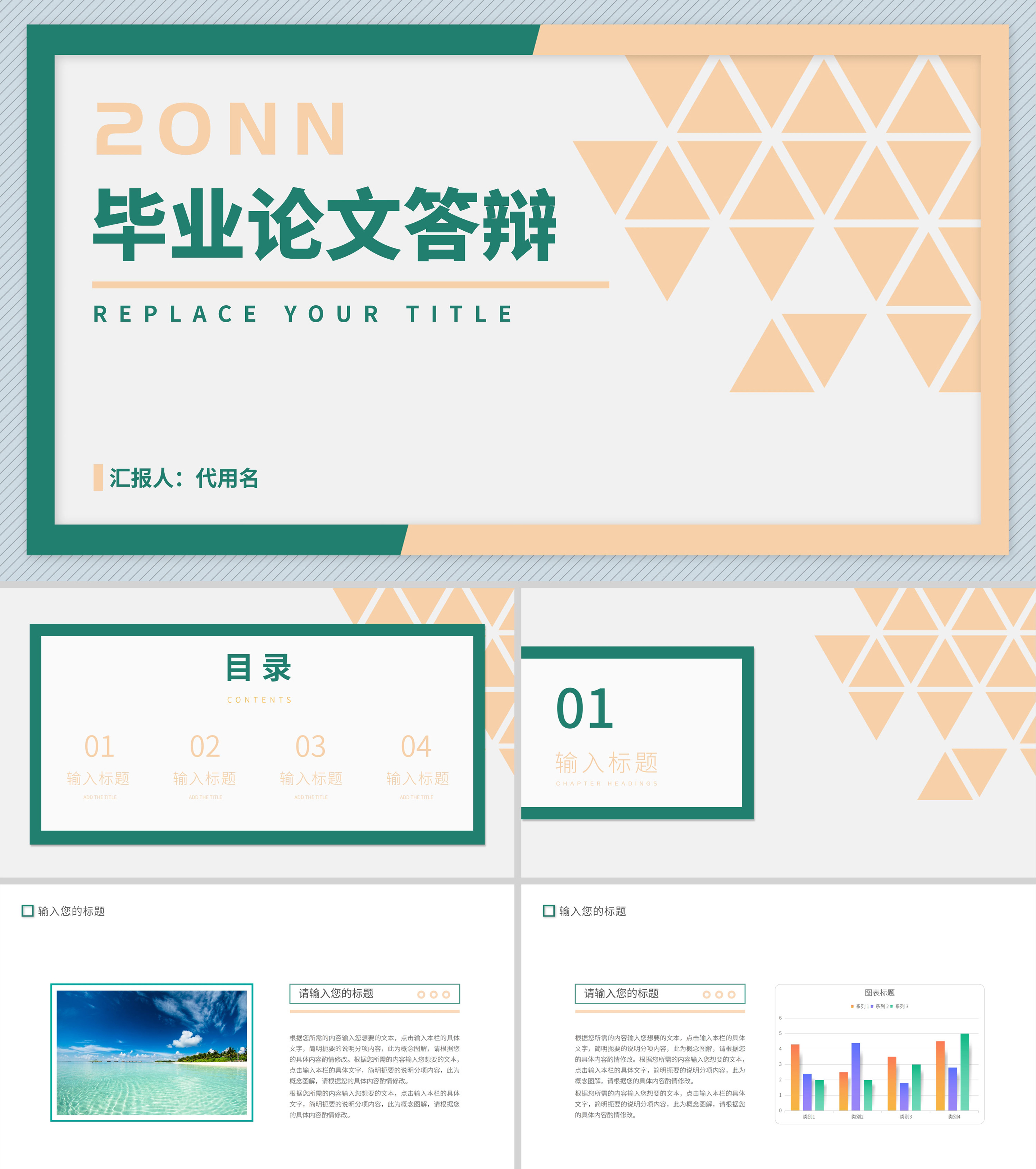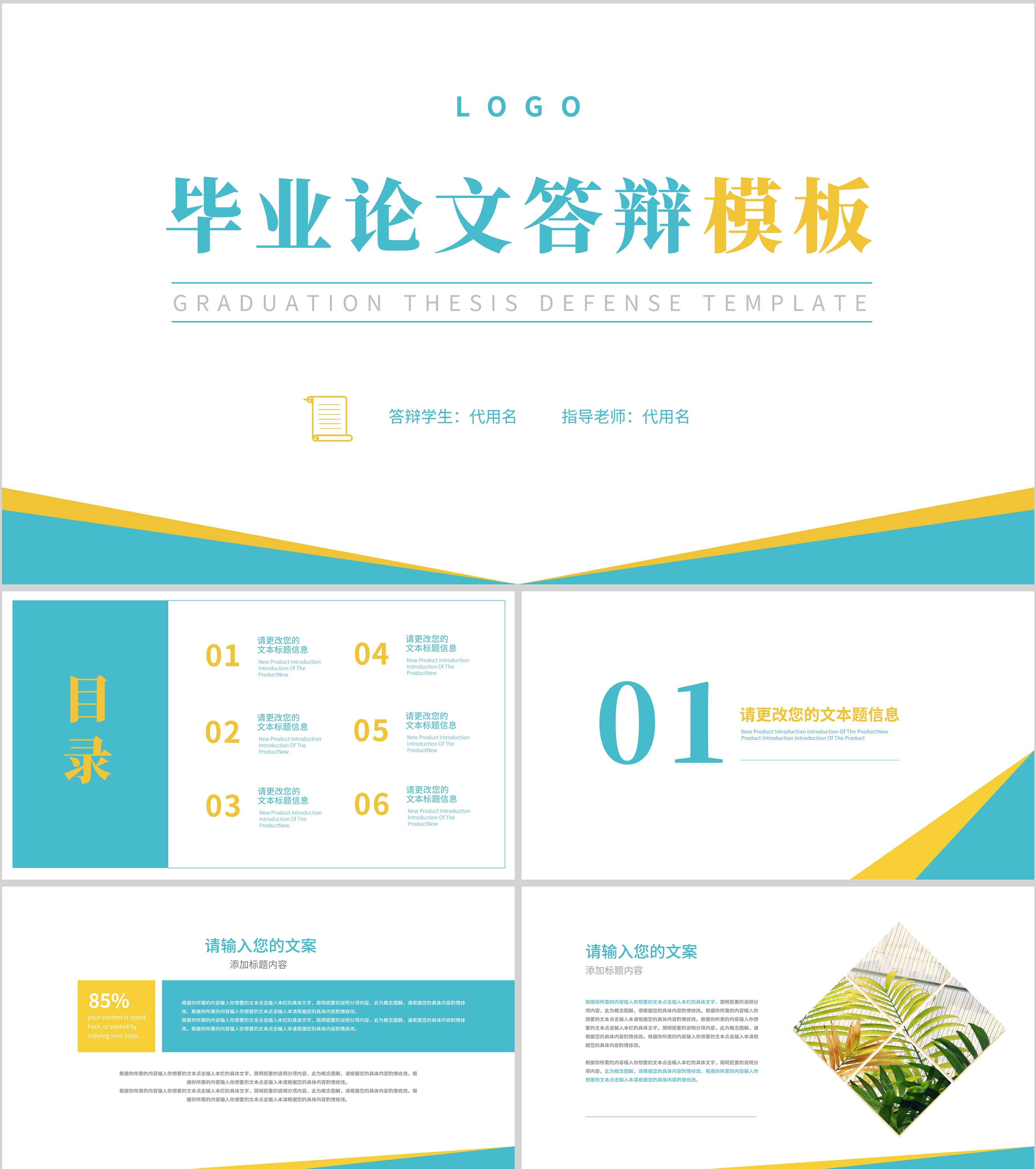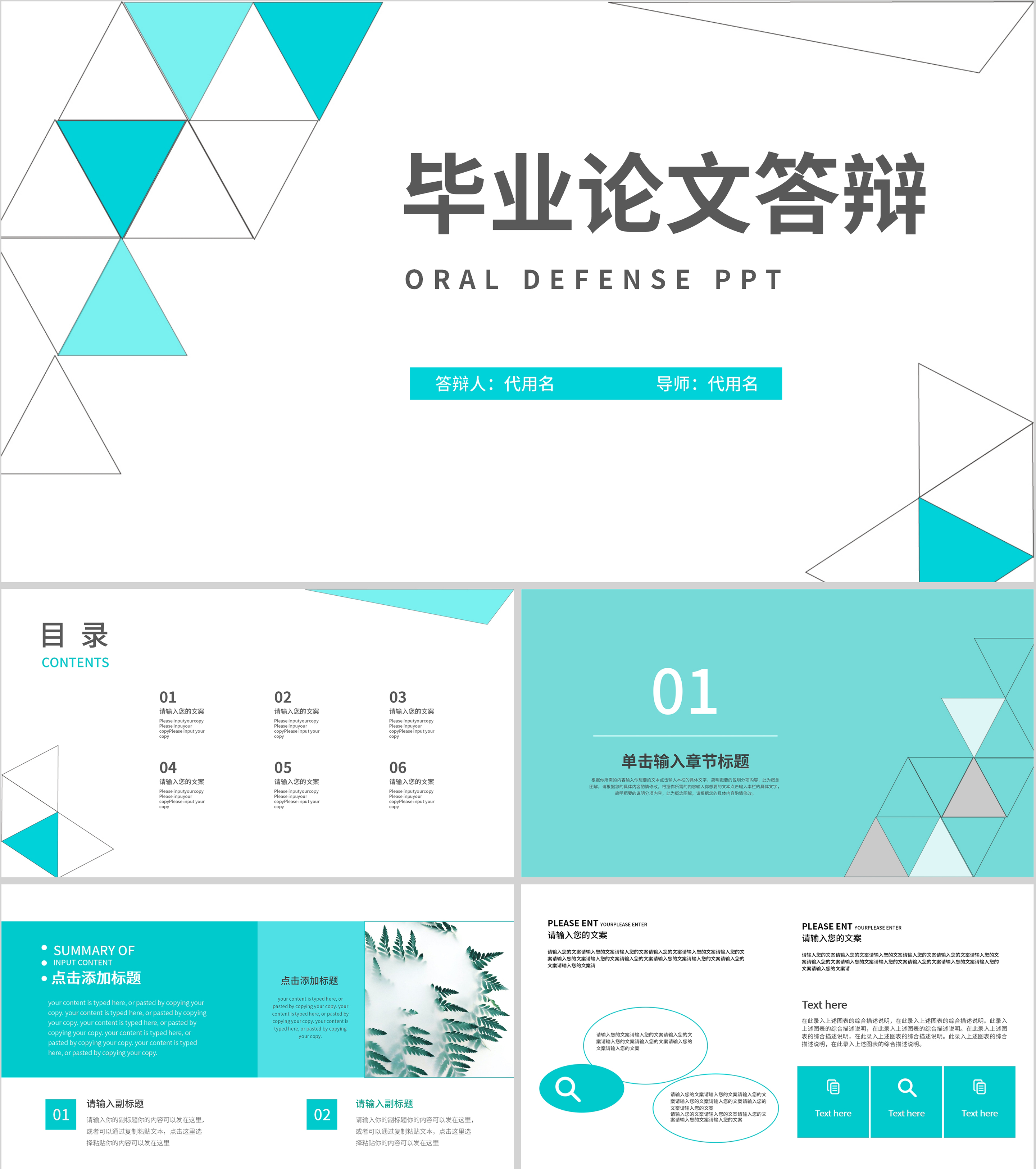 蓝绿简约风毕业答辩汇报PPT模板