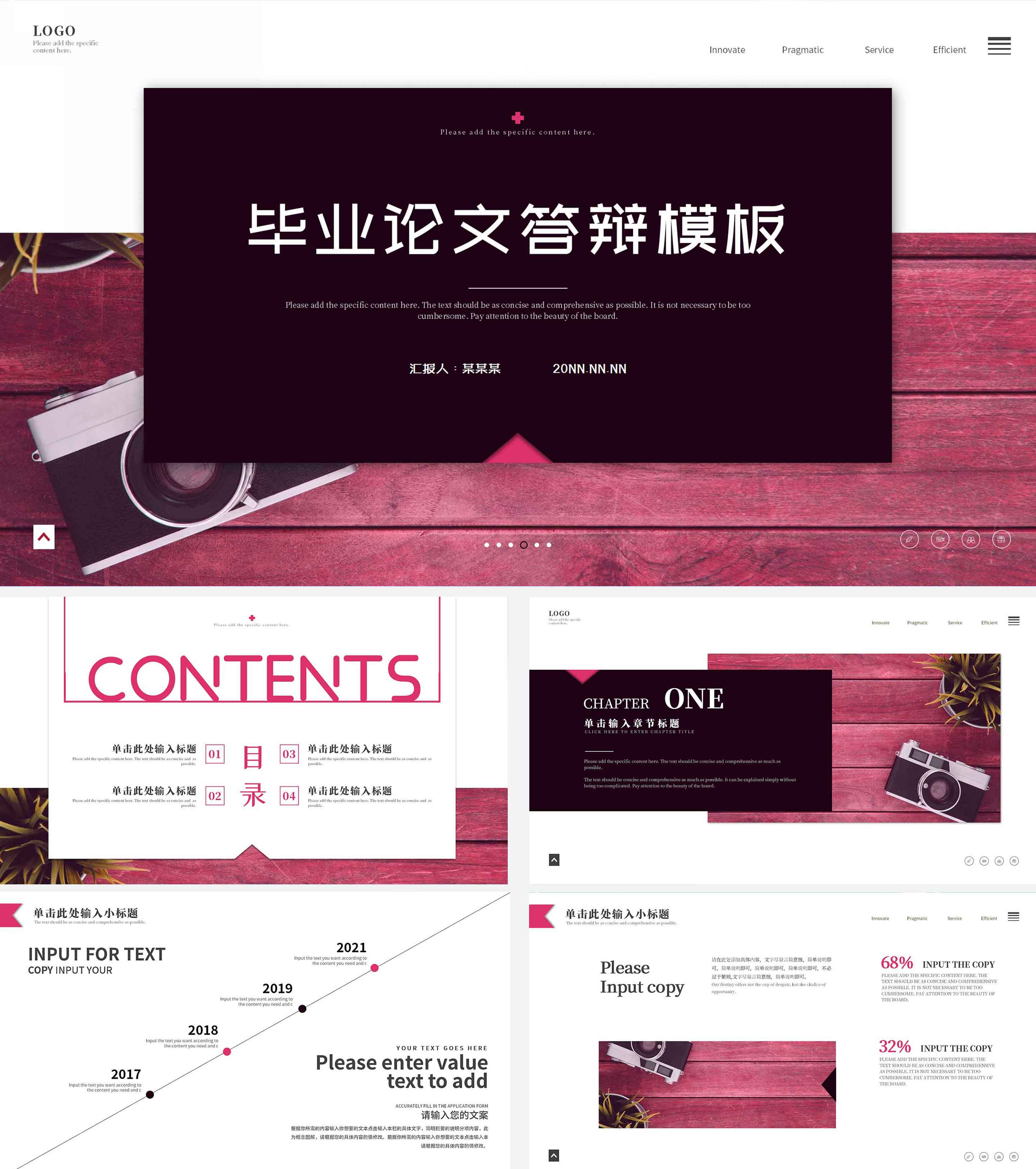 粉色简约风毕业论文答辩PPT模板