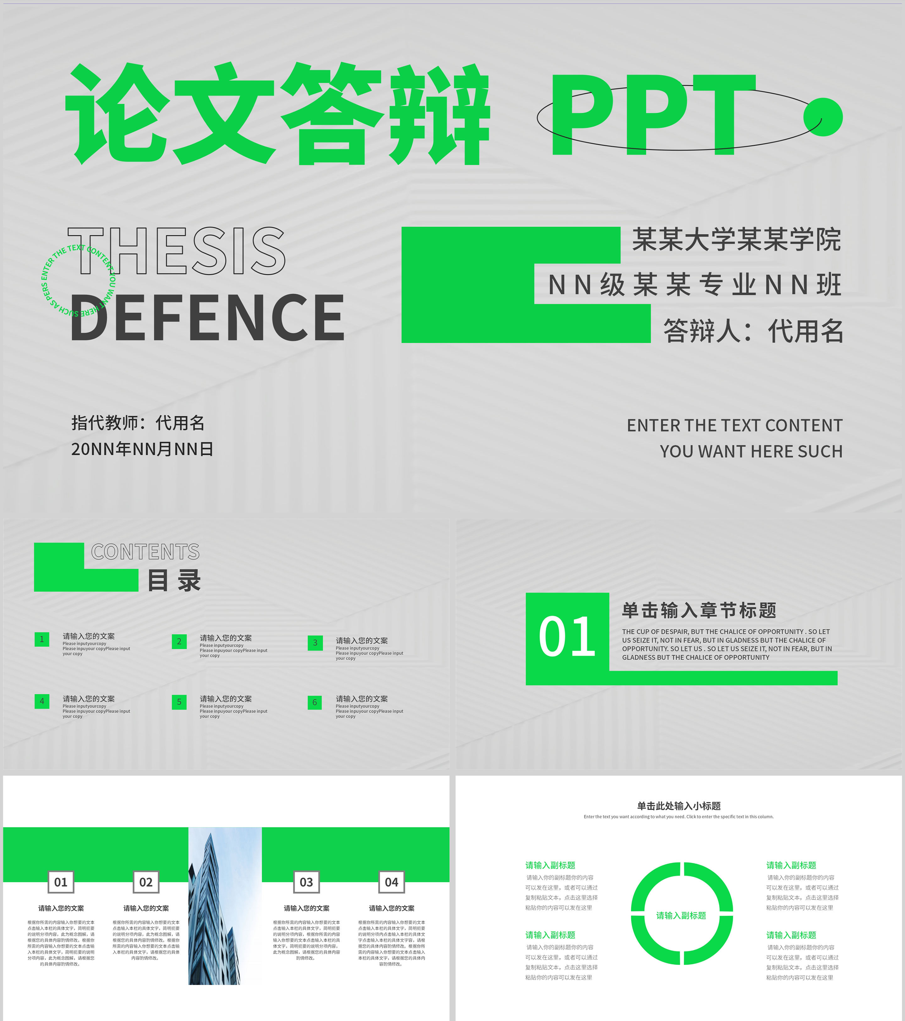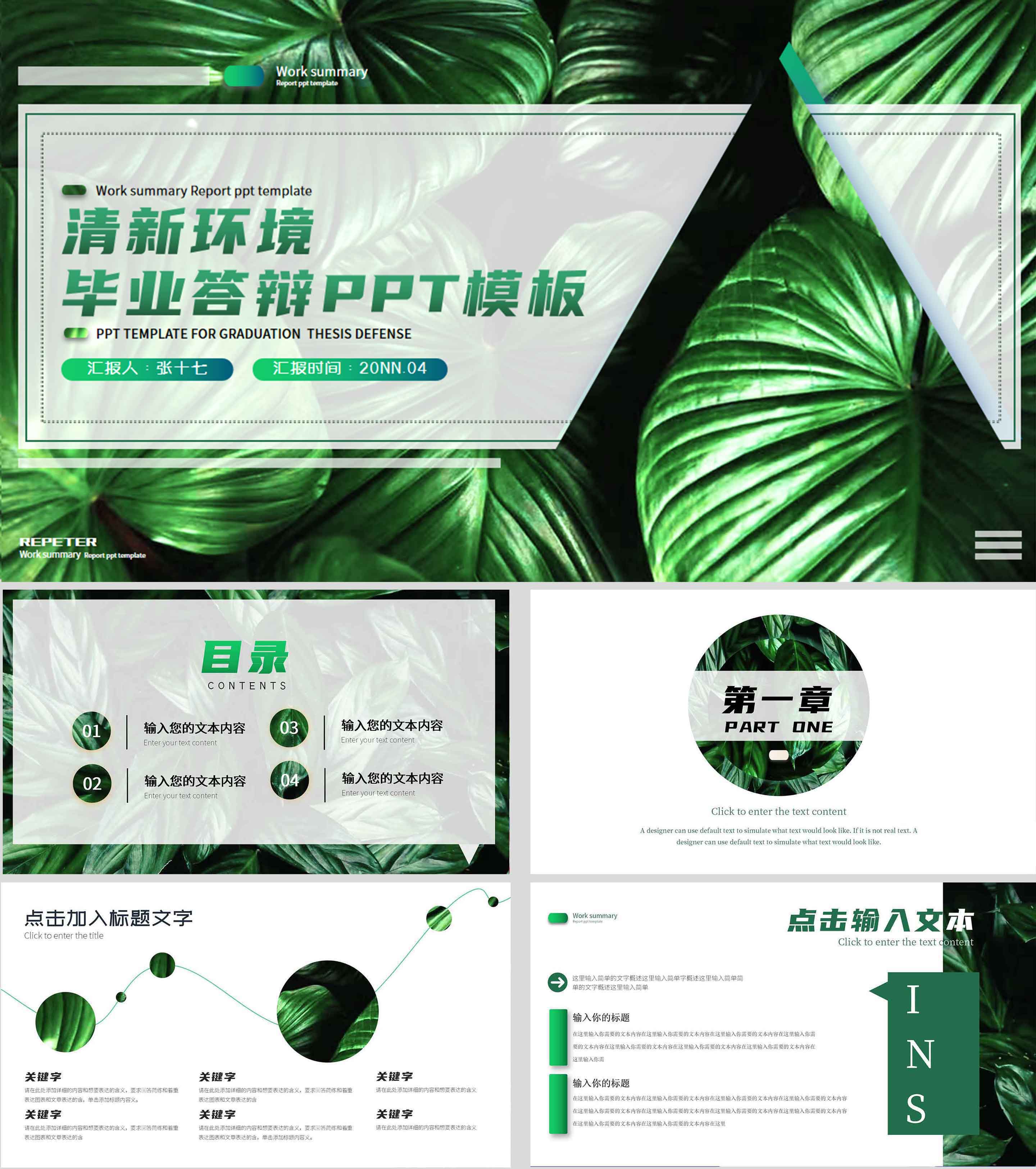 绿色清新简约风毕业答辩PPT模板