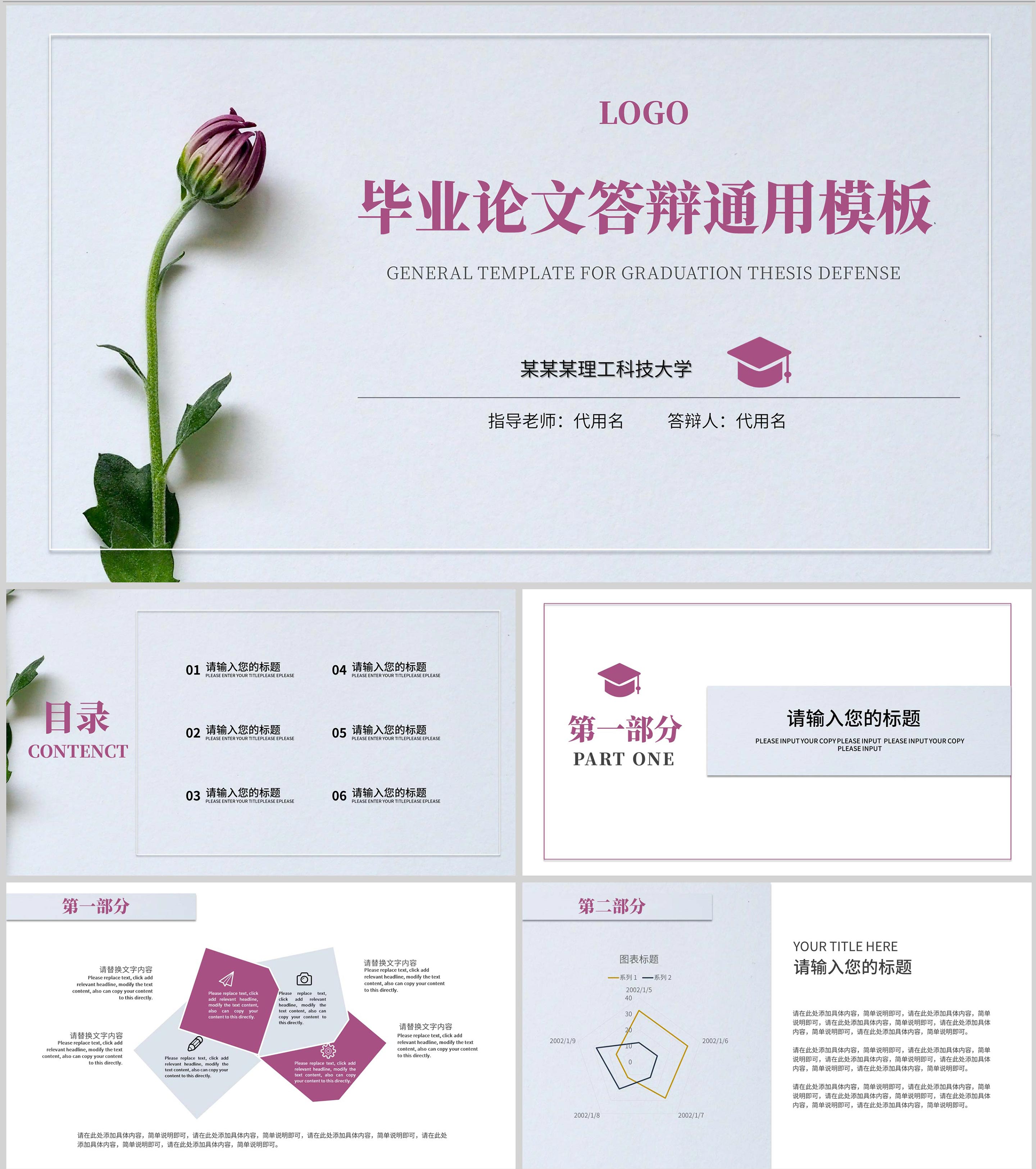 紫色小清新毕业论文答辩PPT模板