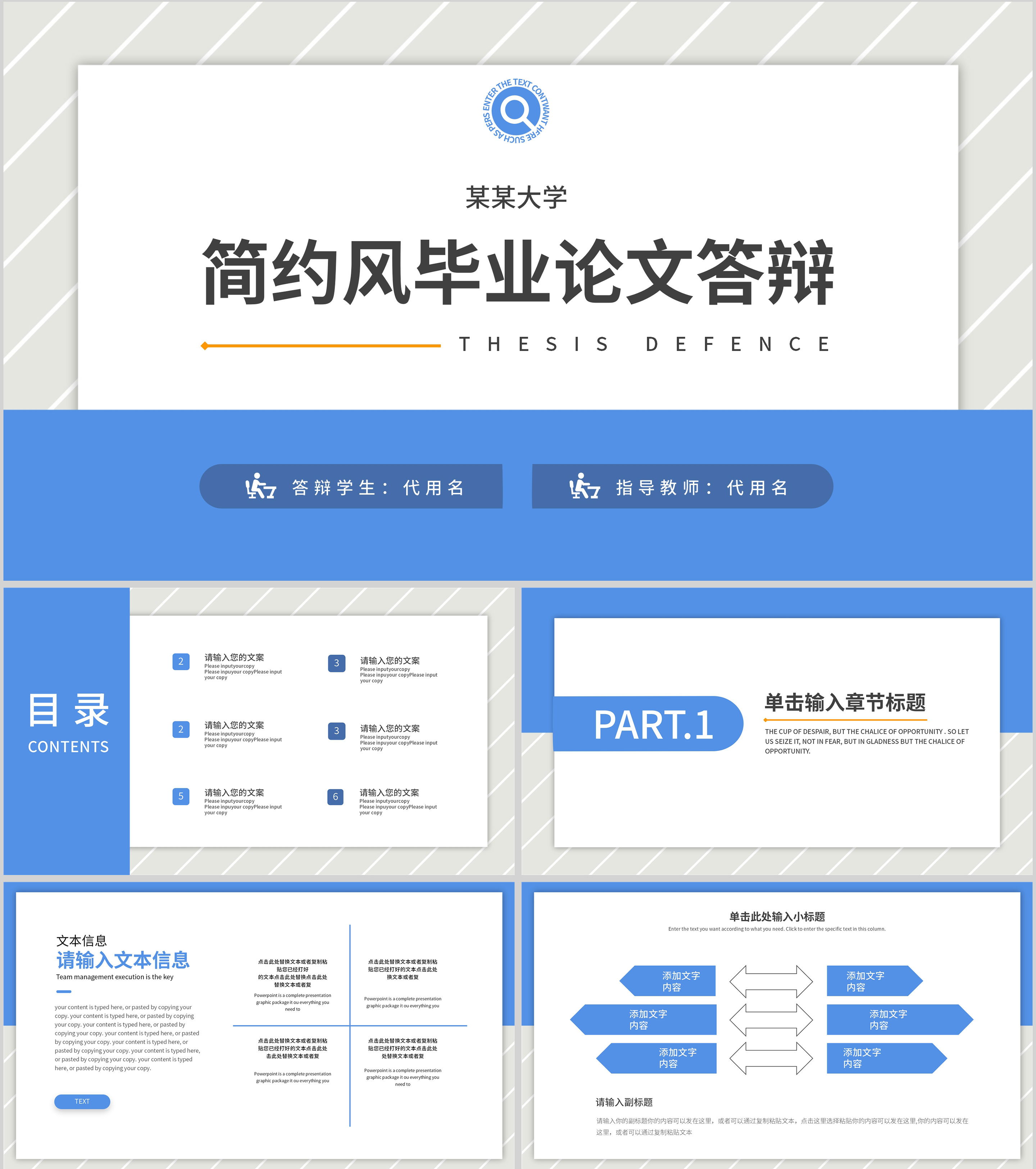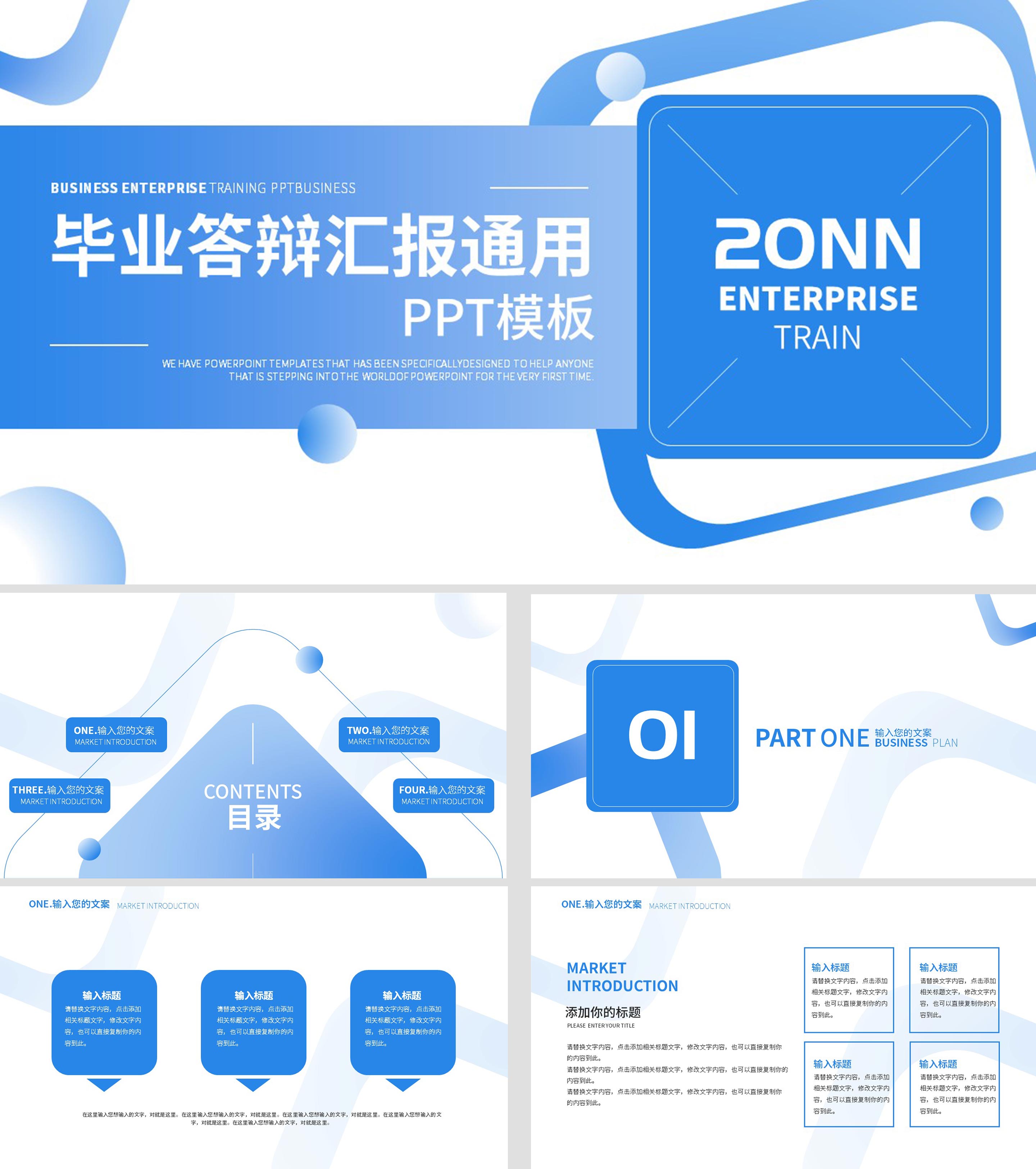 蓝色简约风毕业答辩PPT模板
