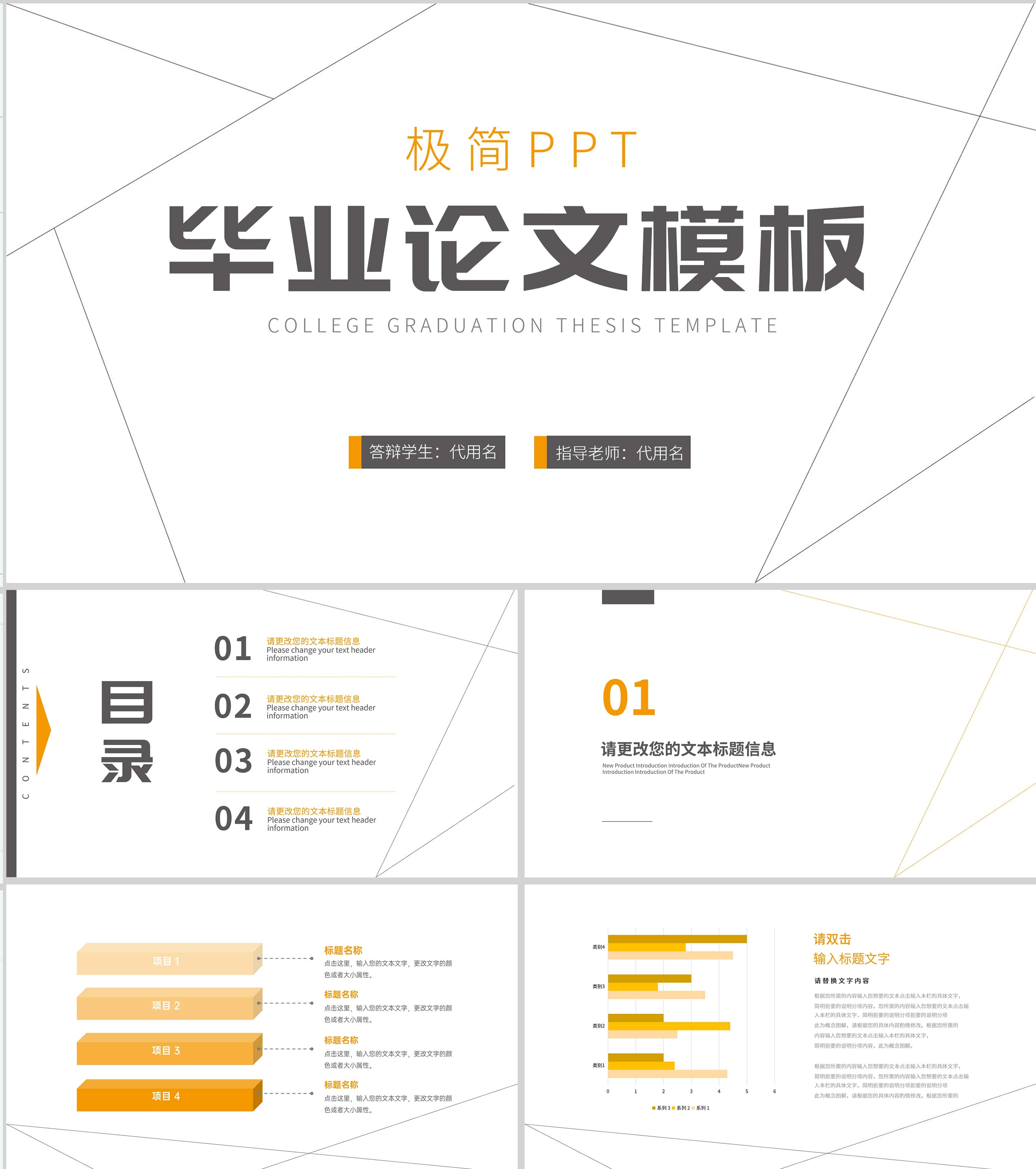 极简线条毕业论文答辩PPT模板