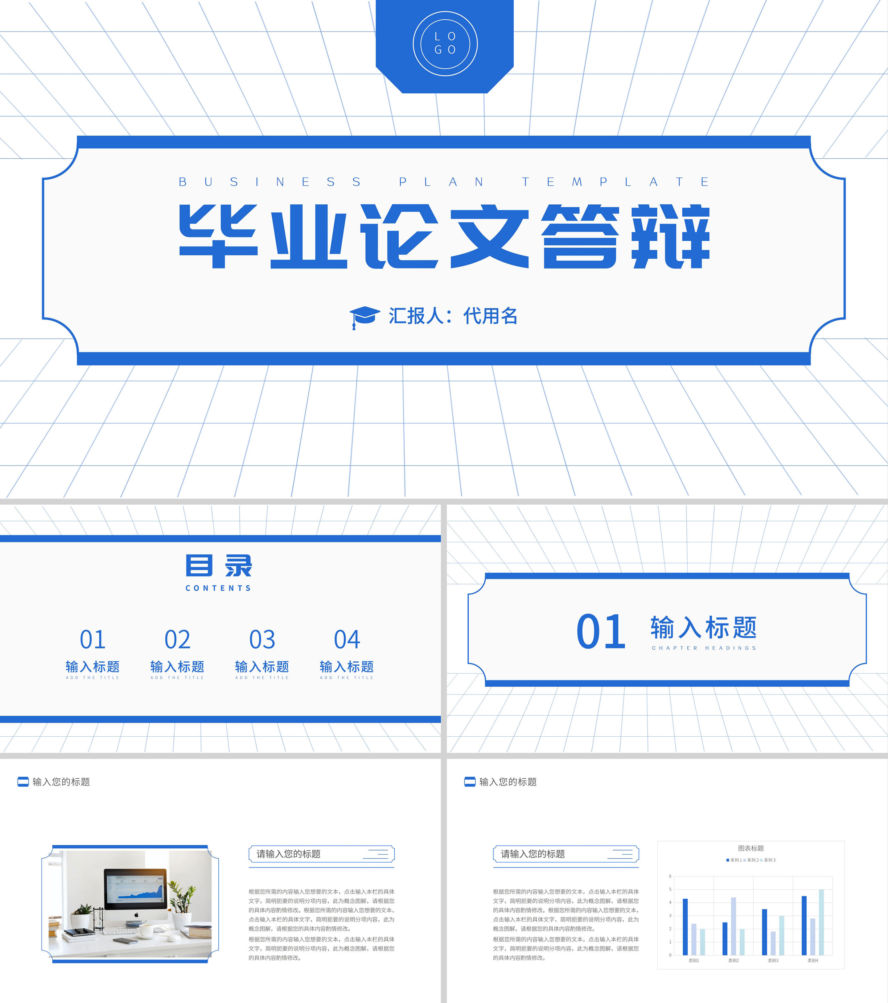 蓝色极简风毕业论文答辩PPT模板