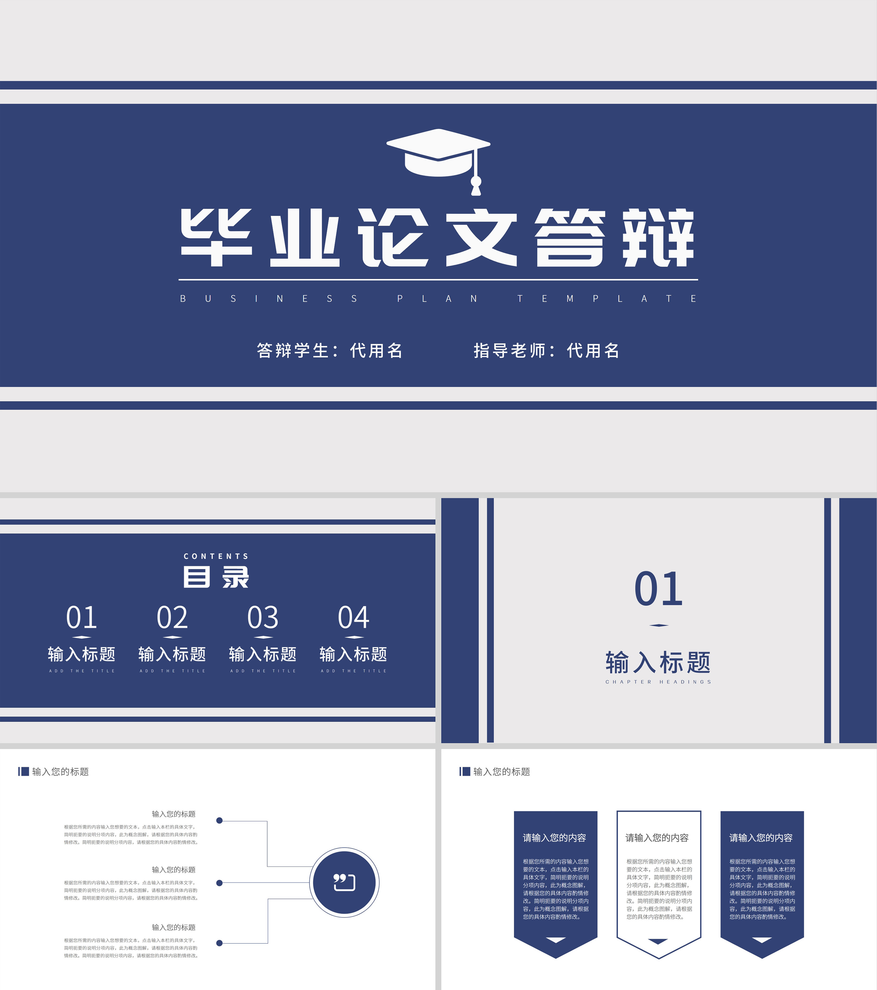 深蓝色几何风毕业论文答辩PPT模板
