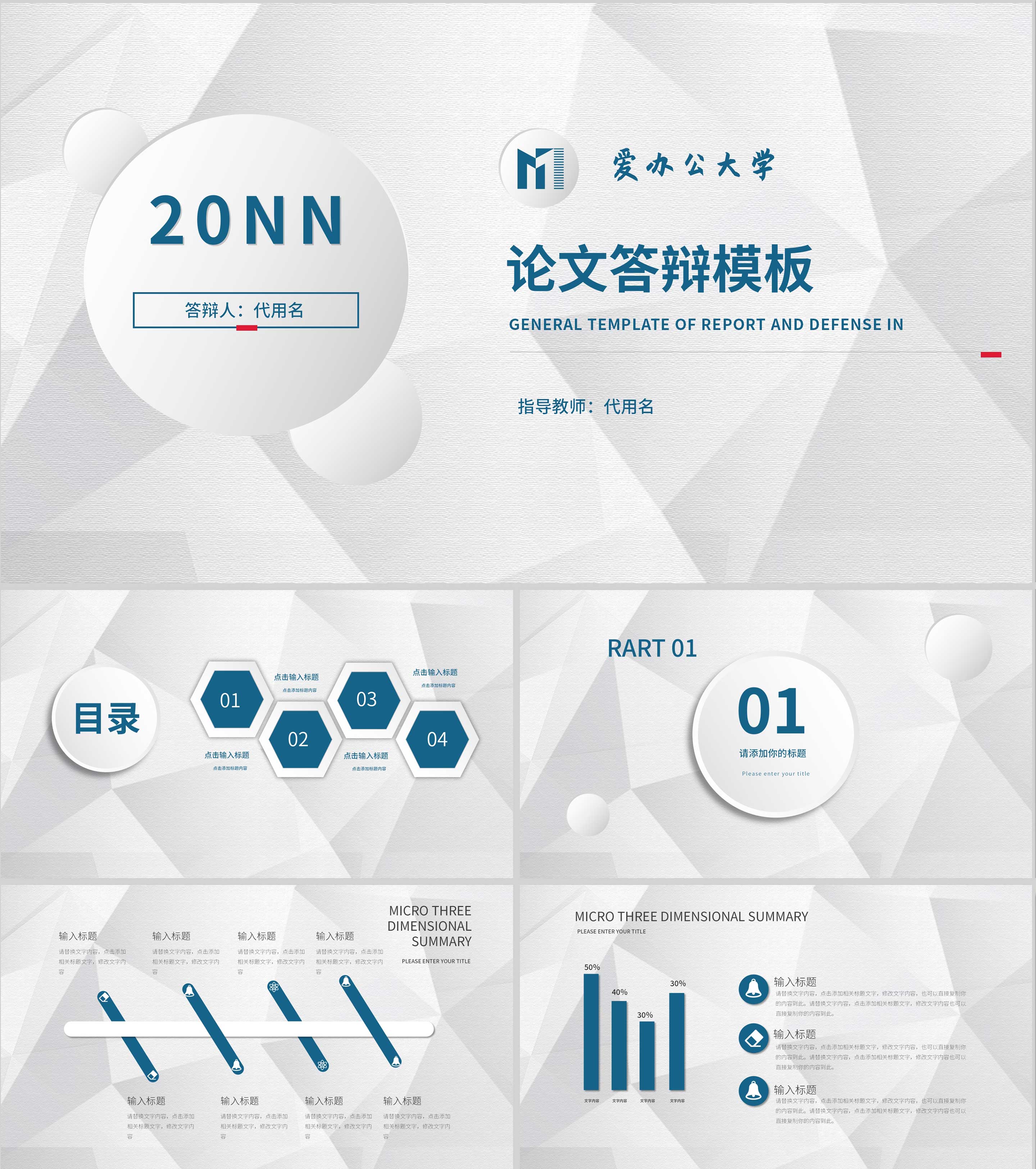 白色微立体论文答辩PPT模板