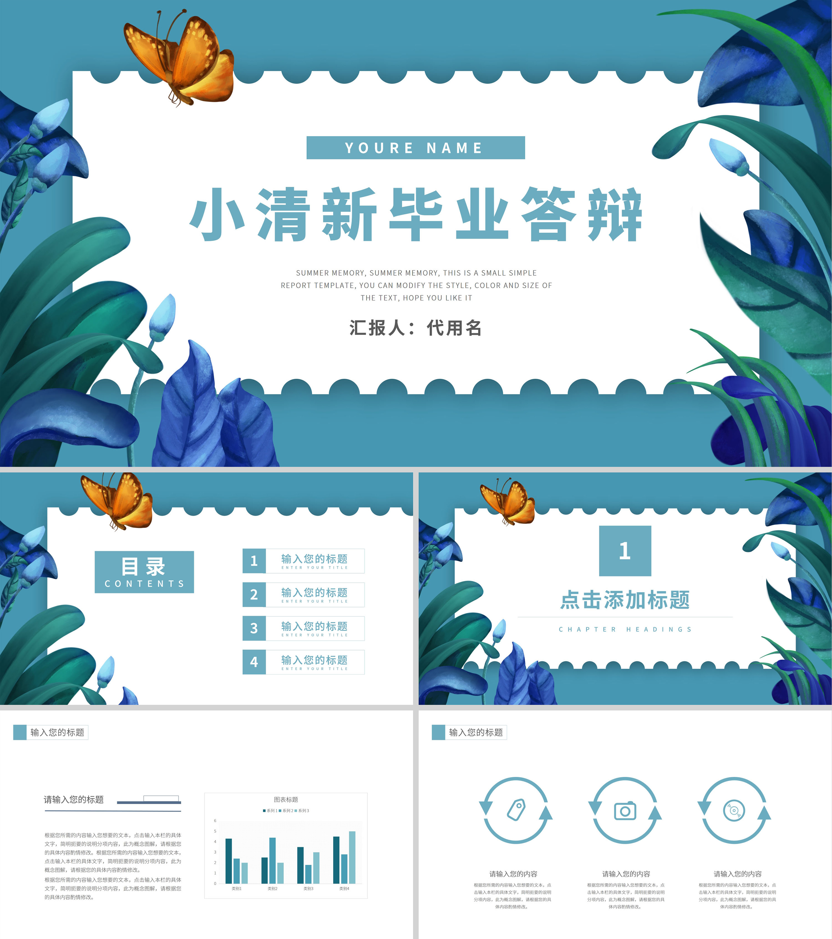 蓝色小清新毕业答辩PPT模板