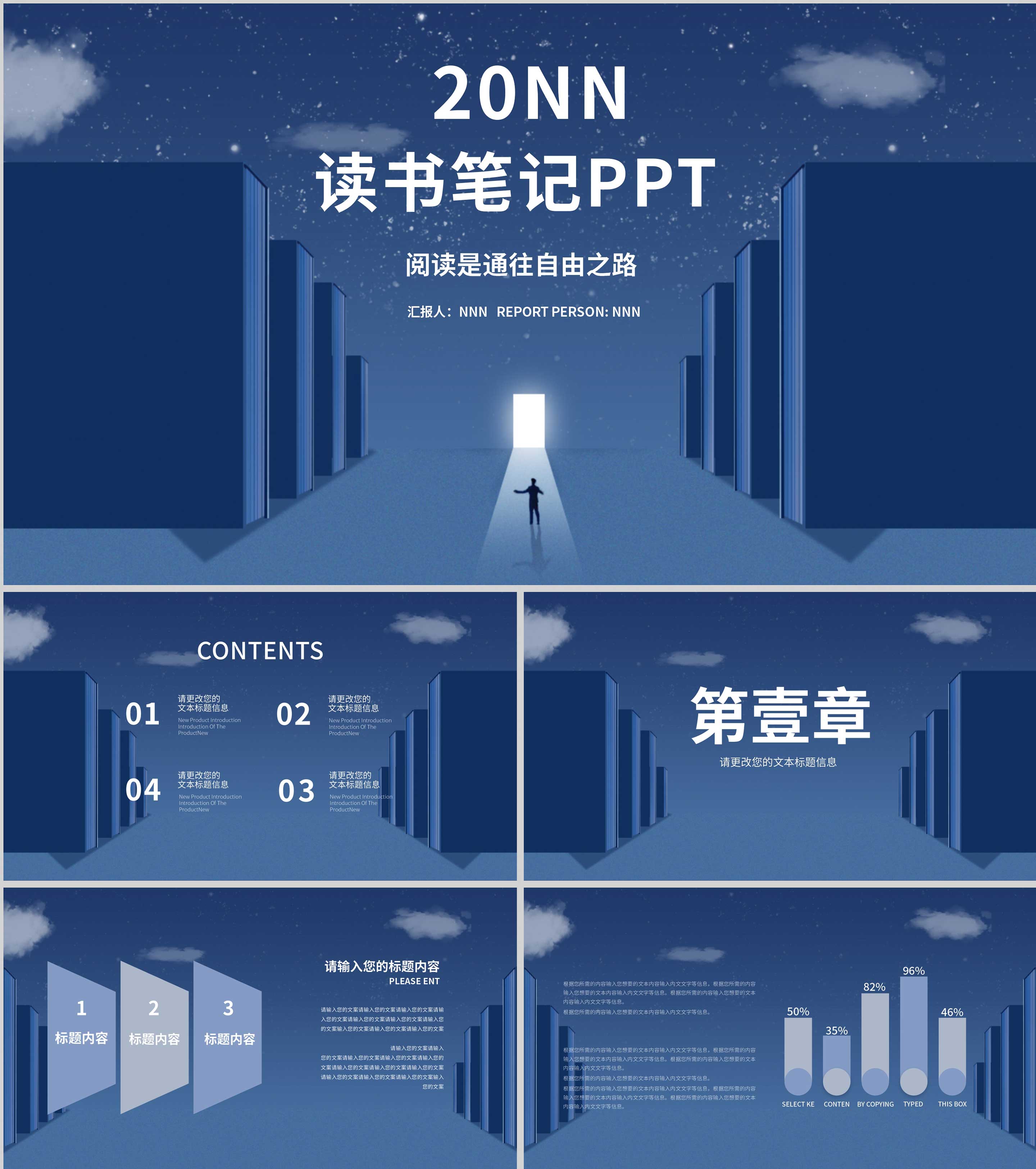 蓝色简约风读书笔记PPT模板