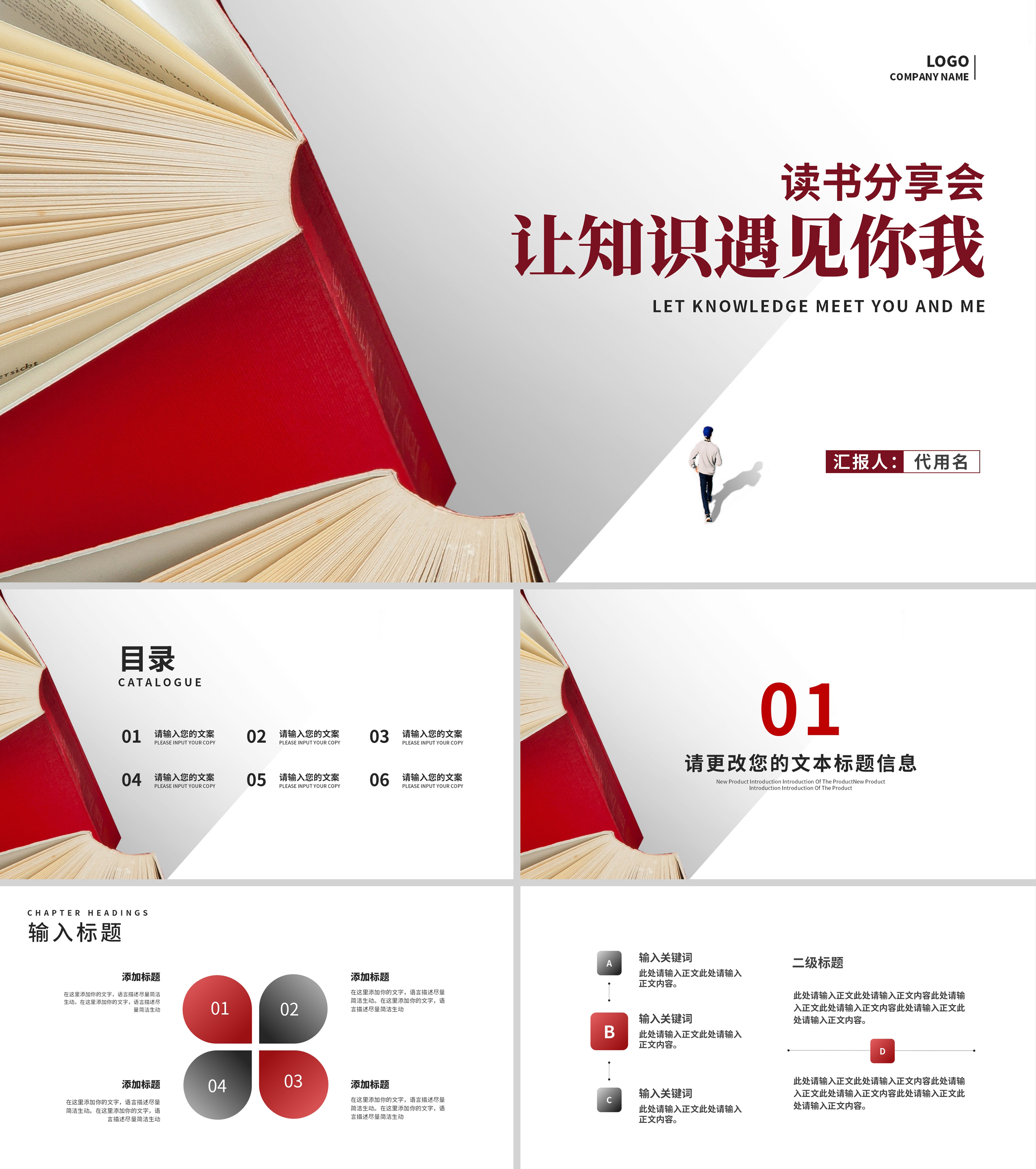 简约风红色书籍读书分享会PPT模板