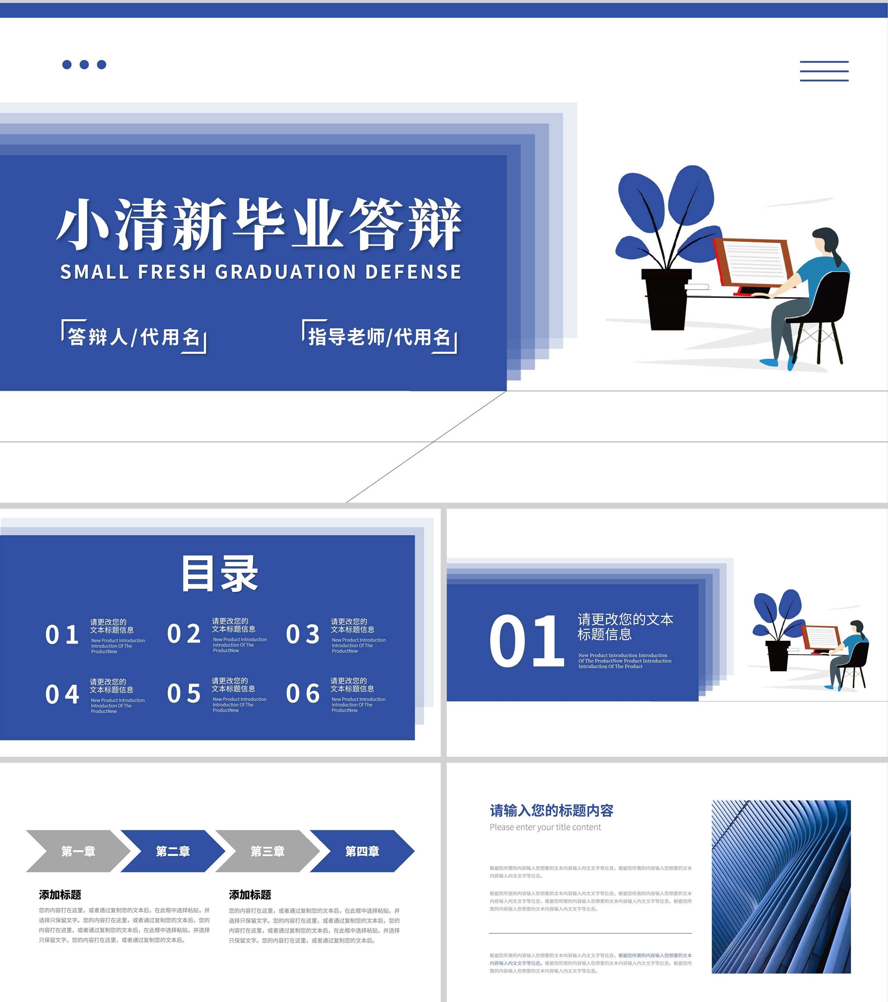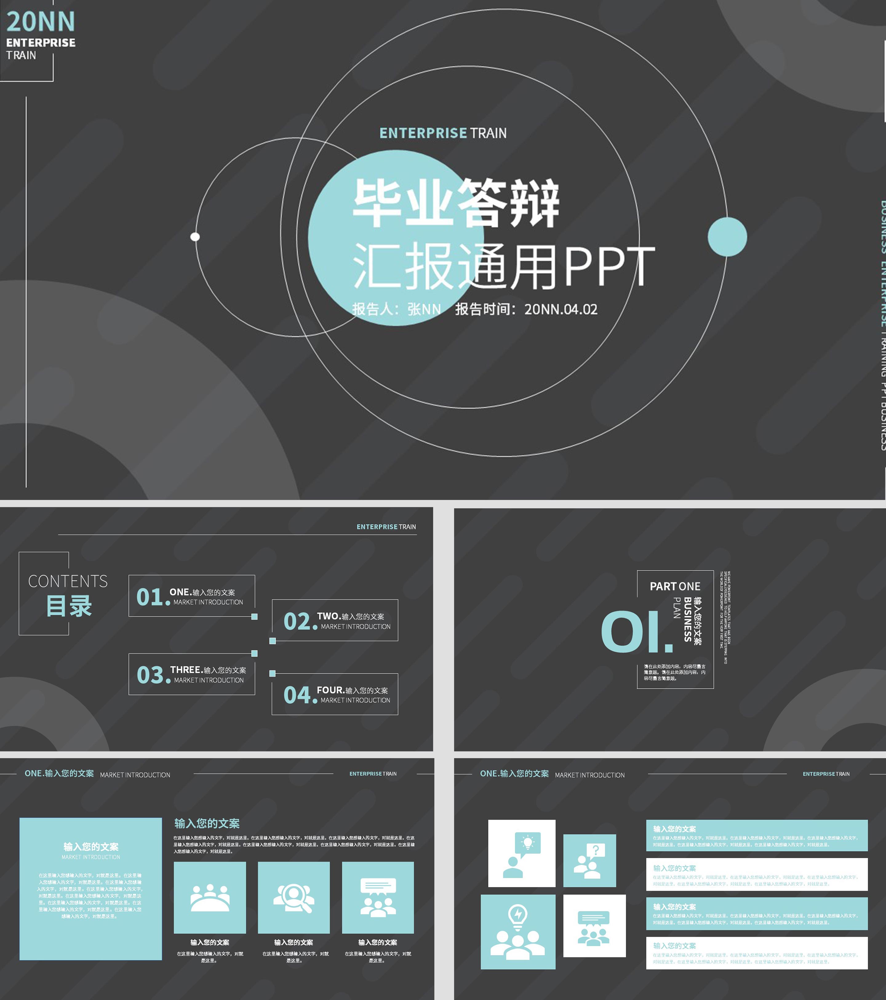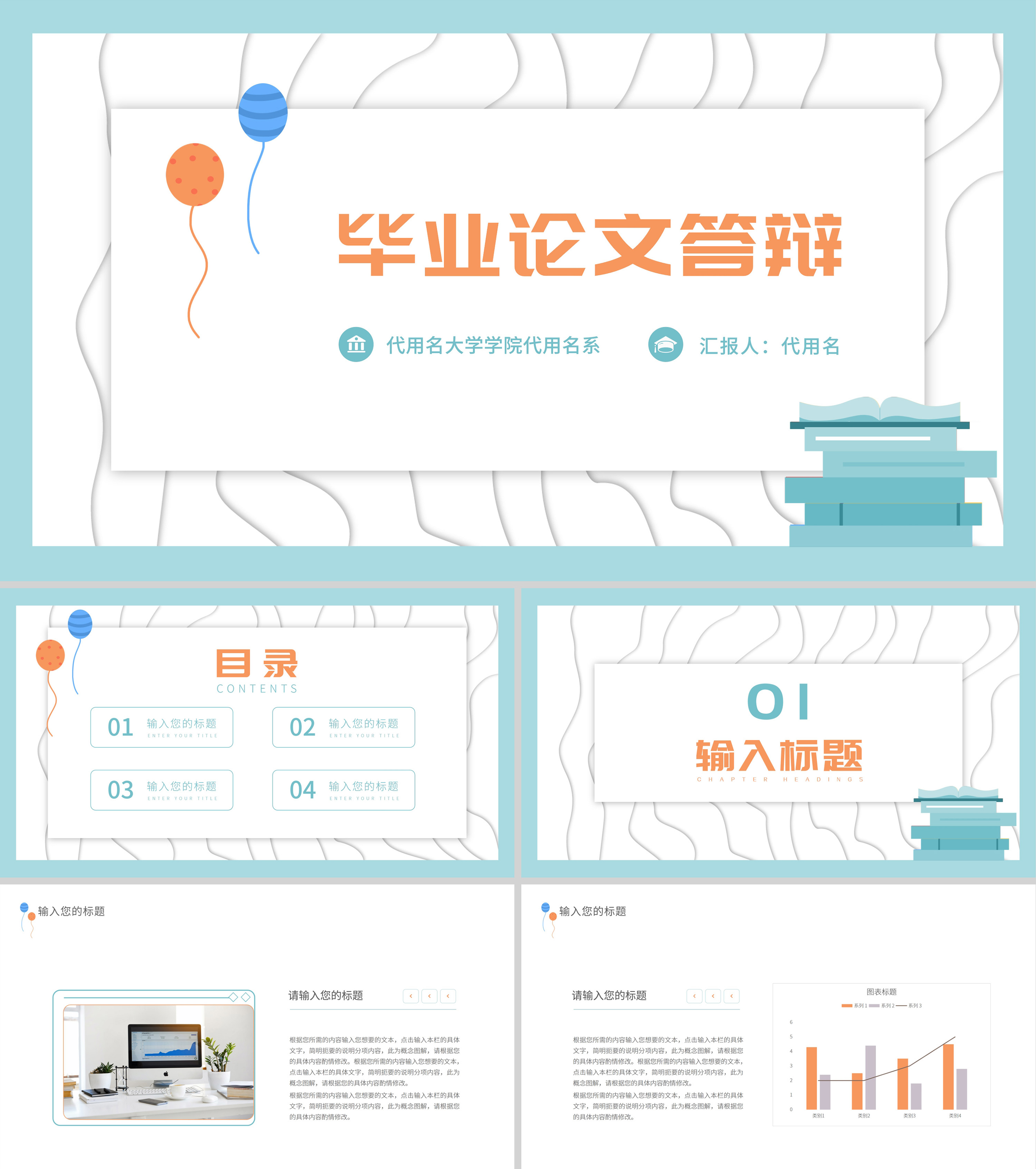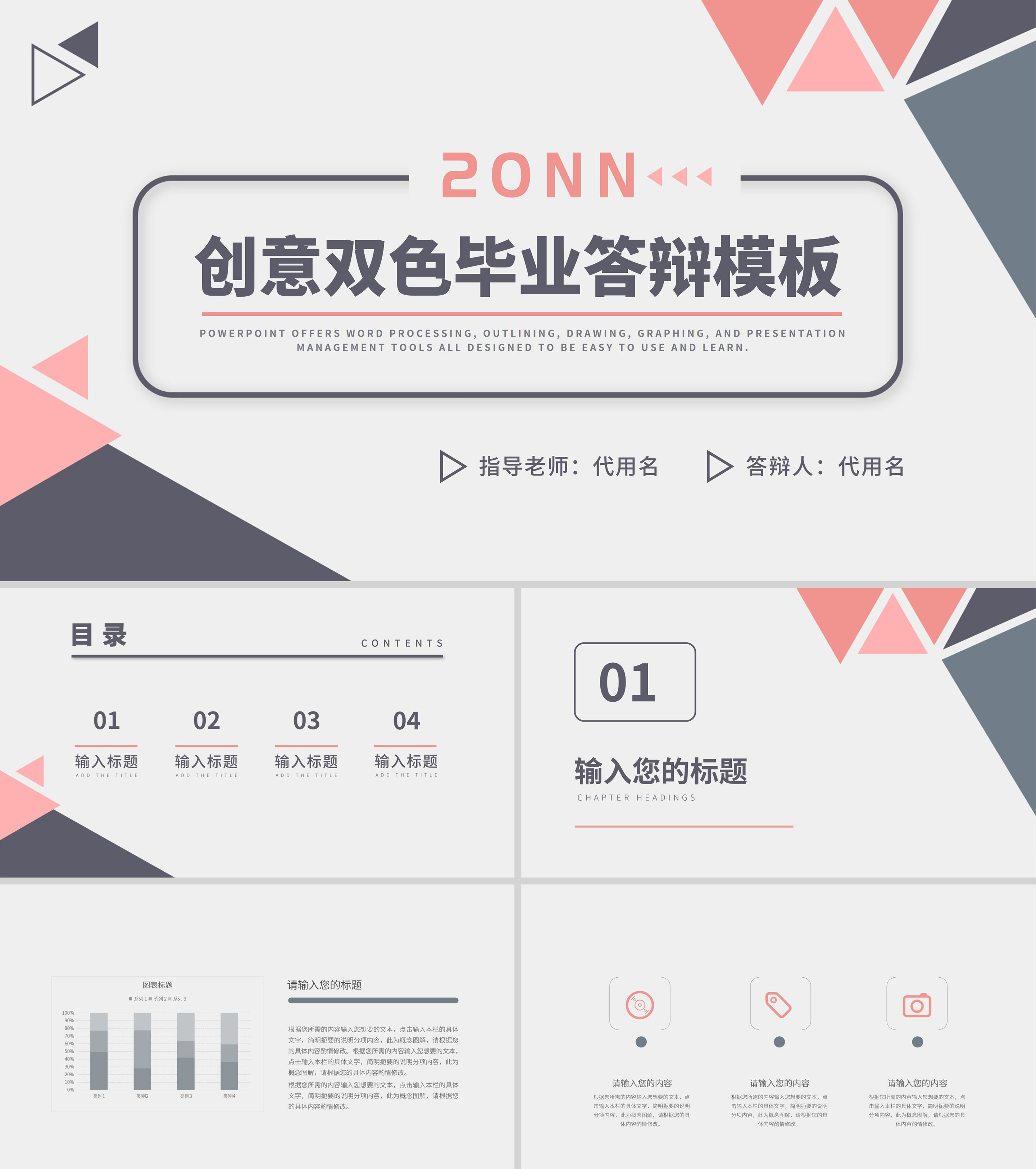 简约风几何平面图毕业论文答辩汇报PPT模板