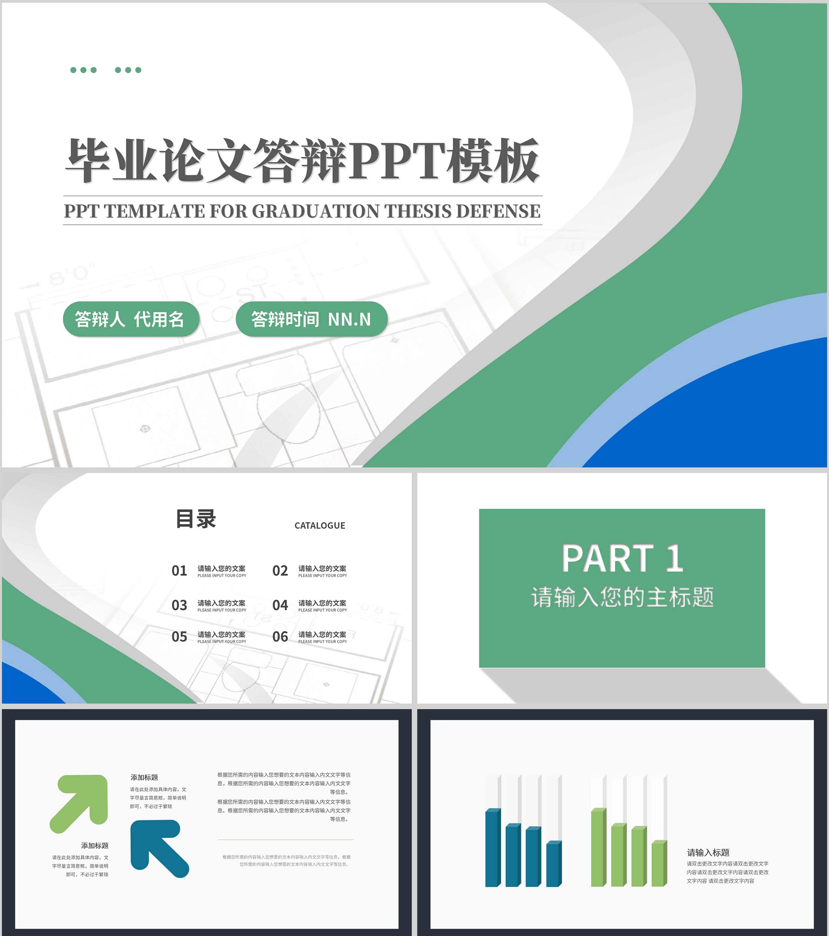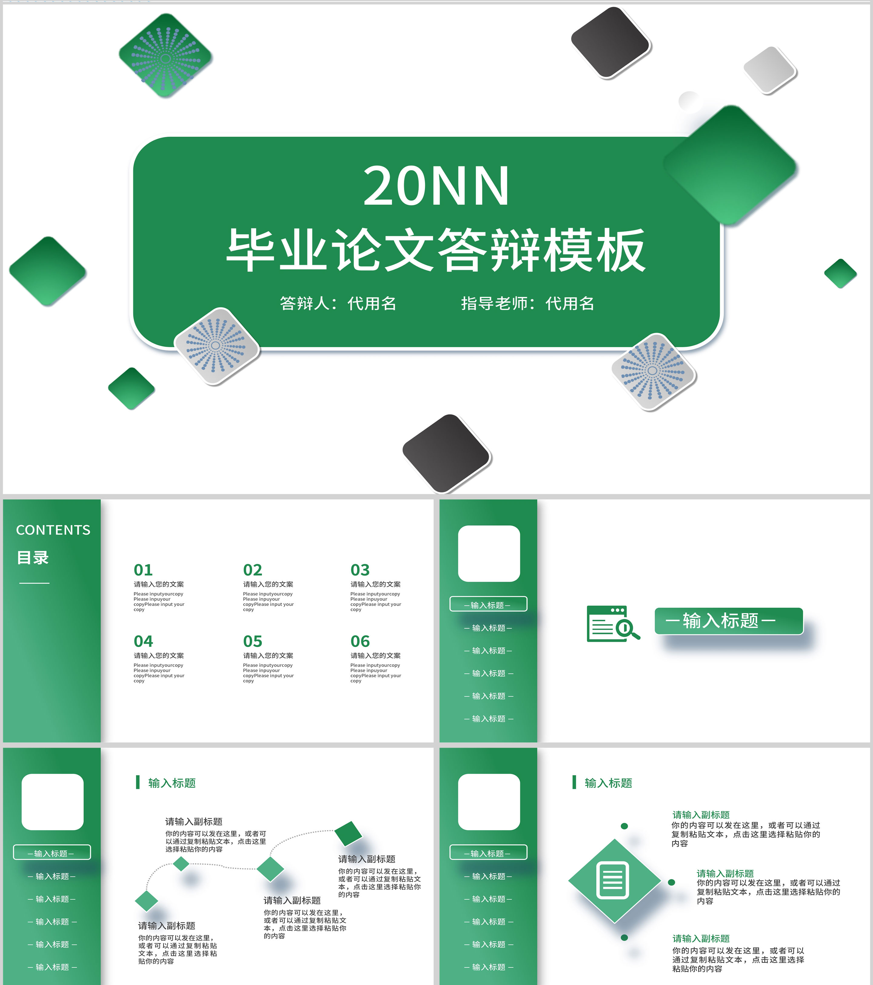 绿色简约几何学生大学毕业论文答辩演讲PPT模板