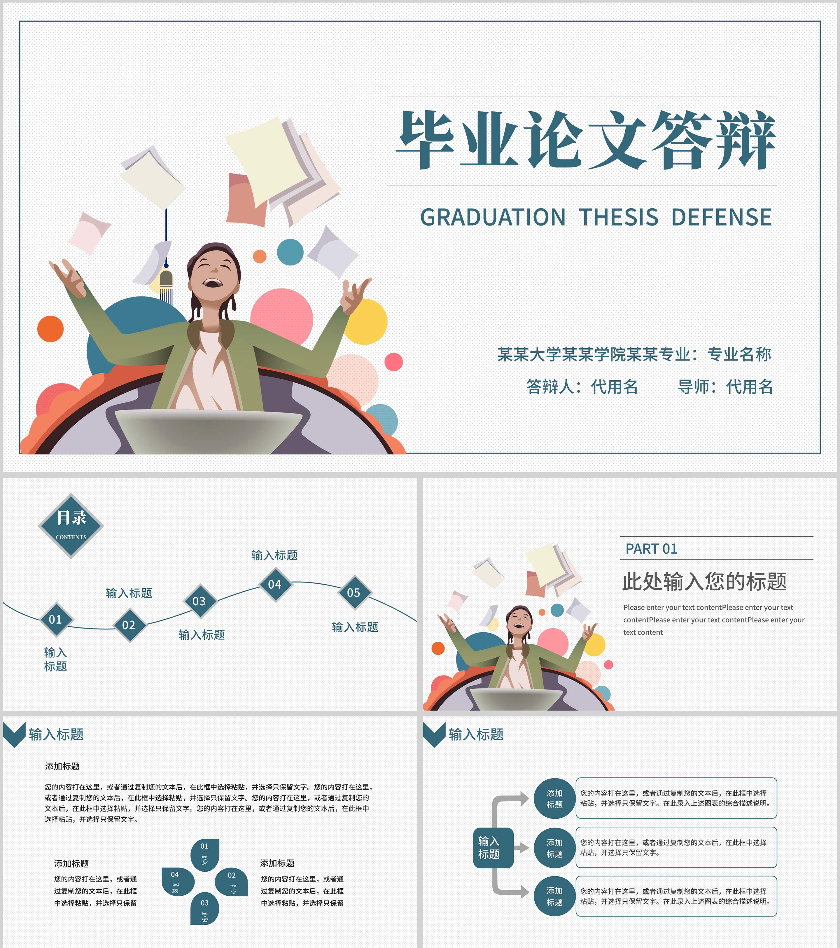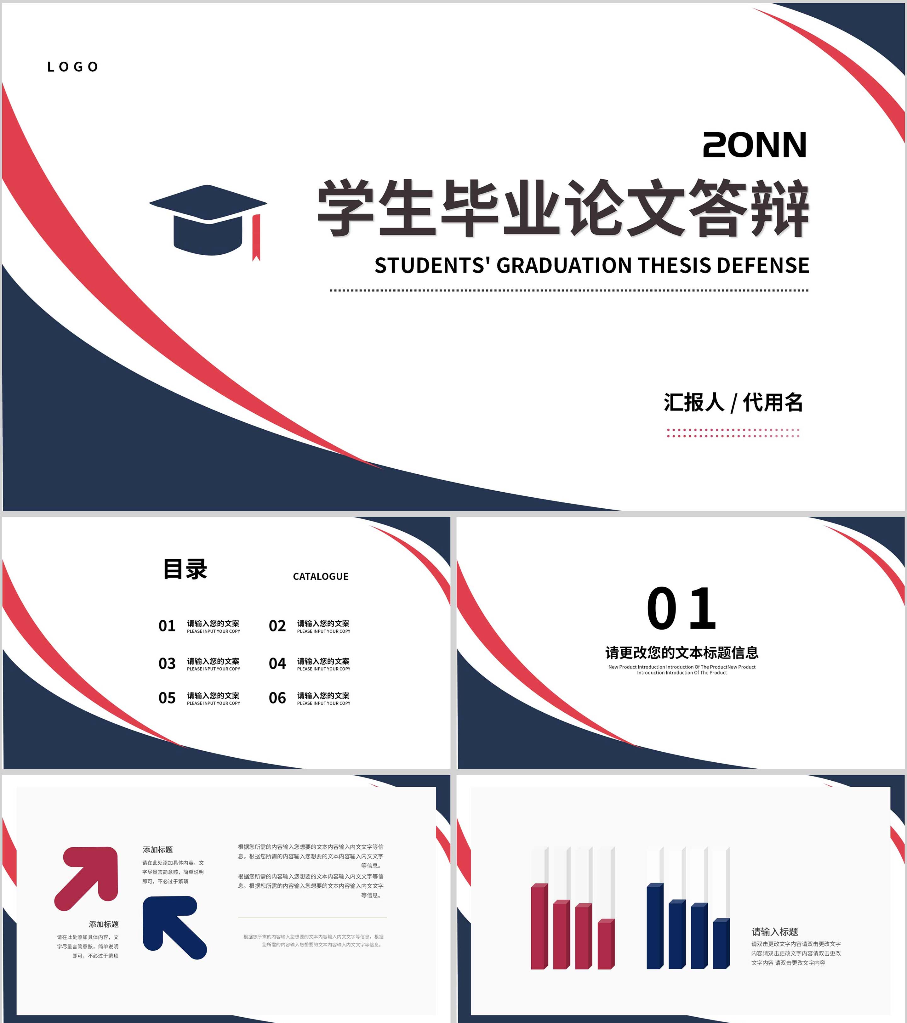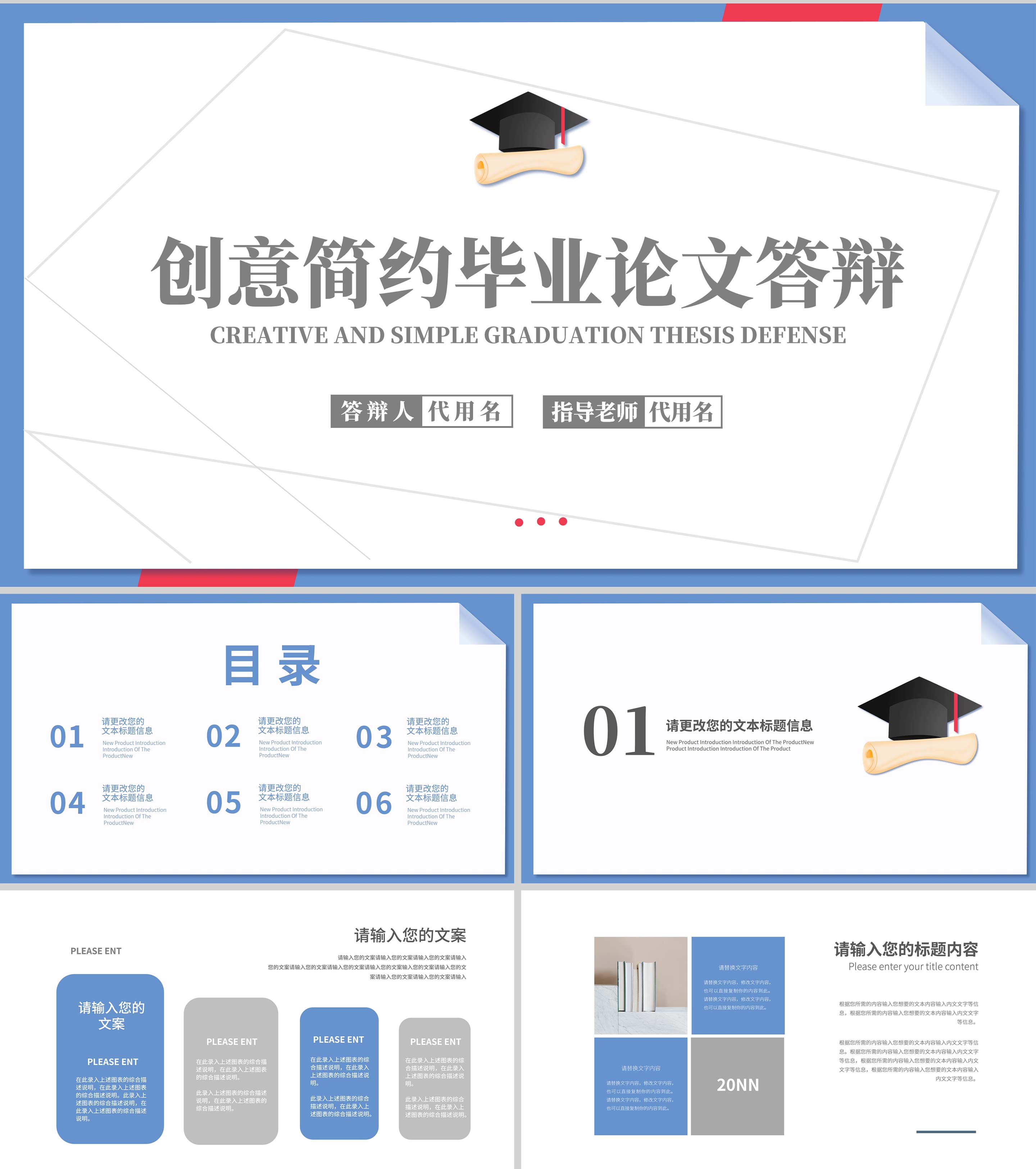 简约商务风学士帽学生毕业论文答辩PPT模板