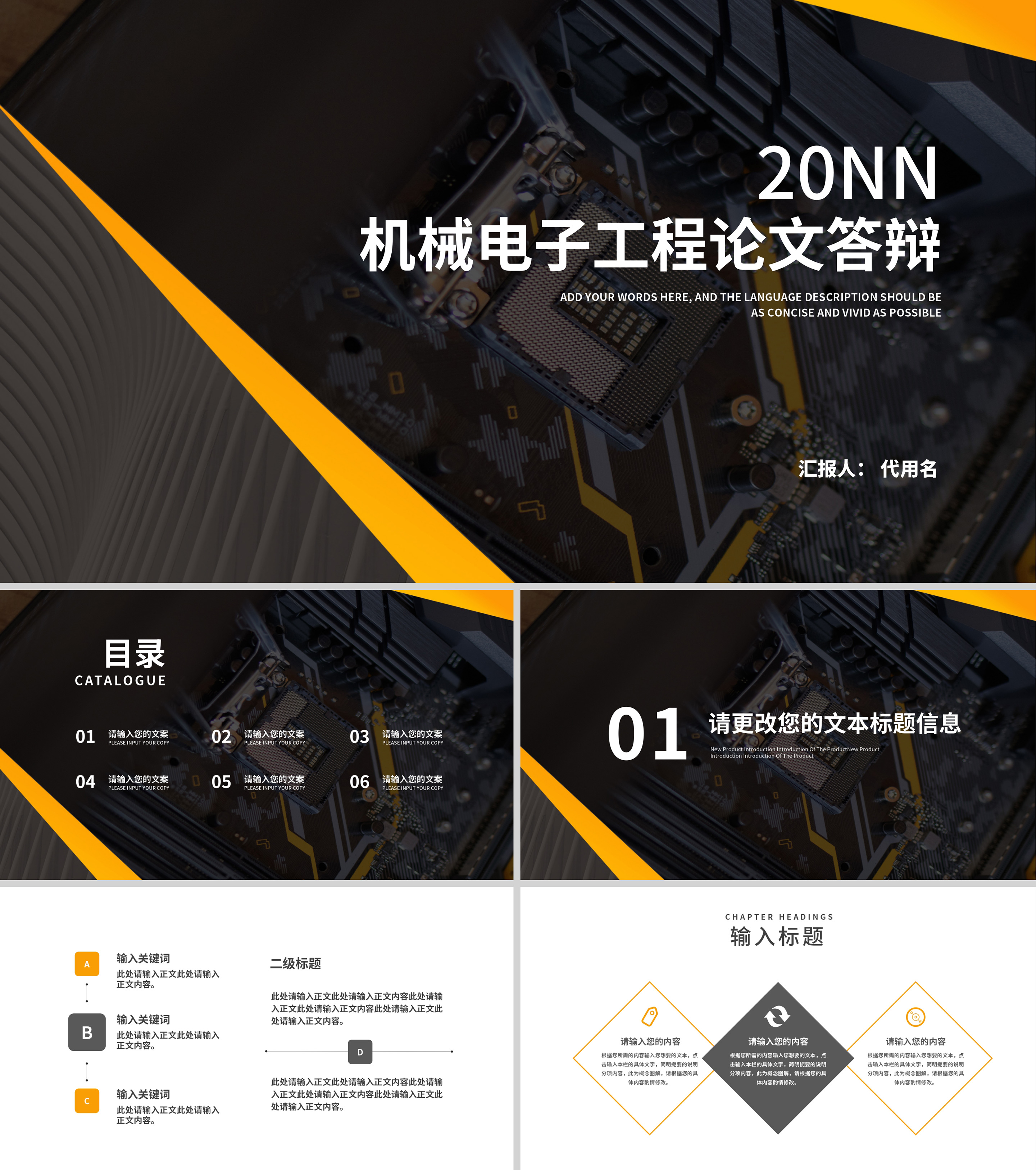黑色科技风机械电子工程专业论文答辩PPT模板