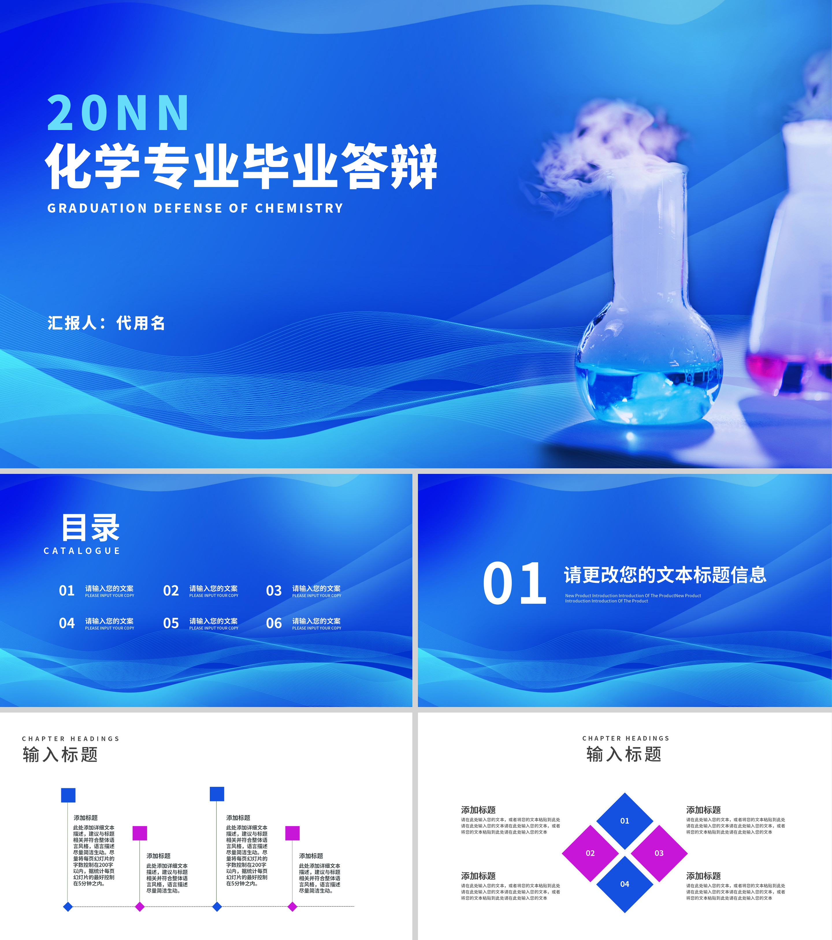 蓝色简约风化学专业毕业答辩论文校园PPT模板