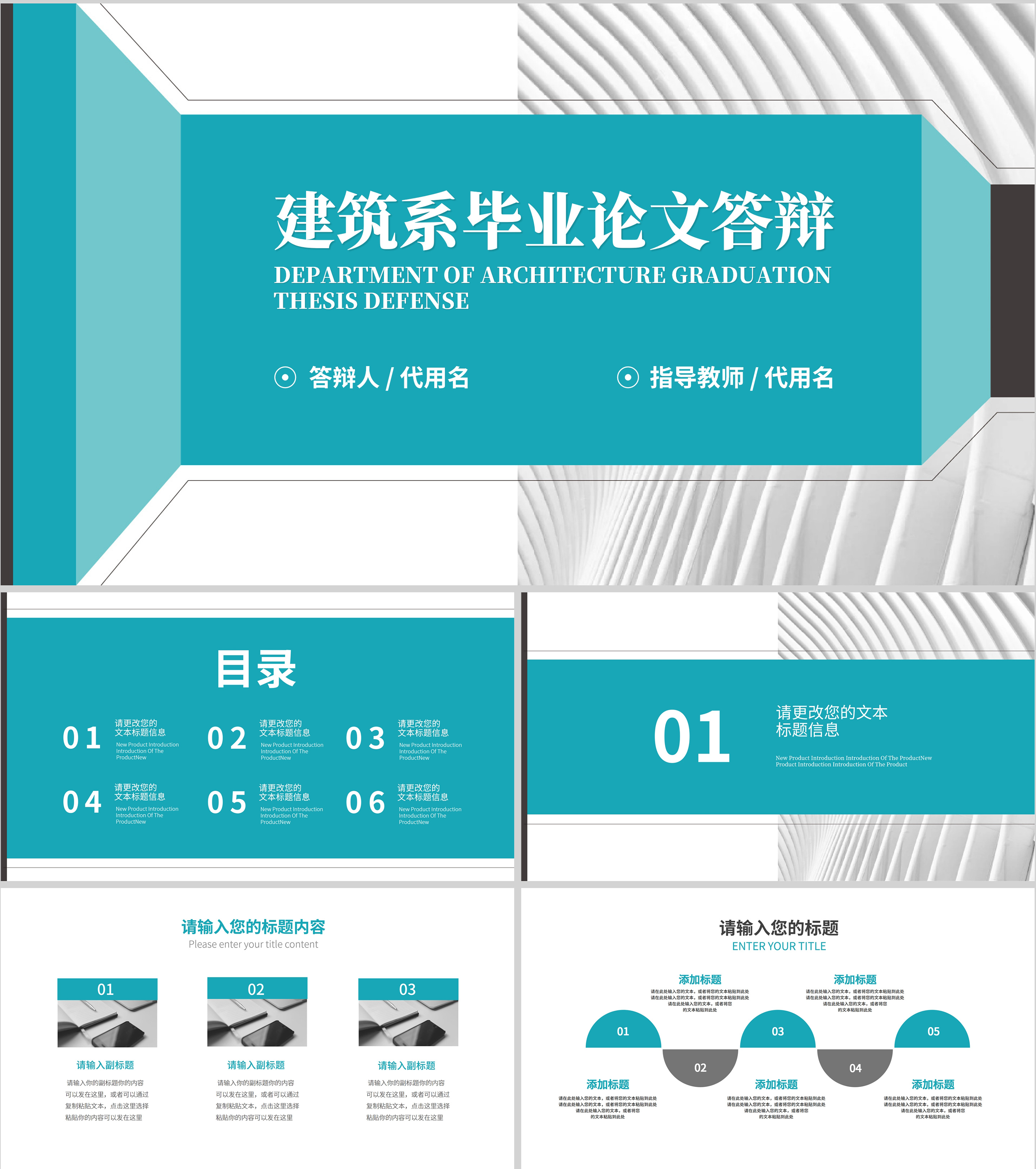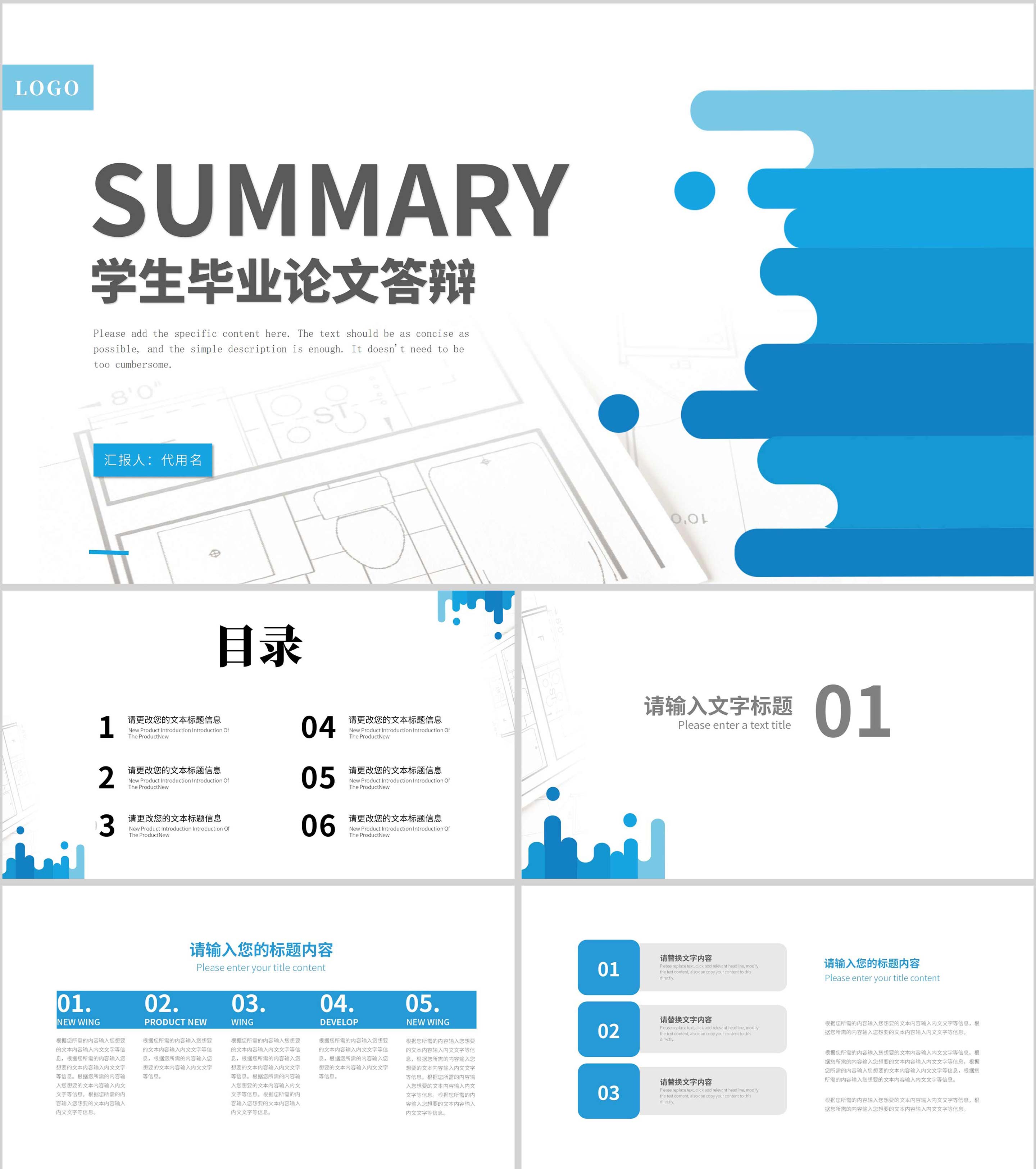 简约风蓝色建筑系毕业论文答辩PPT模板