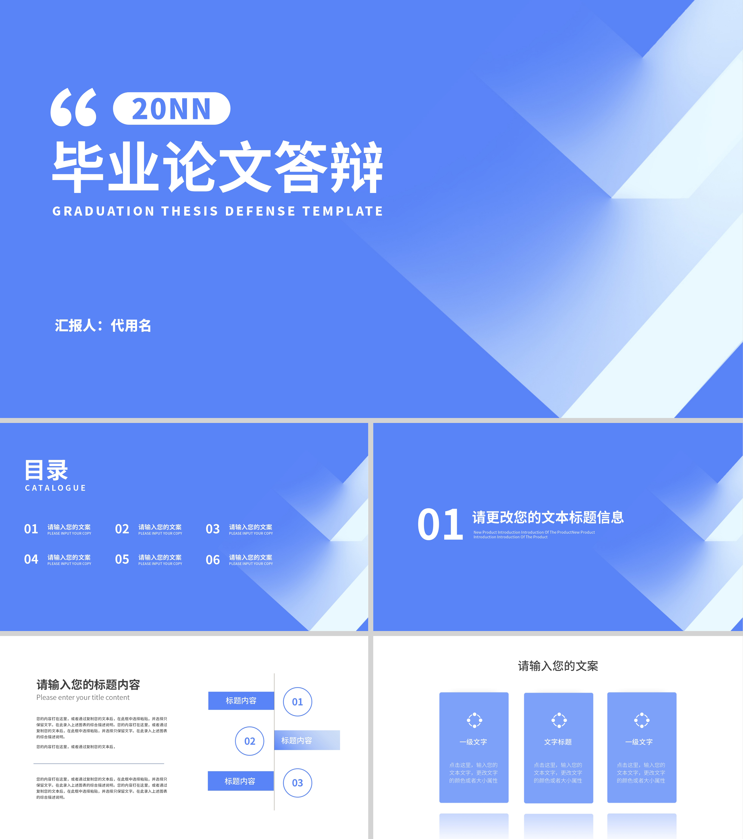 蓝色渐变几何学生毕业论文答辩演讲PPT模板