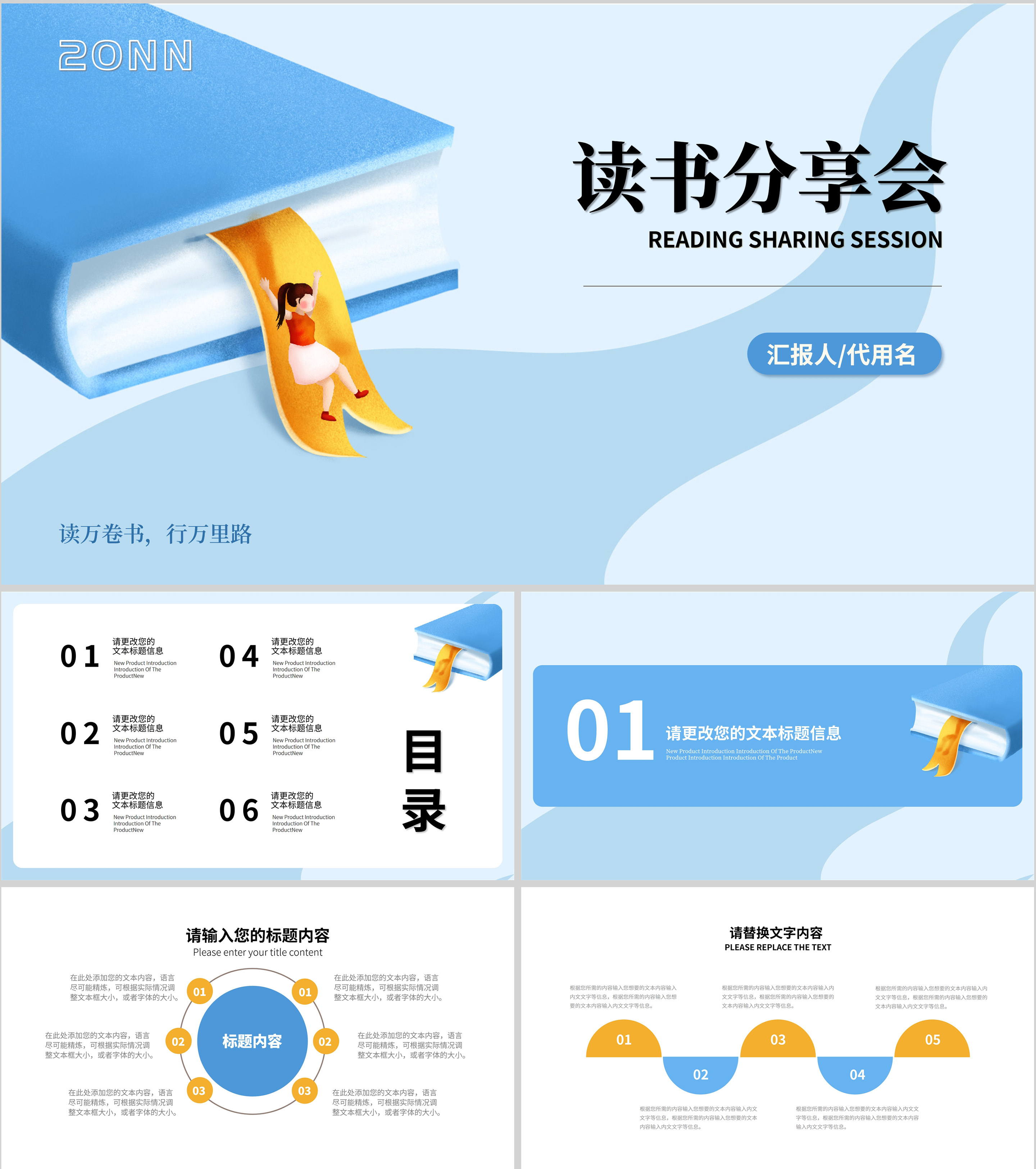 蓝色扁平风公开课学生读书分享演讲汇报PPT模板