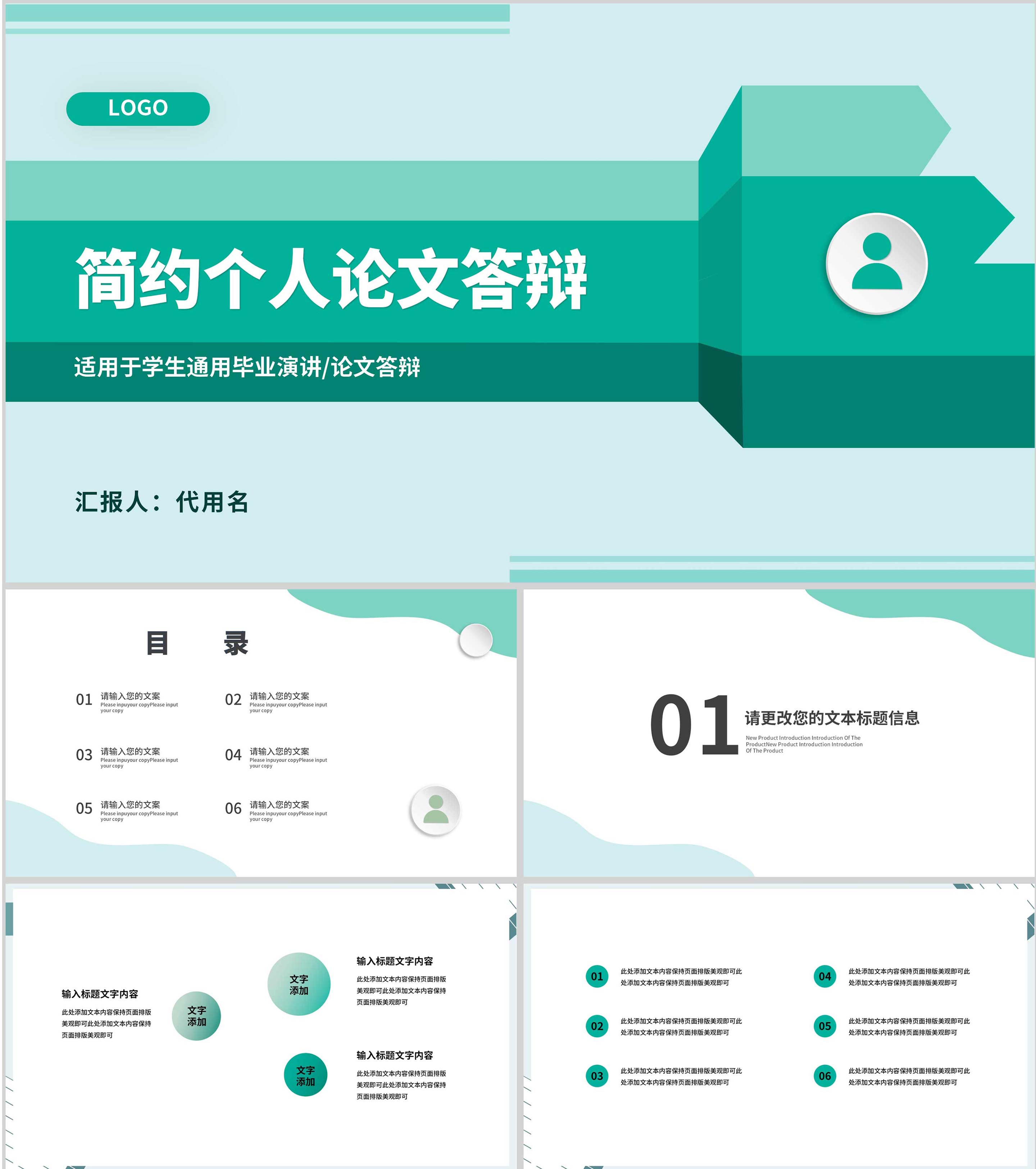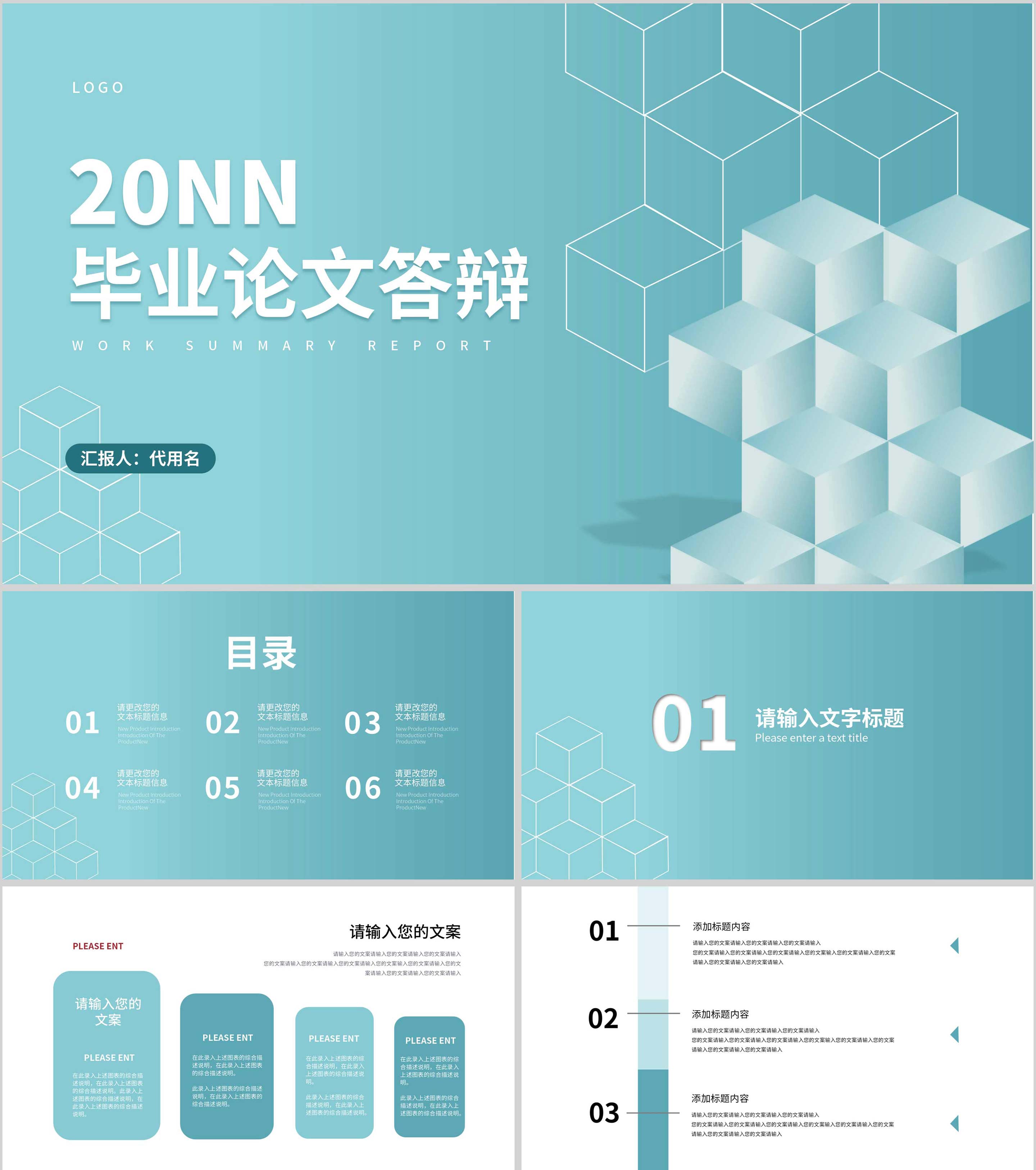 简约风青色学生个人毕业演讲论文答辩PPT模板