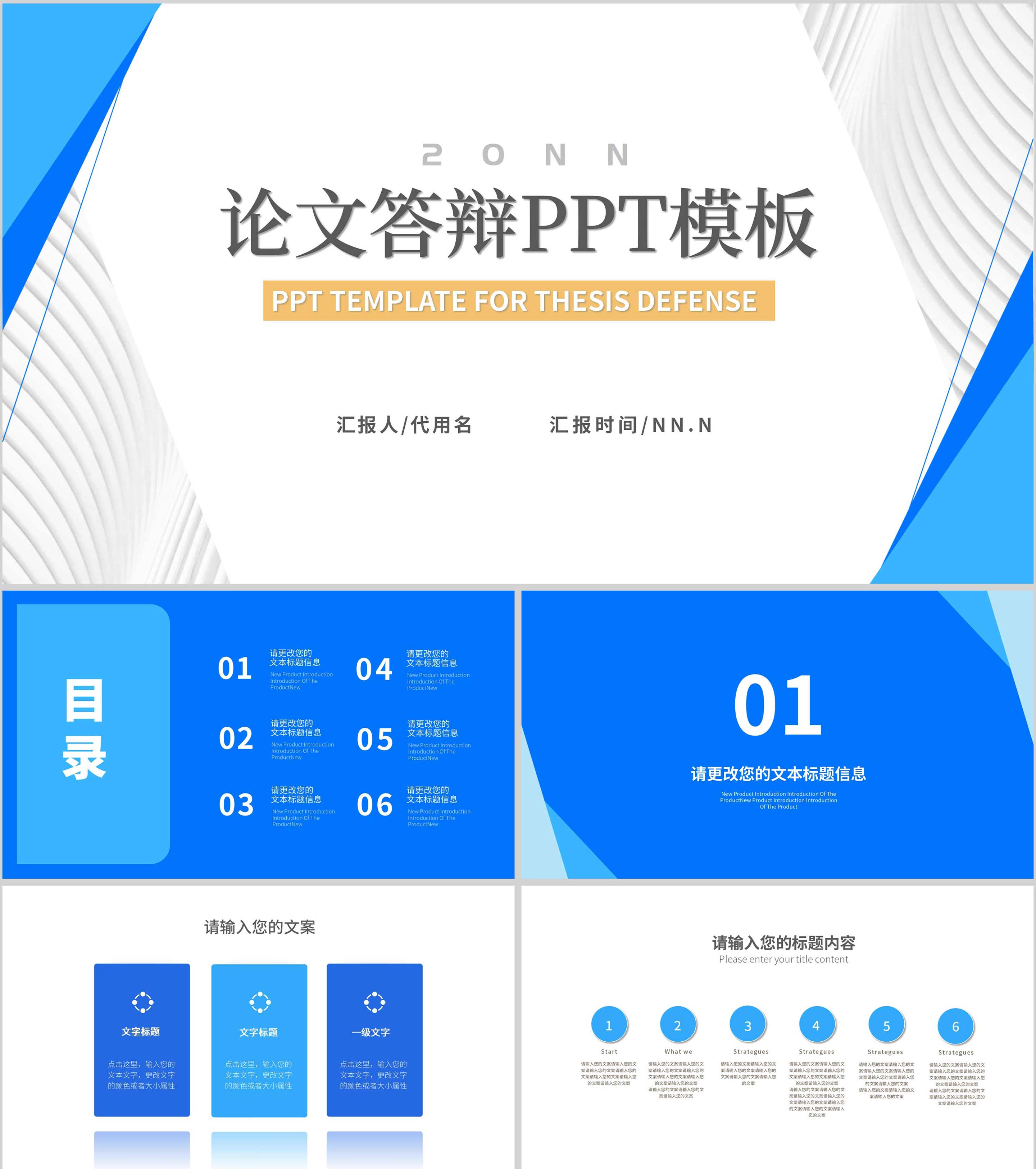 蓝色简约风线条学生毕业论文答辩汇报PPT模板