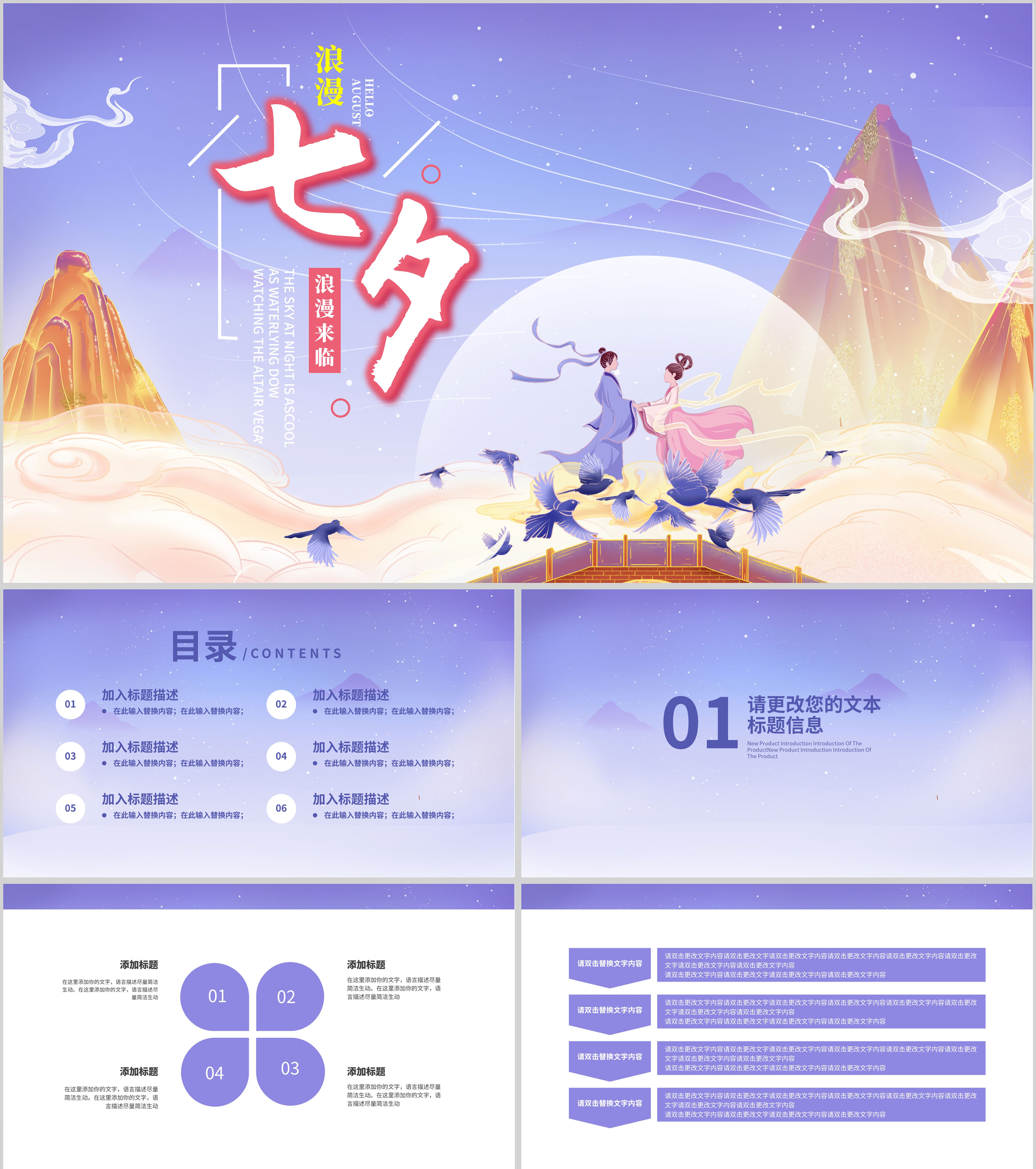 紫色中国风浪漫七夕PPT模板