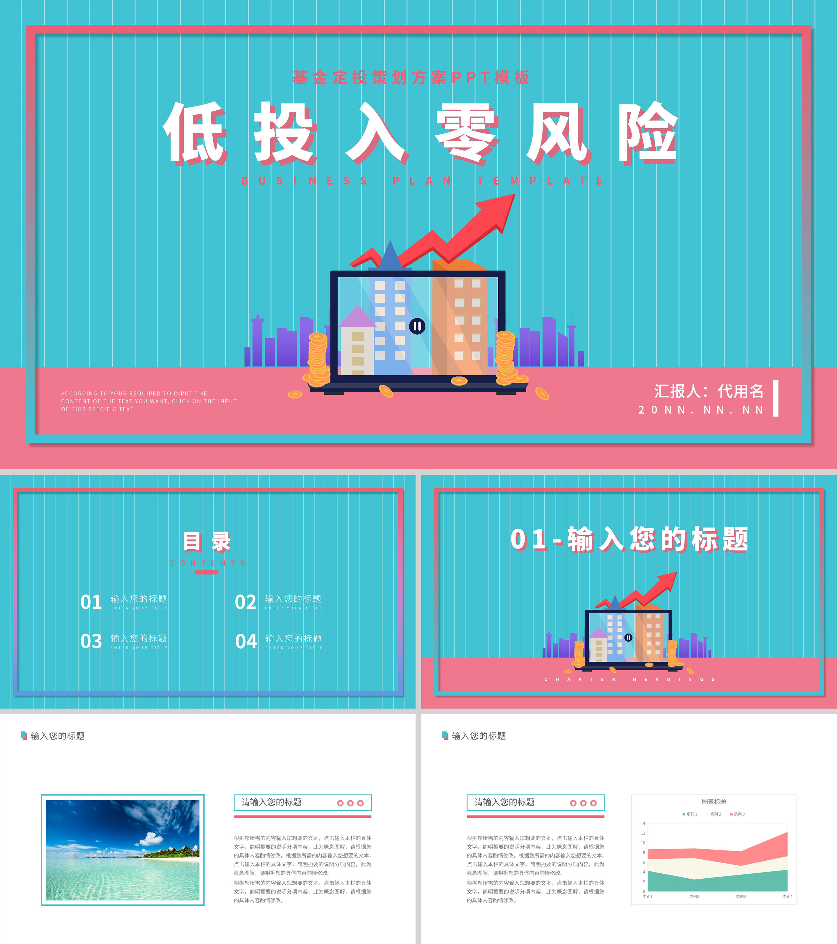 蓝色插画风基金定投方案PPT模板