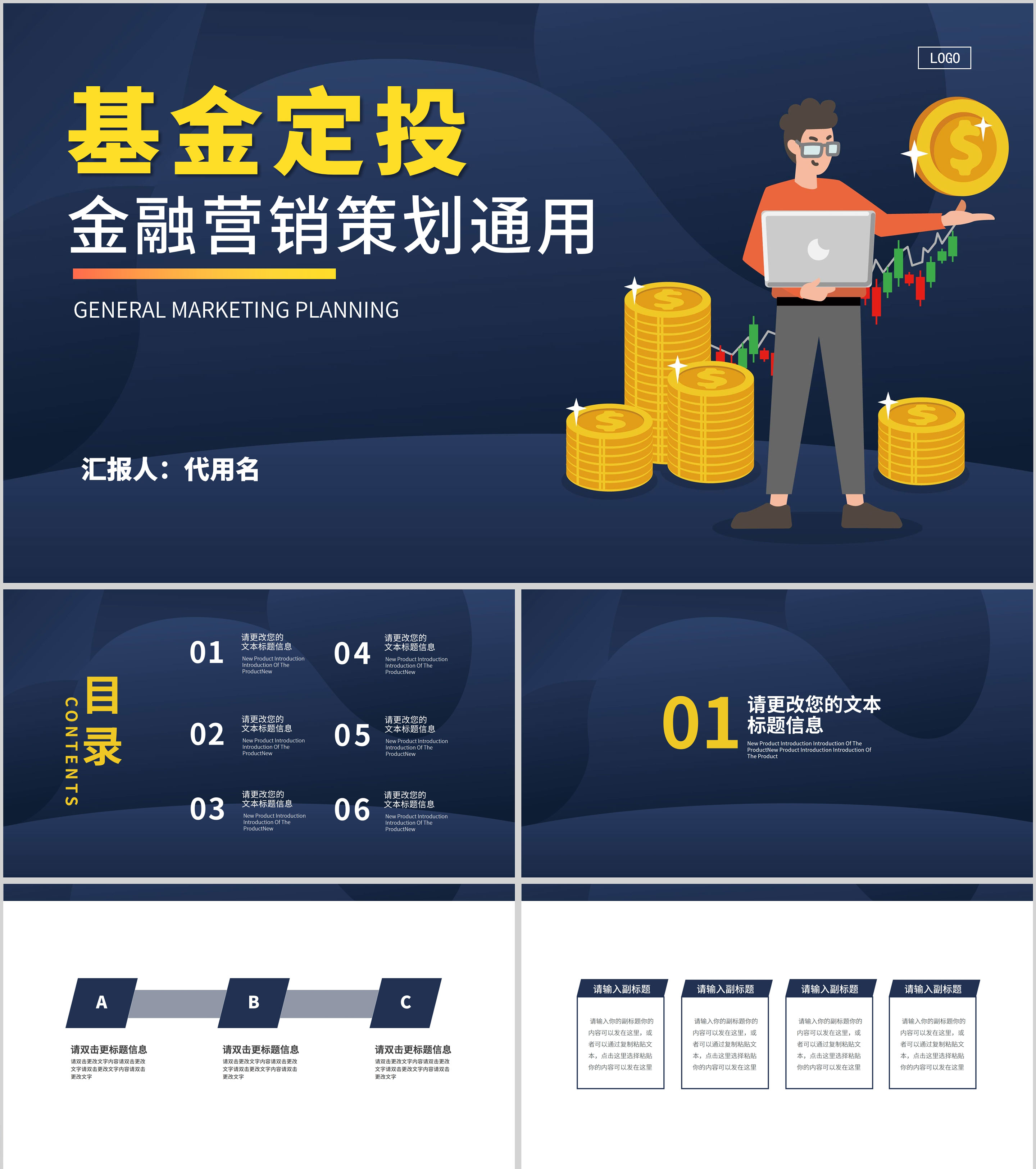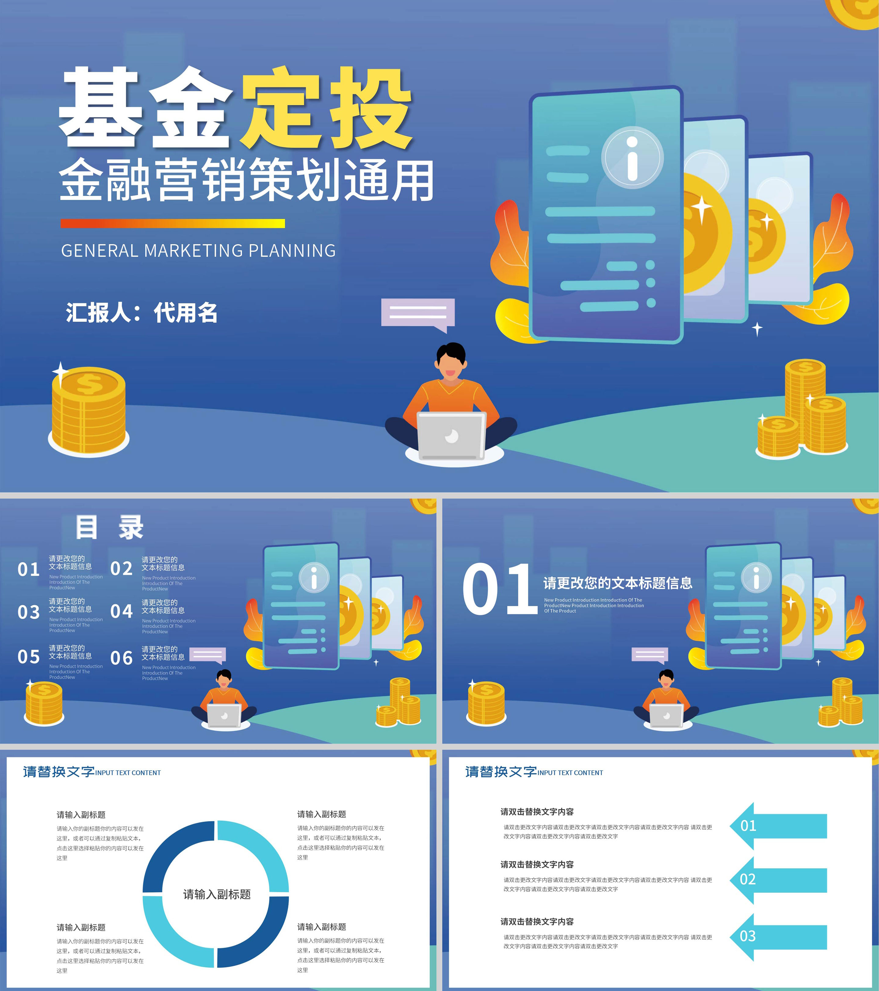 蓝色插画风基金定投PPT模板