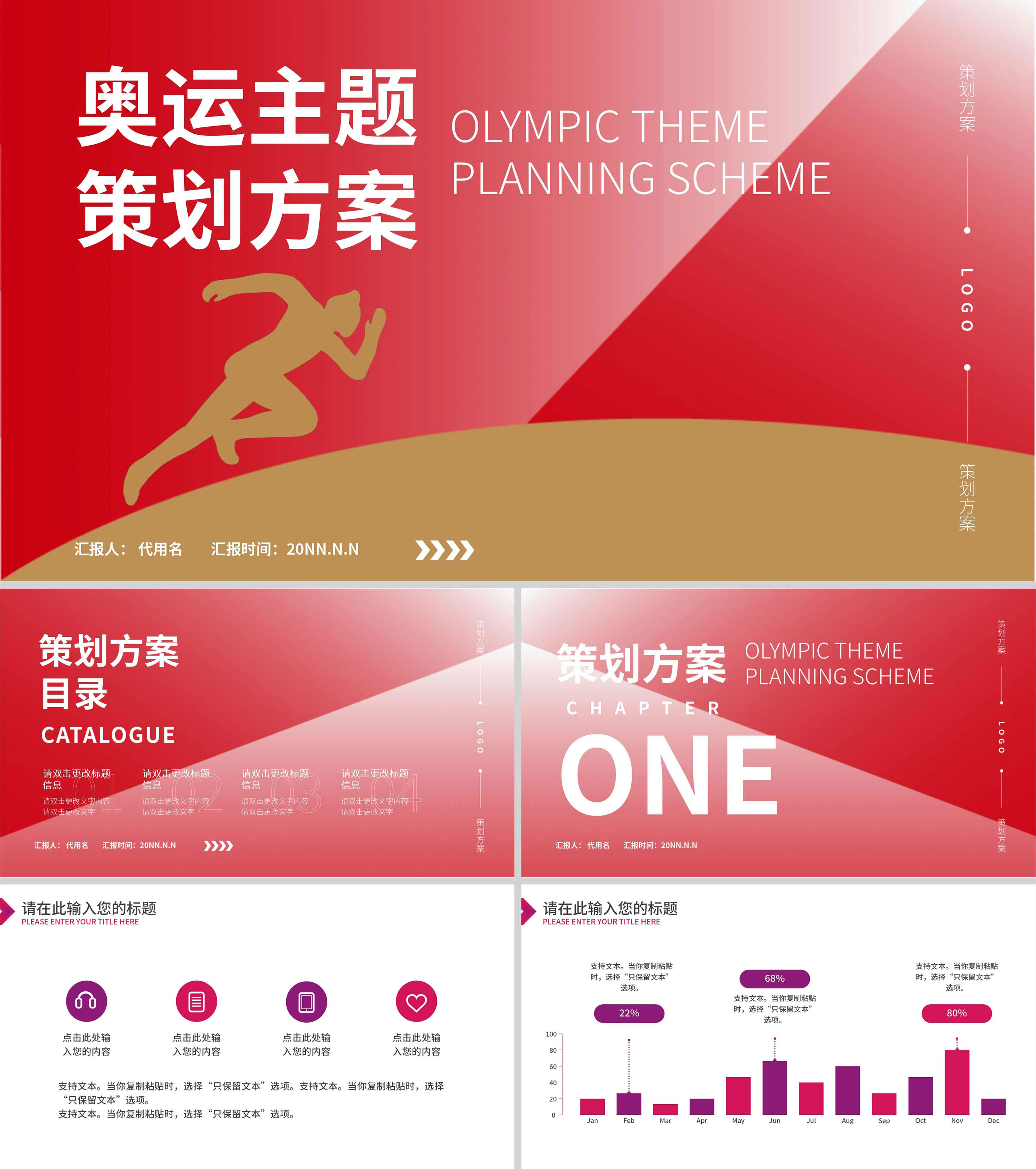 红色渐变风奥运主题方案PPT模板