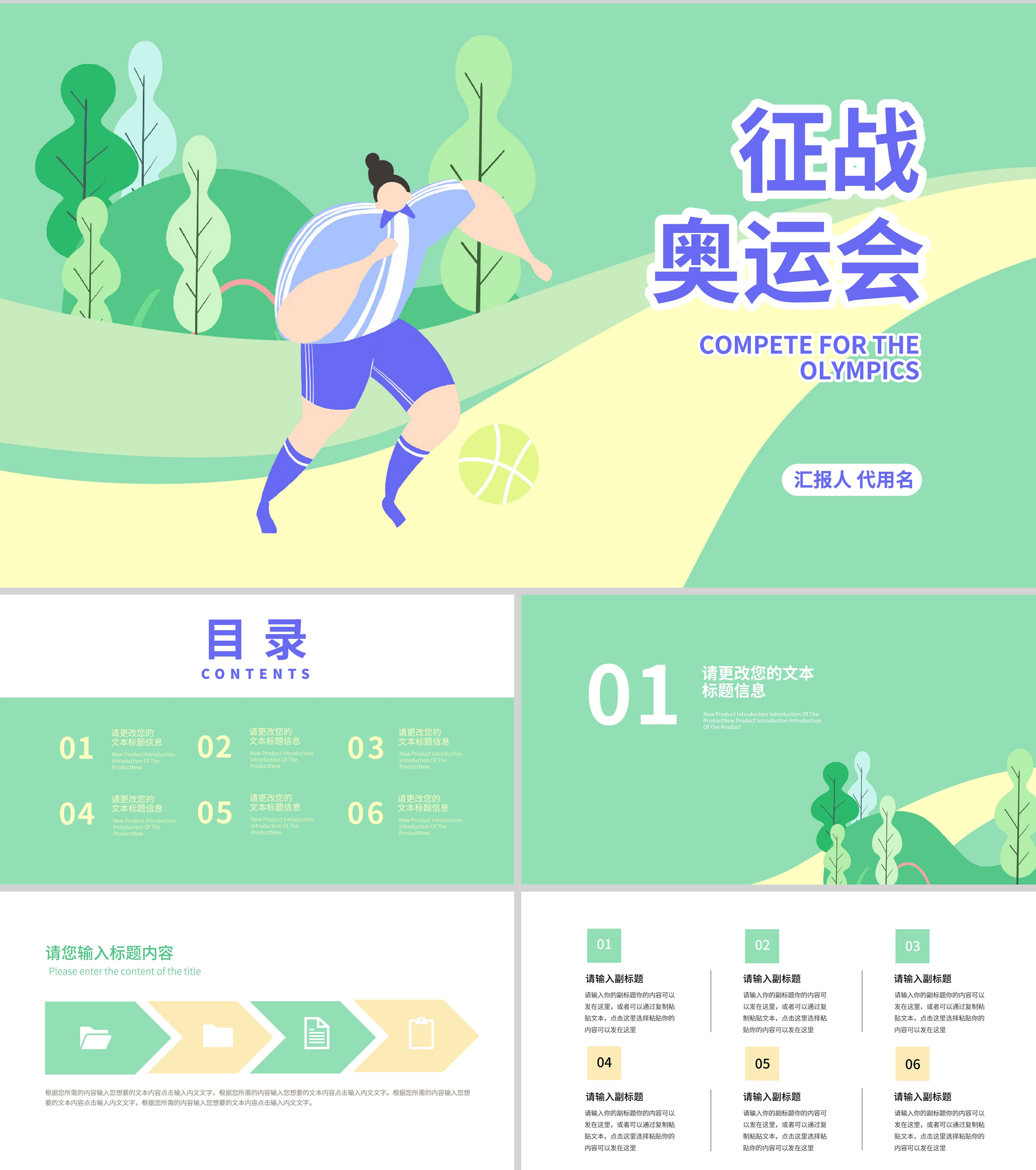 绿色插画风征战奥运会PPT模板