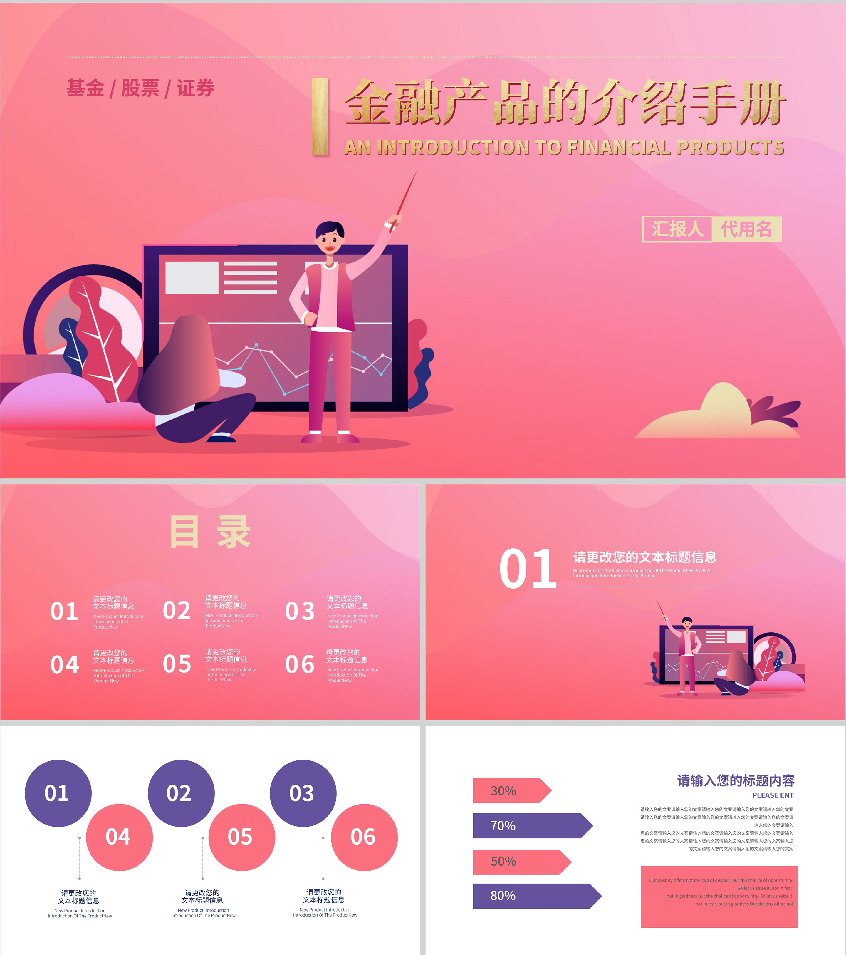 粉色插画风金融产品PPT模板