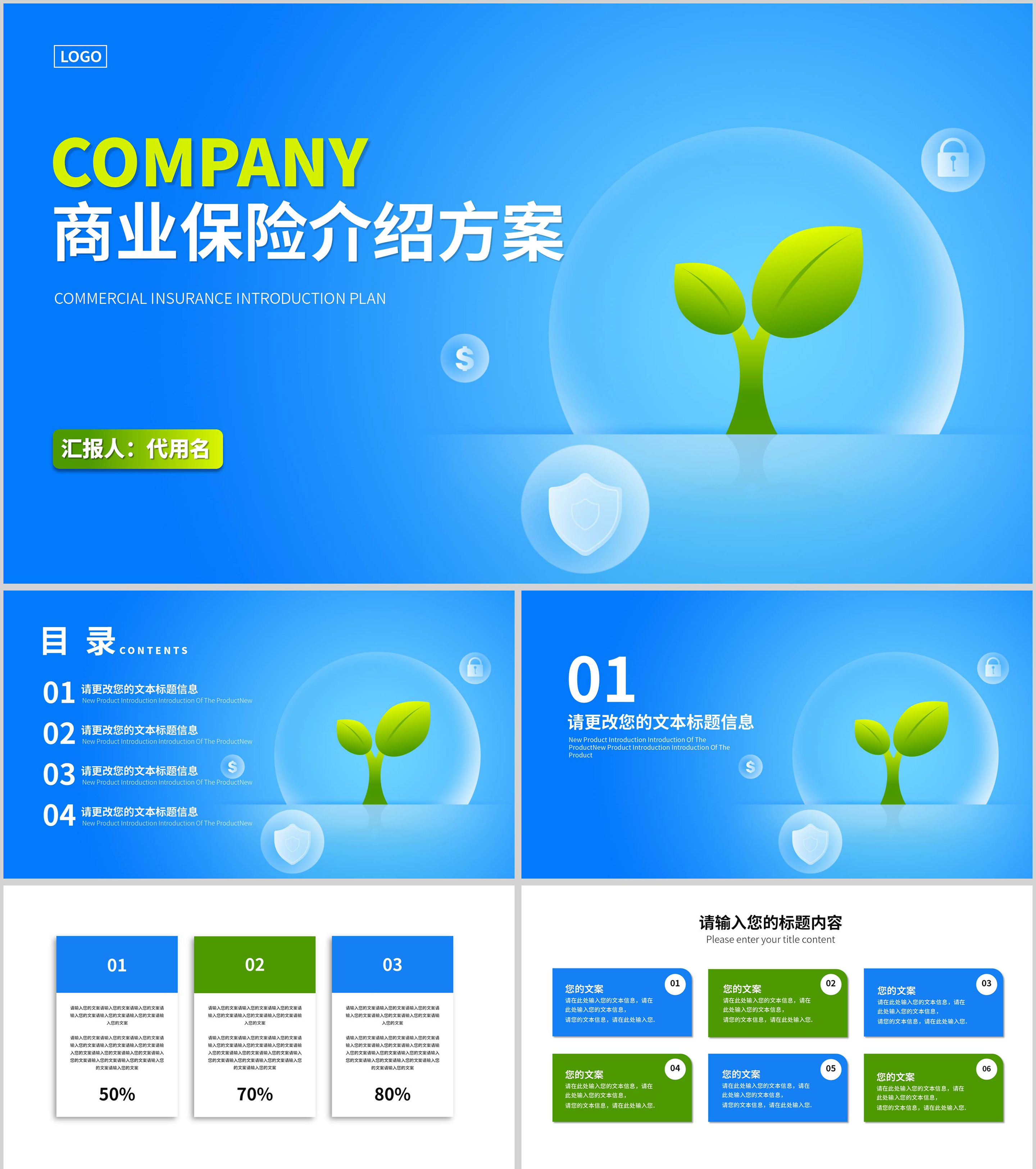 蓝色简约风保险介绍方案PPT模板