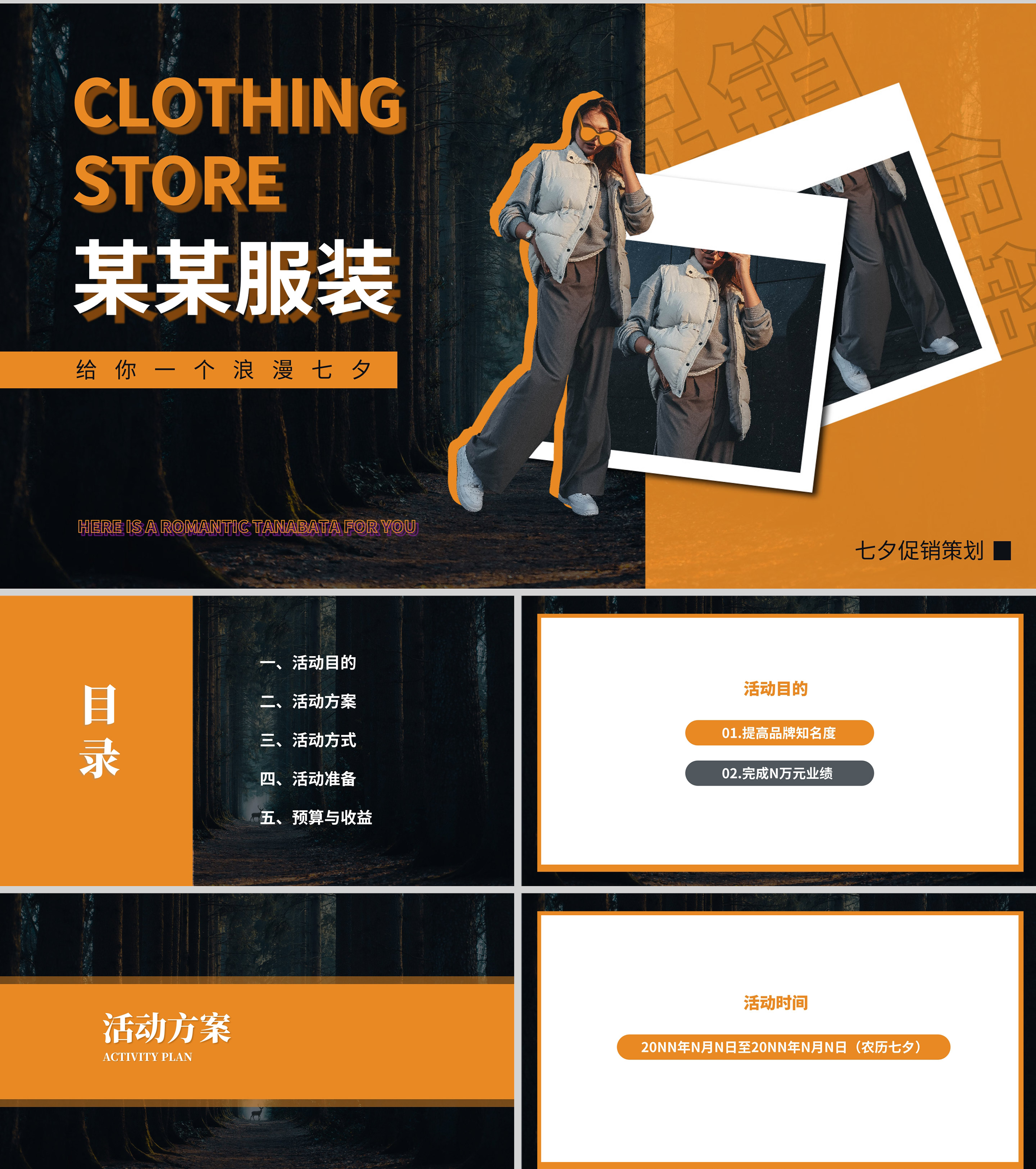 橙色画册风服装店七夕促销策划方案PPT模板