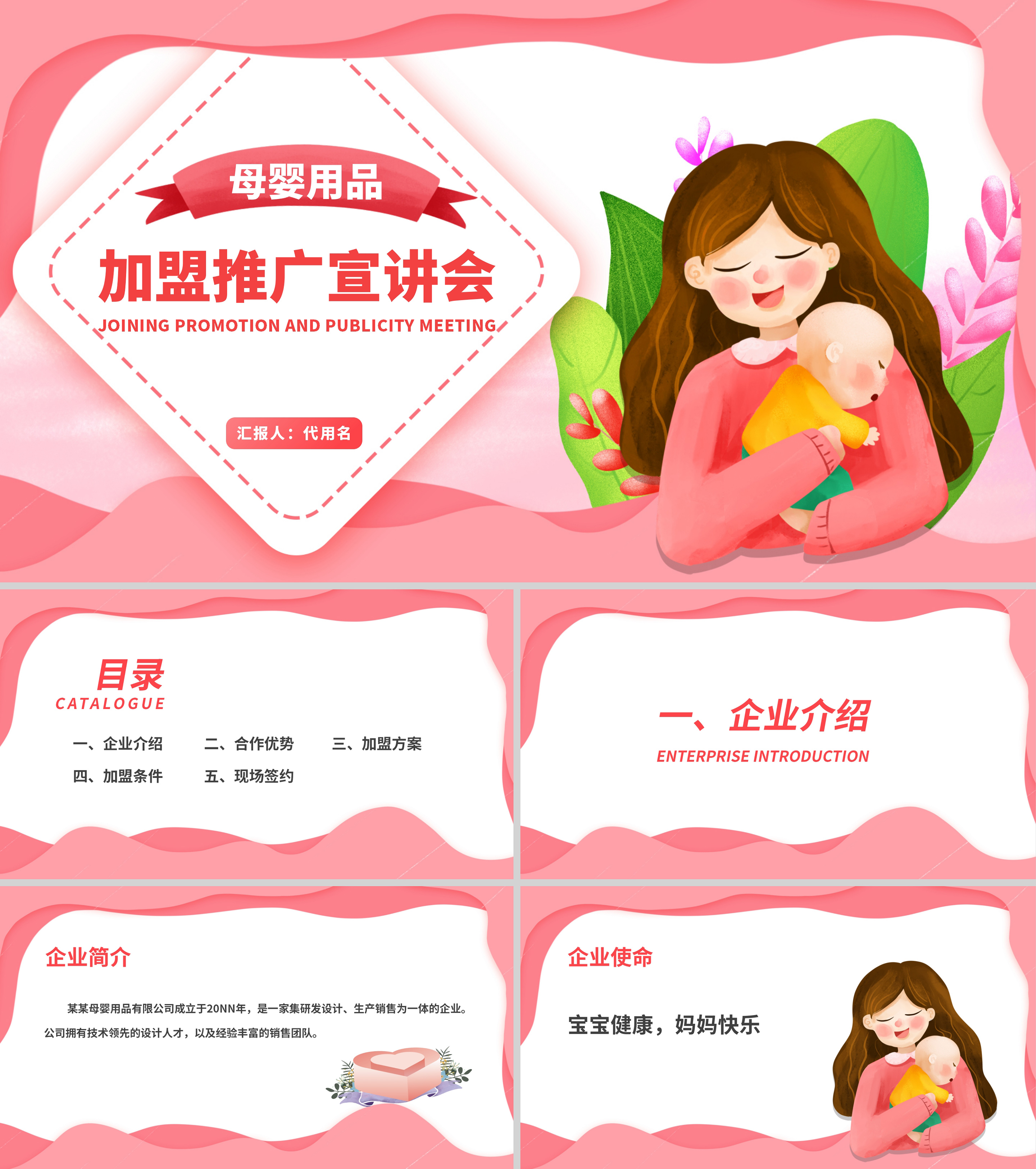 粉色插画风母婴加盟推广宣讲会销售PPT方案