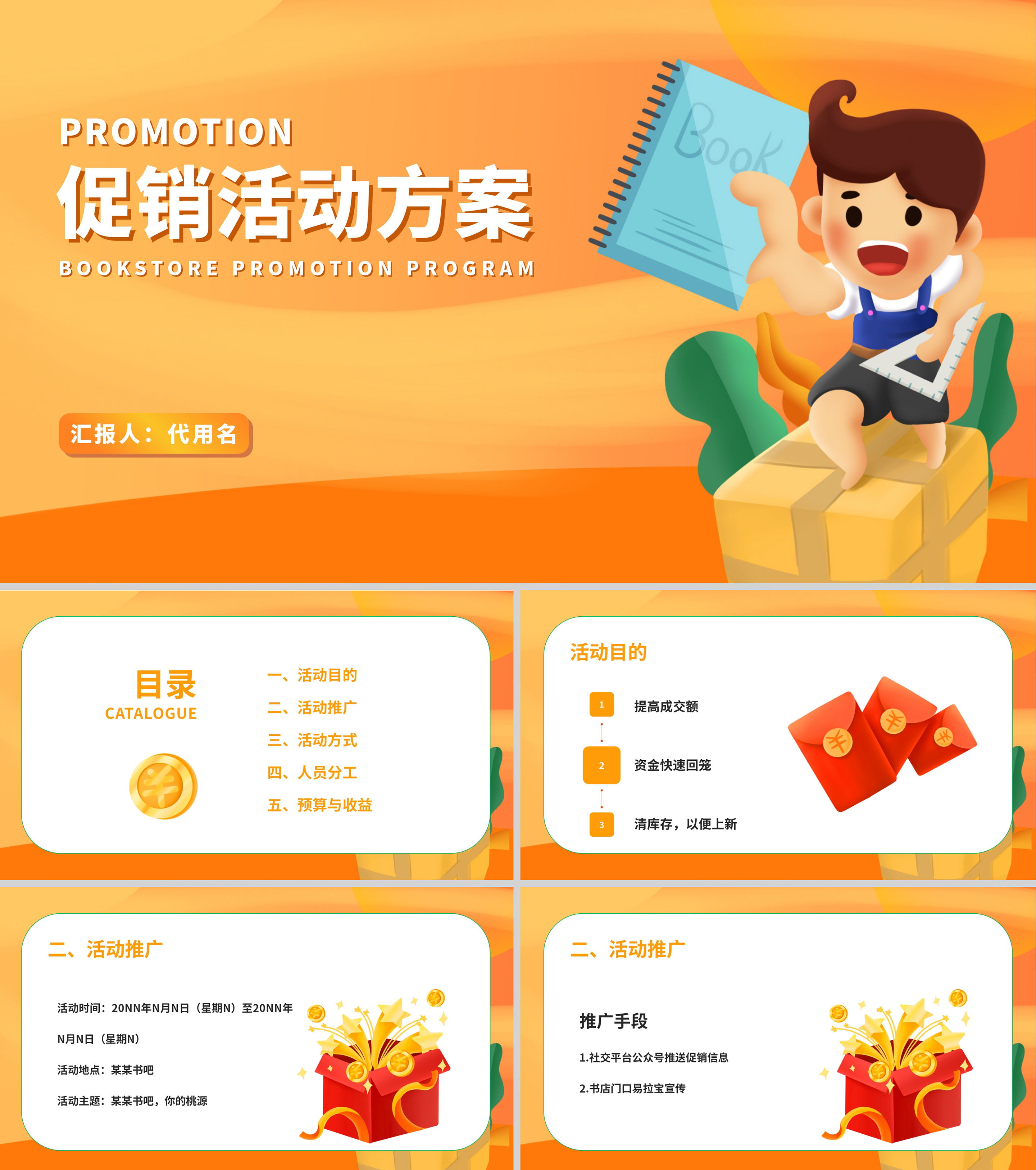 橙色卡通风学生书店促销活动策划PPT方案