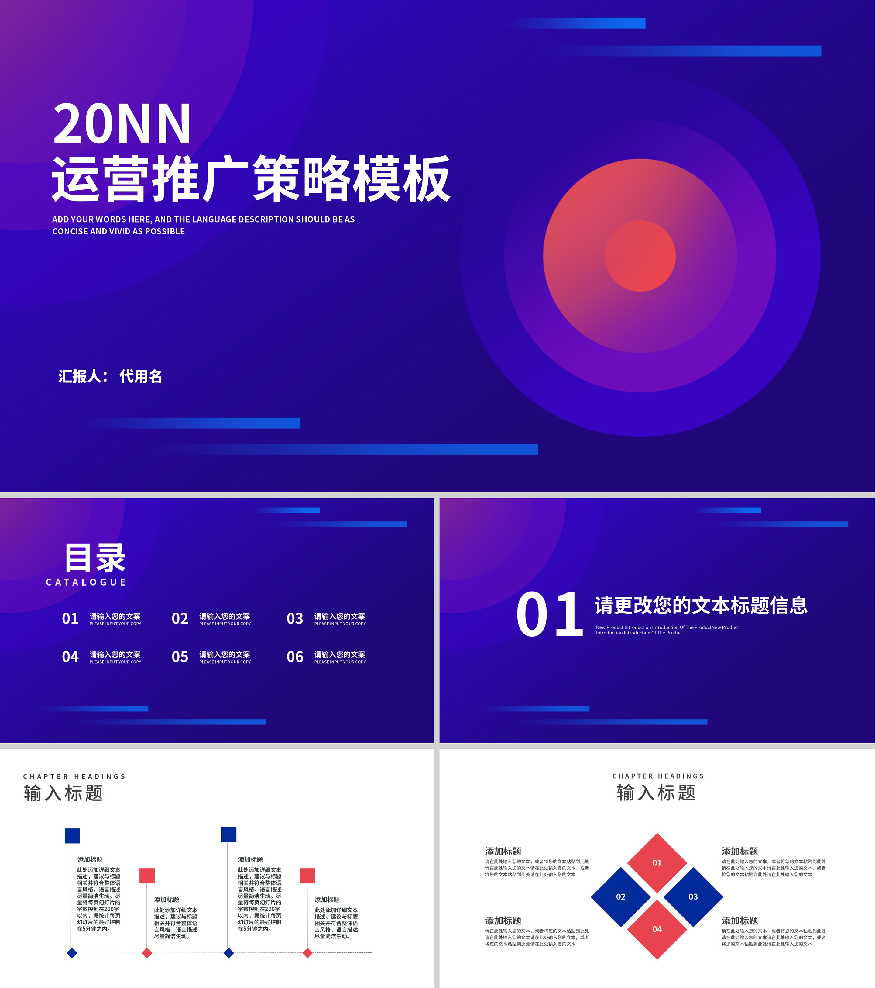 蓝色扁平风运营推广营销策划方案PPT模板