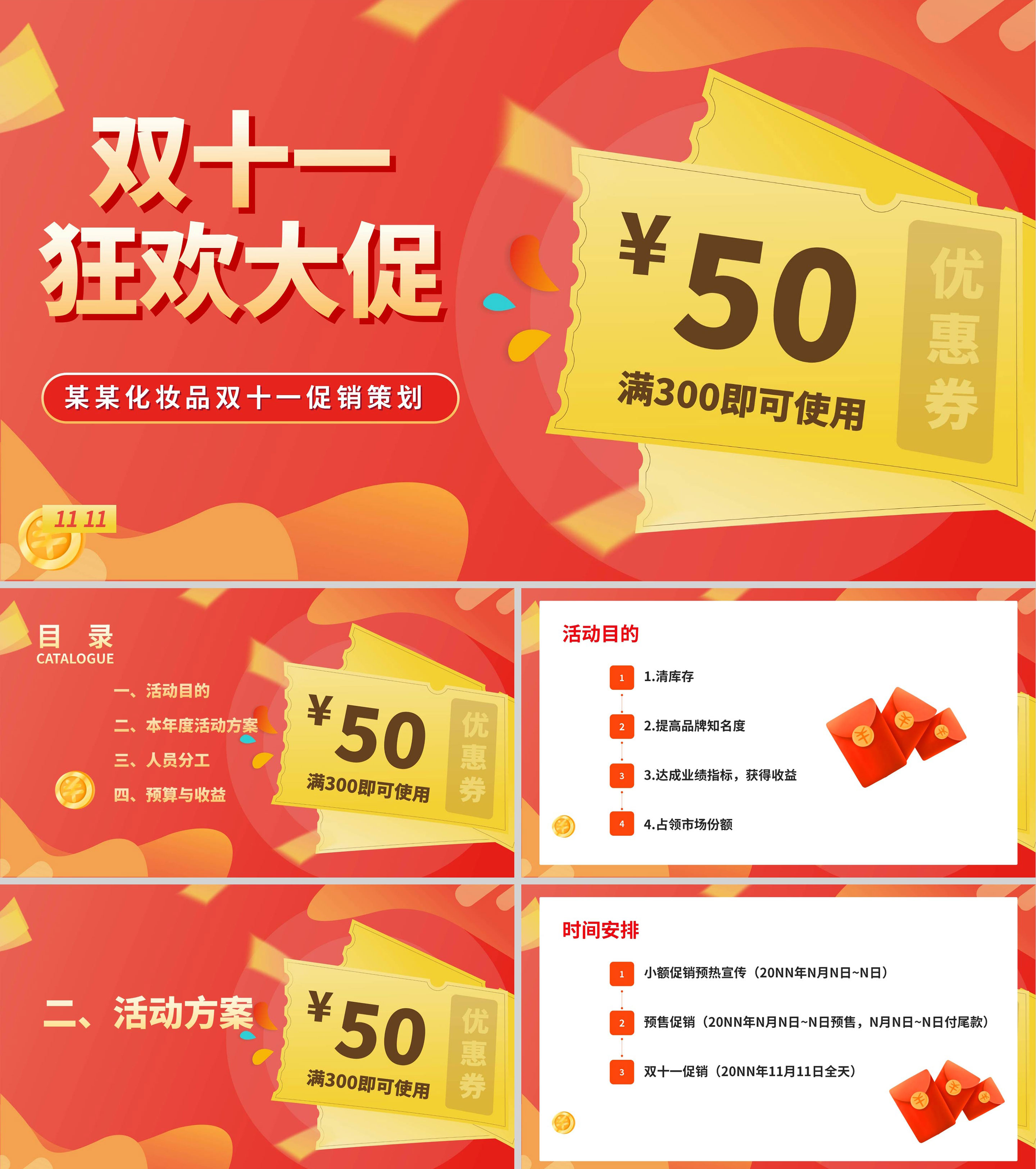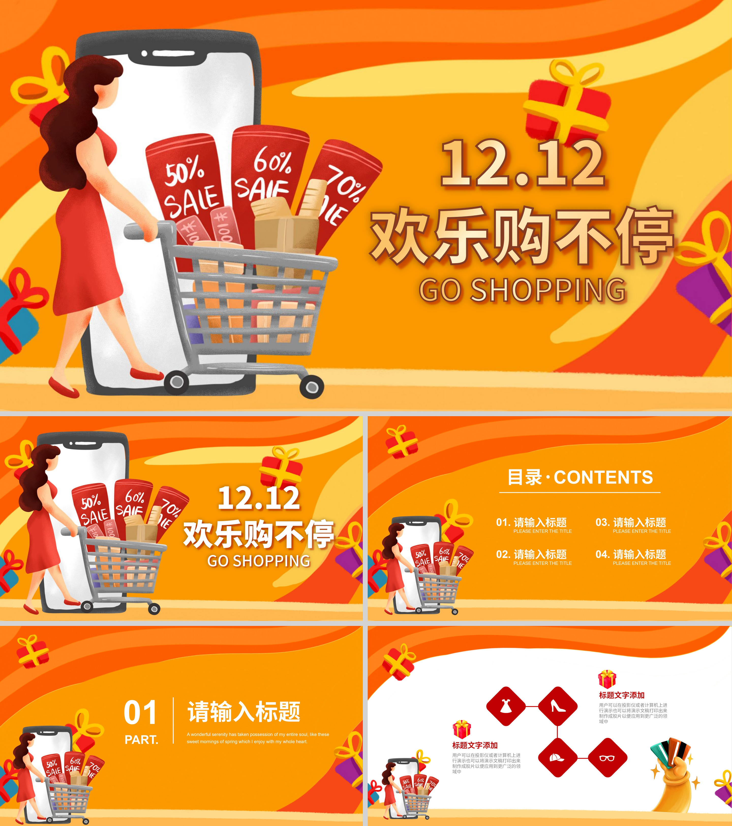 黄色插画风国潮双十二电商促销策划方案PPT模板