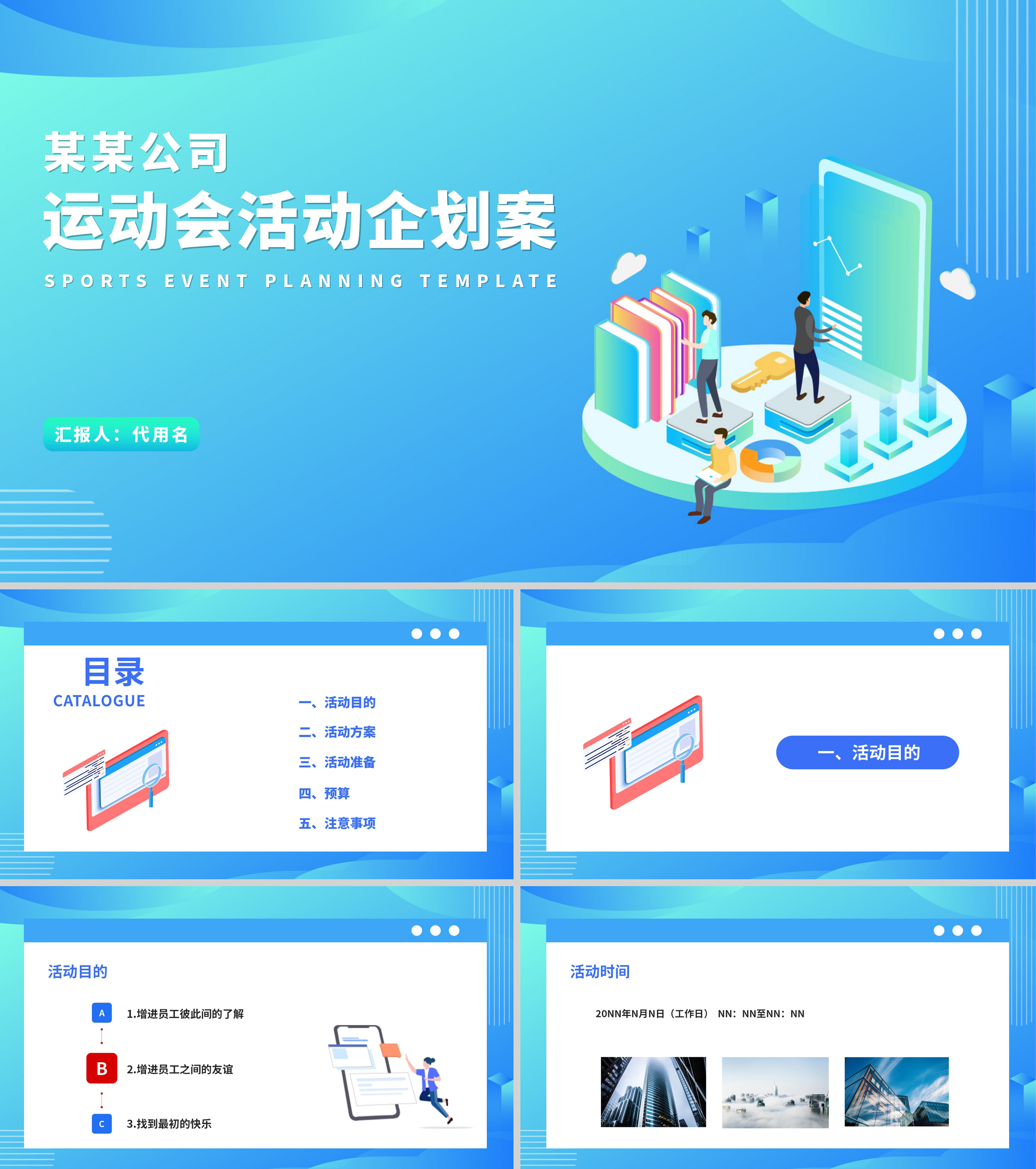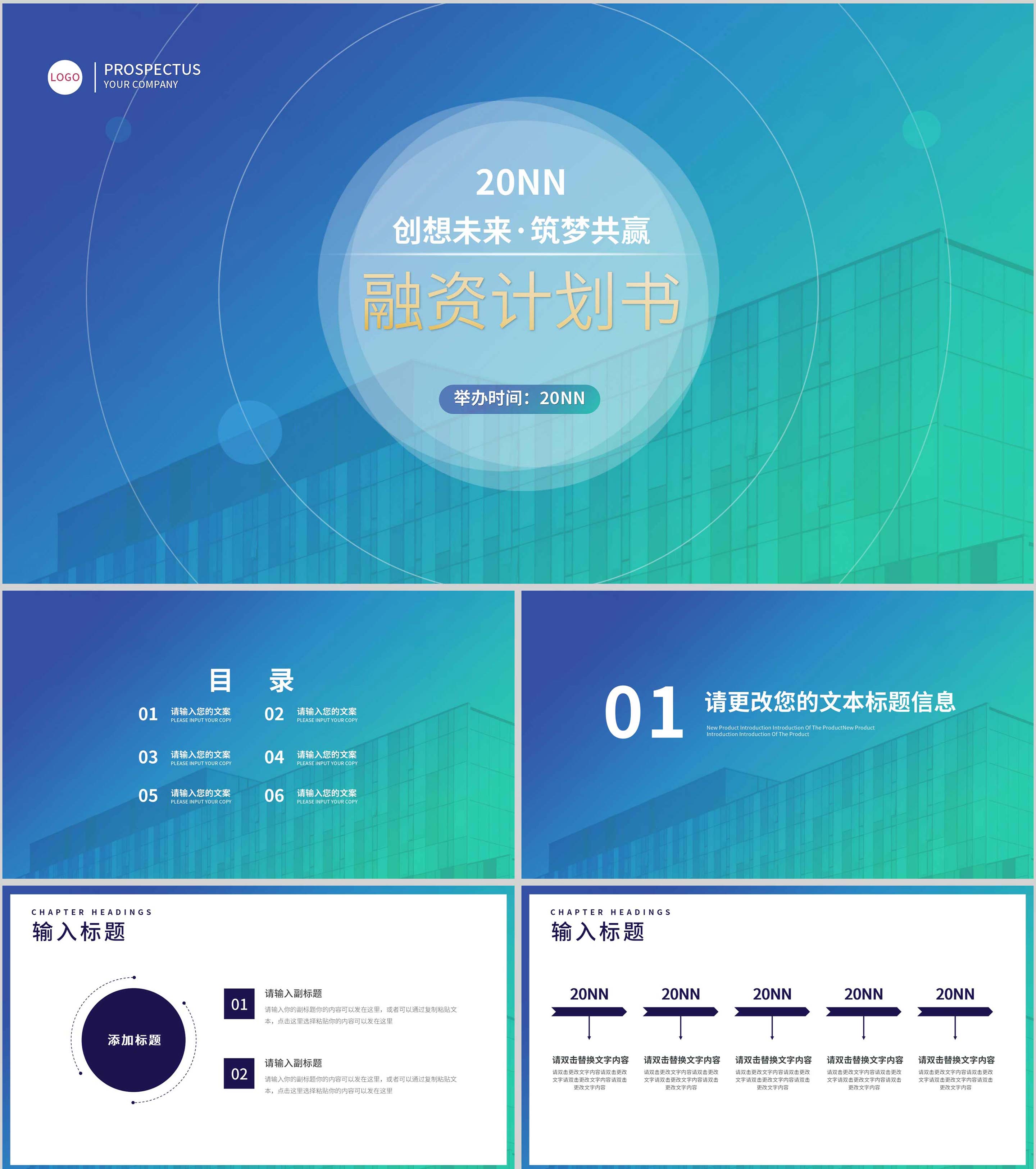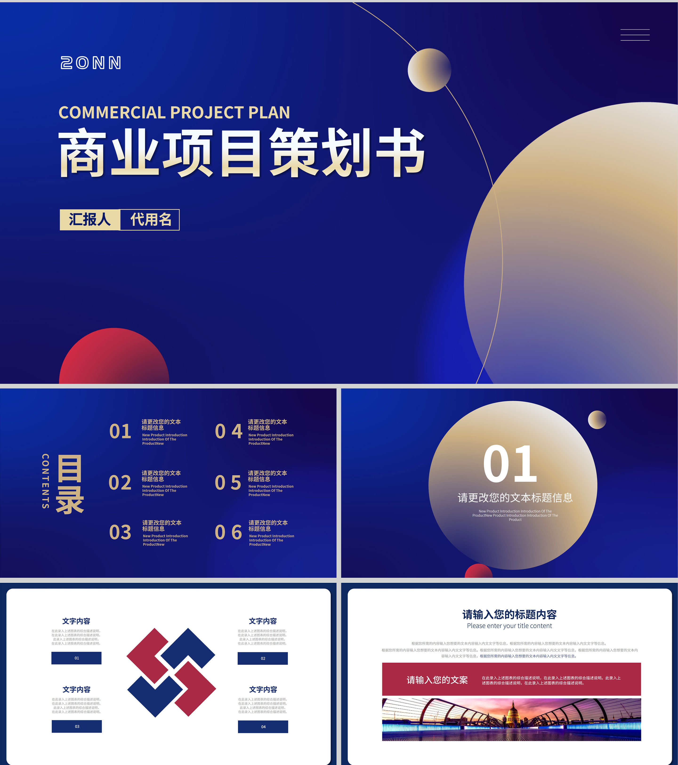 蓝色扁平风简约商业项目策划书方案PPT模板