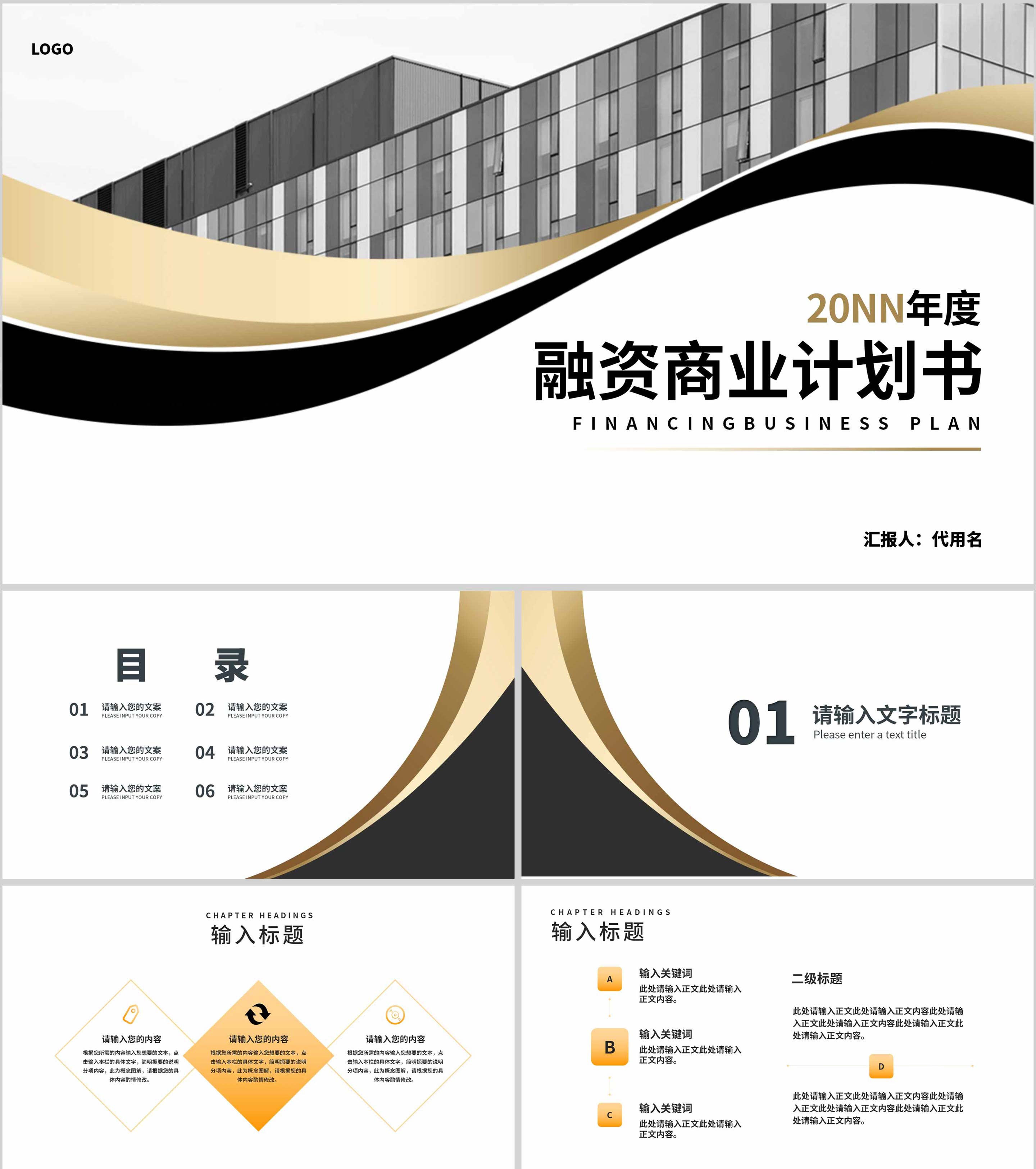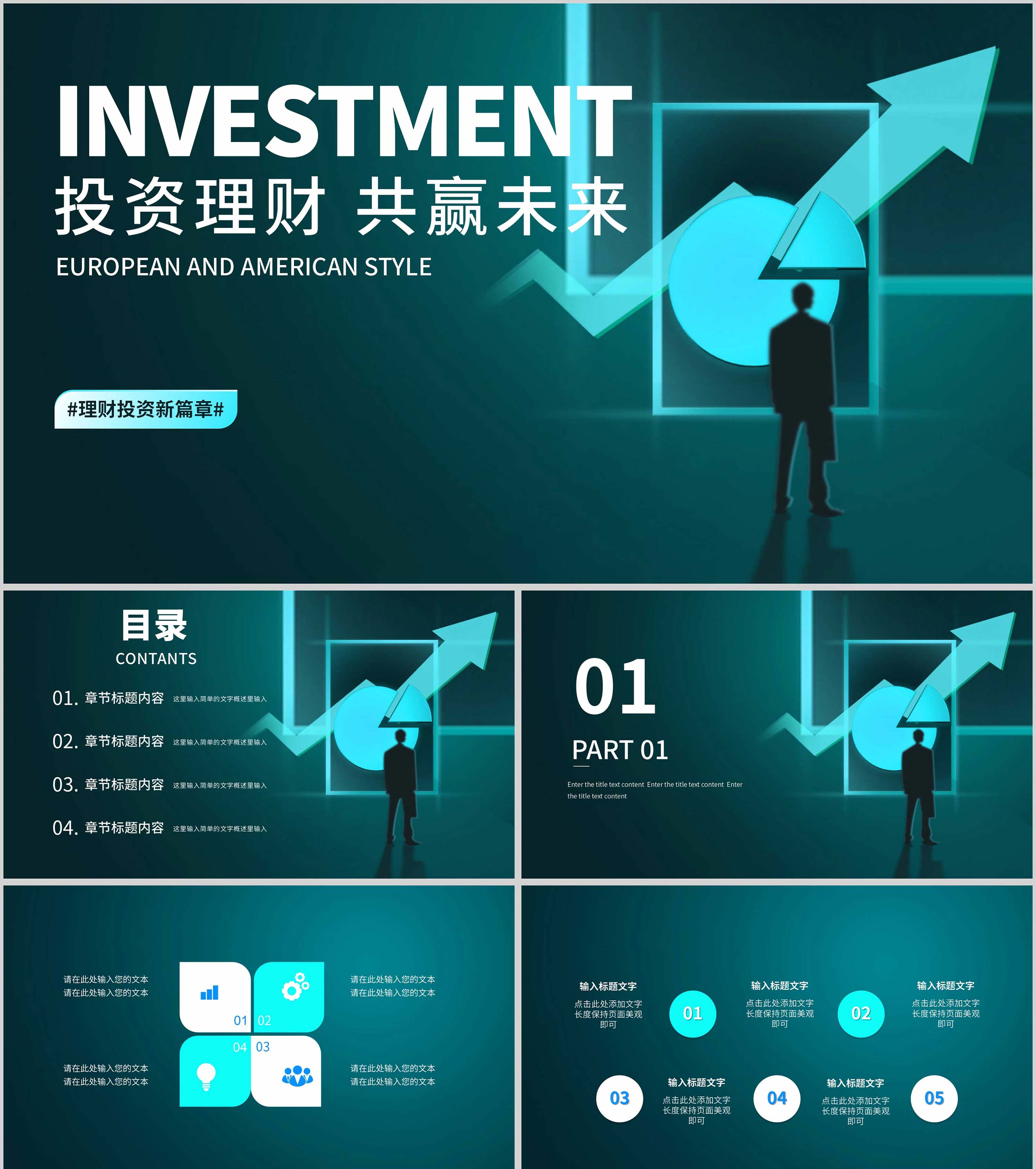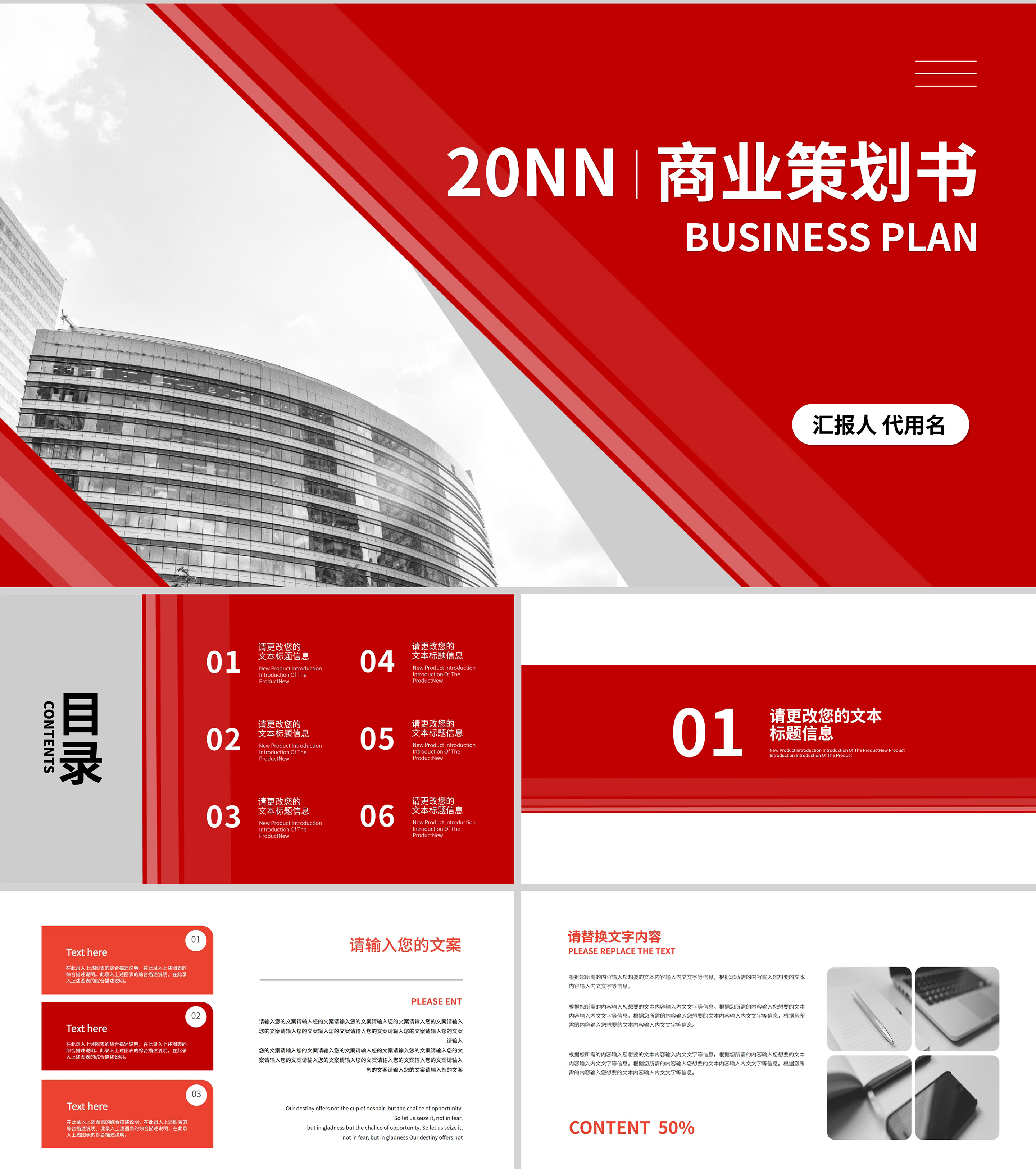 蓝色扁平风简约商业项目策划书方案PPT模板