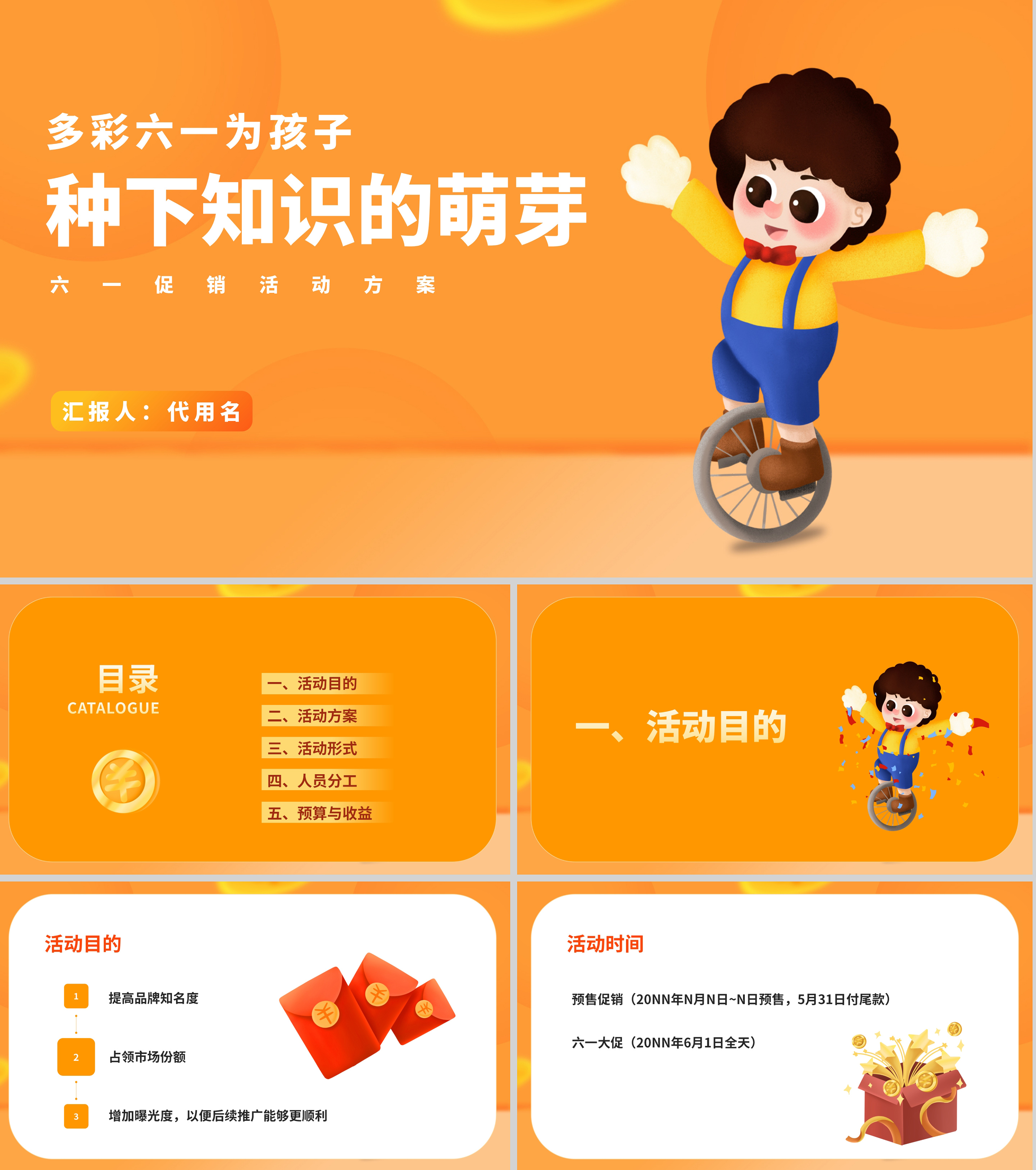黄色卡通风六一儿童节娱乐活动策划方案PPT模板