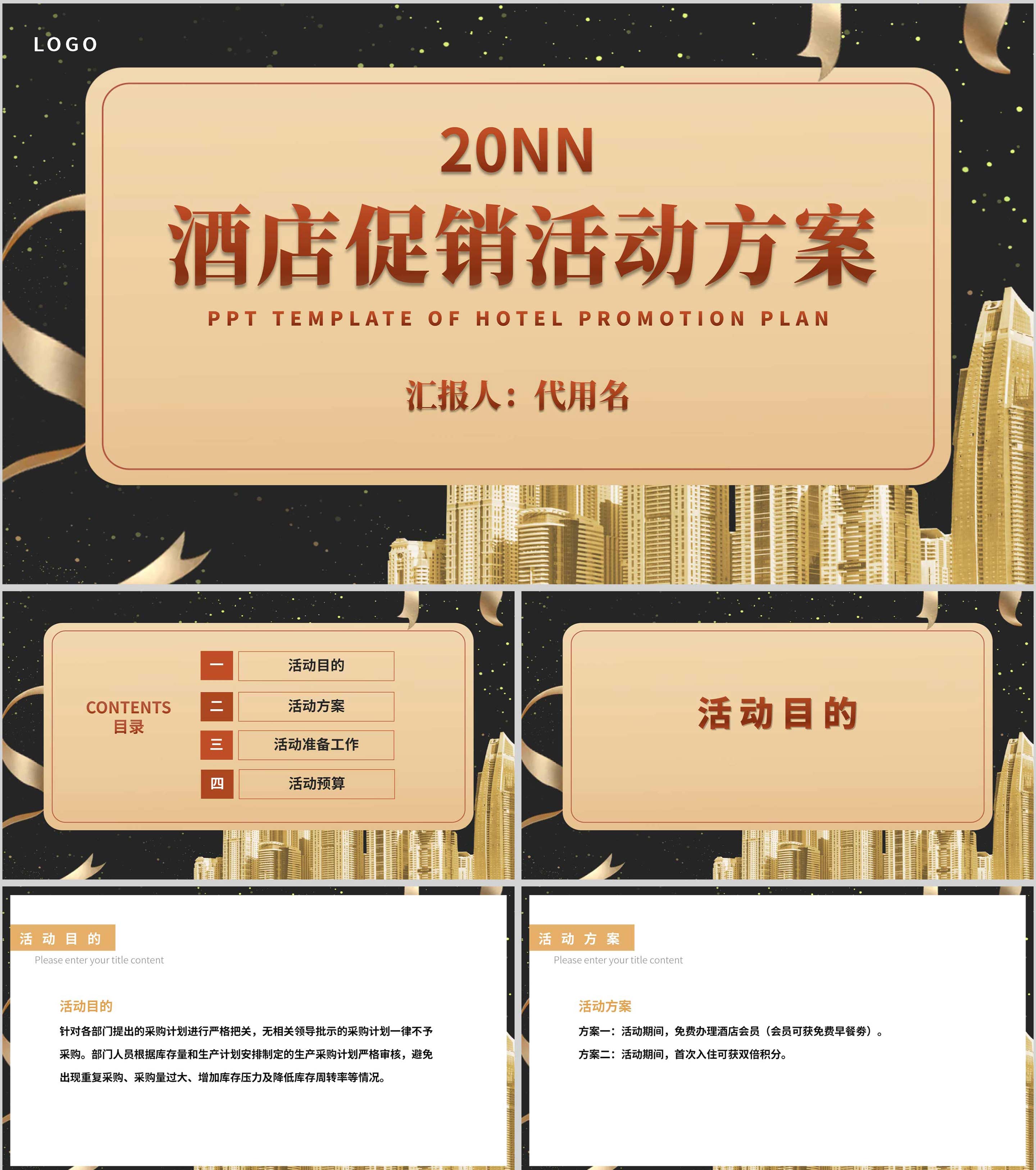 黑色鎏金风酒店促销活动策划PPT方案