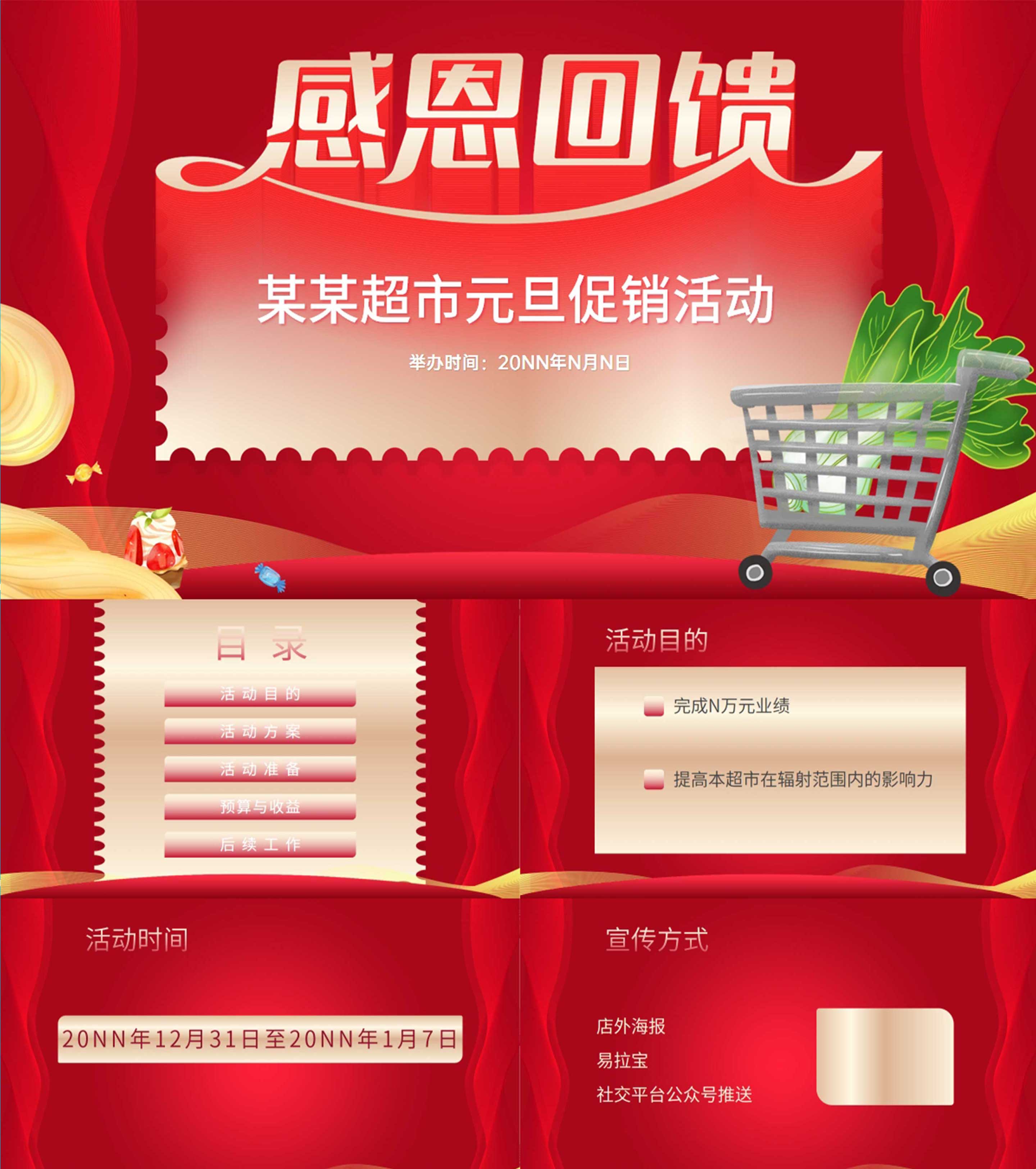 红色简约风元旦节日超市促销方案PPT模板