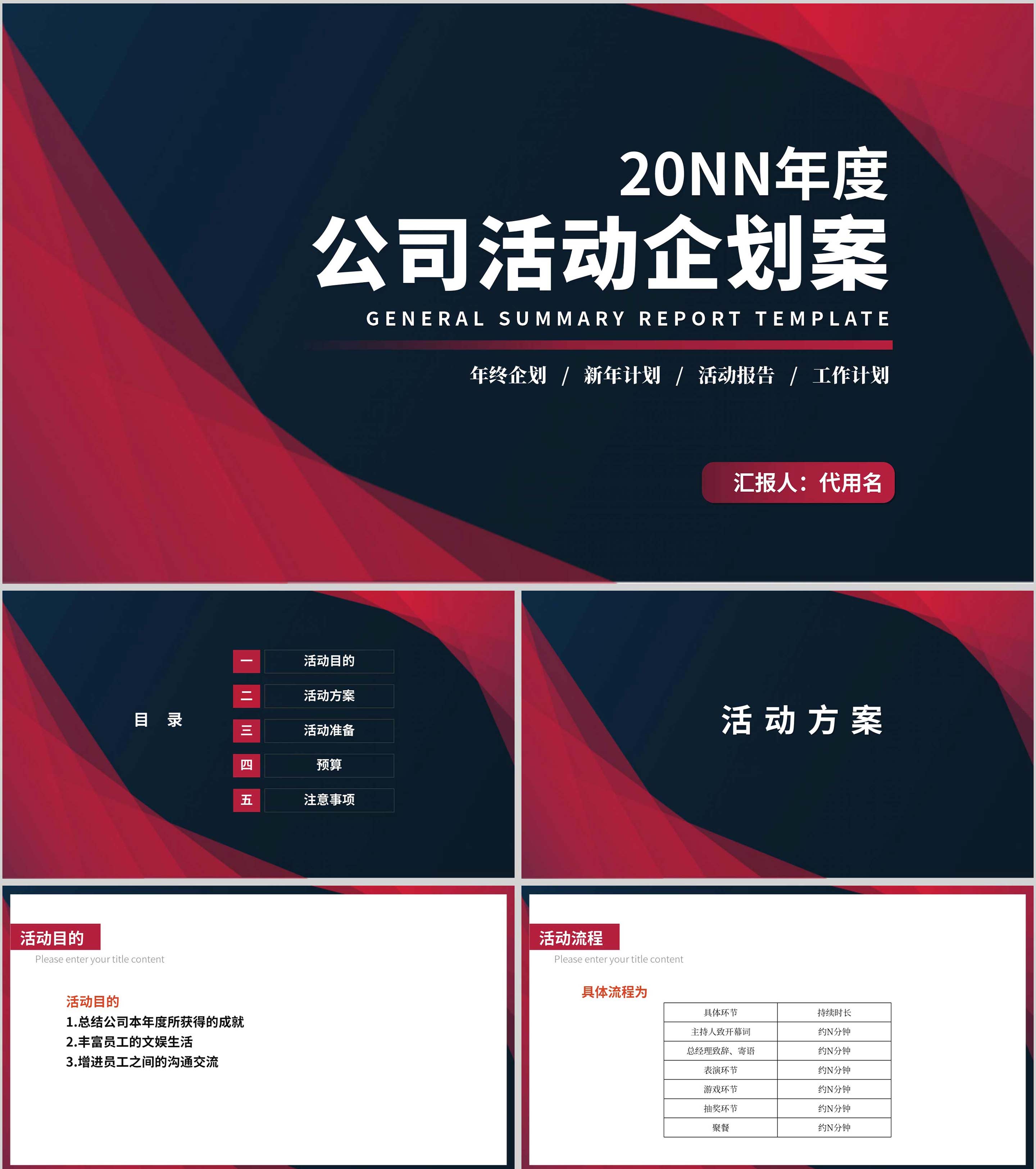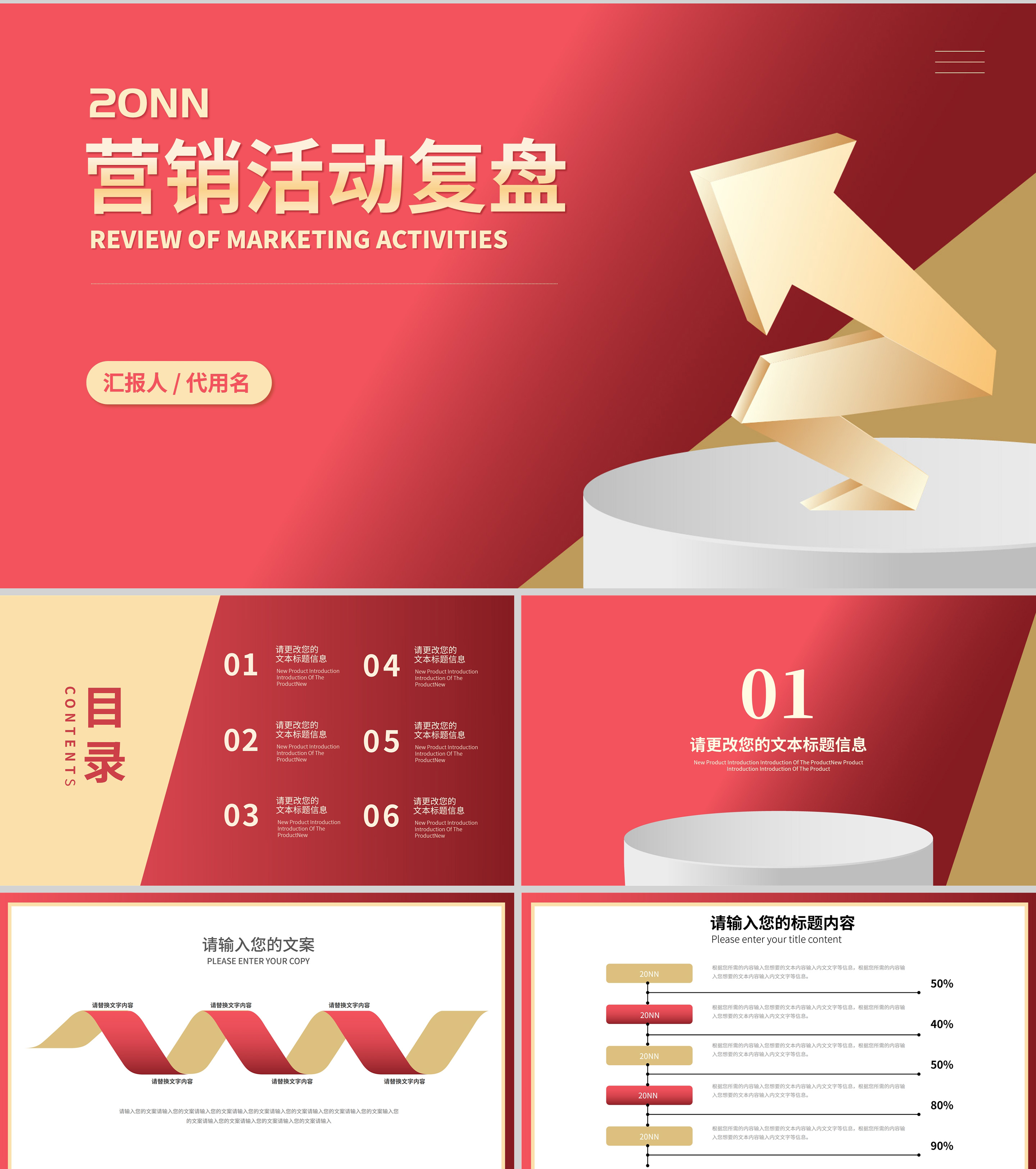 红色扁平风新年营销活动复盘策划方案PPT模板