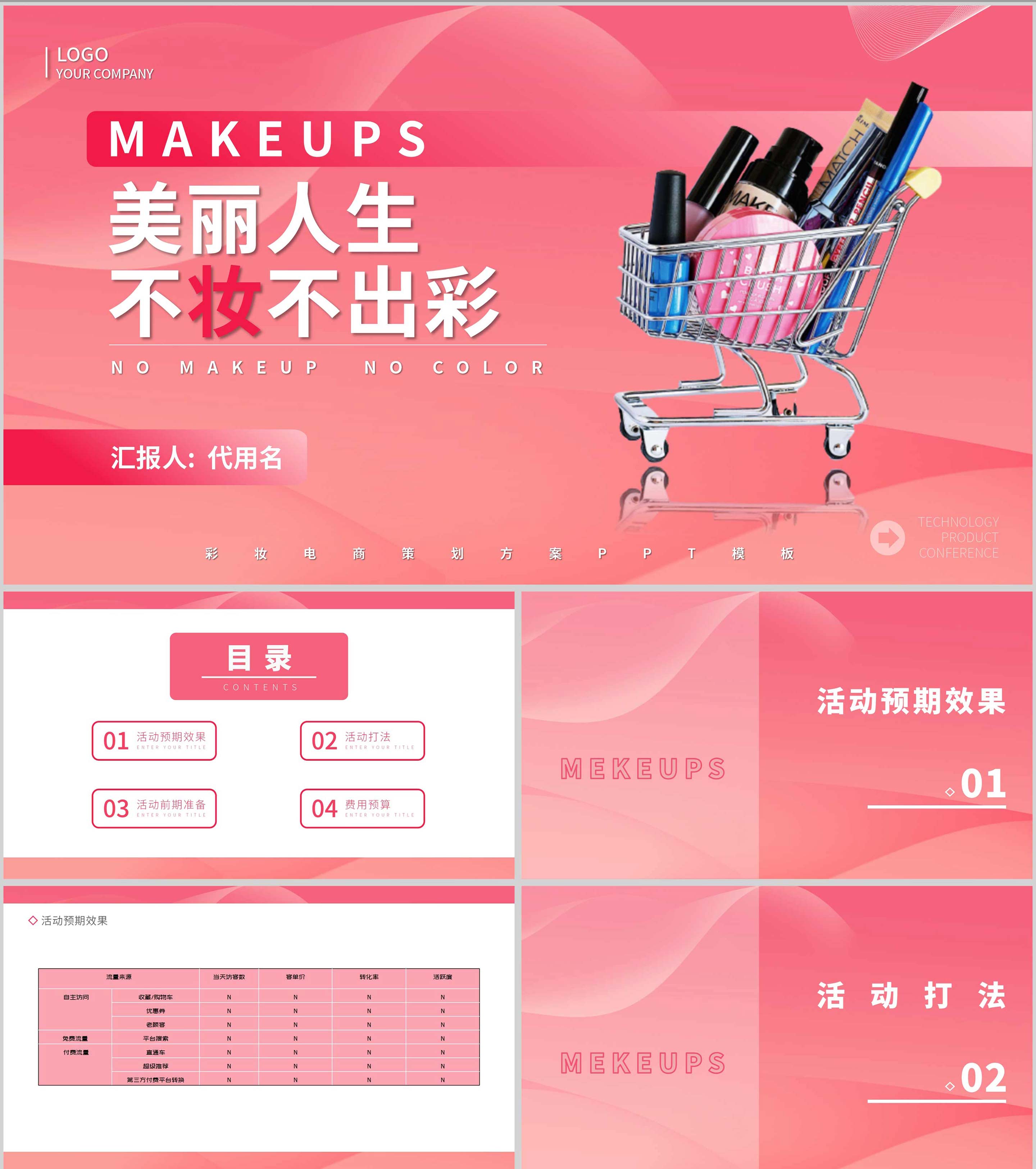 粉色几何风美妆活动策划方案PPT模板