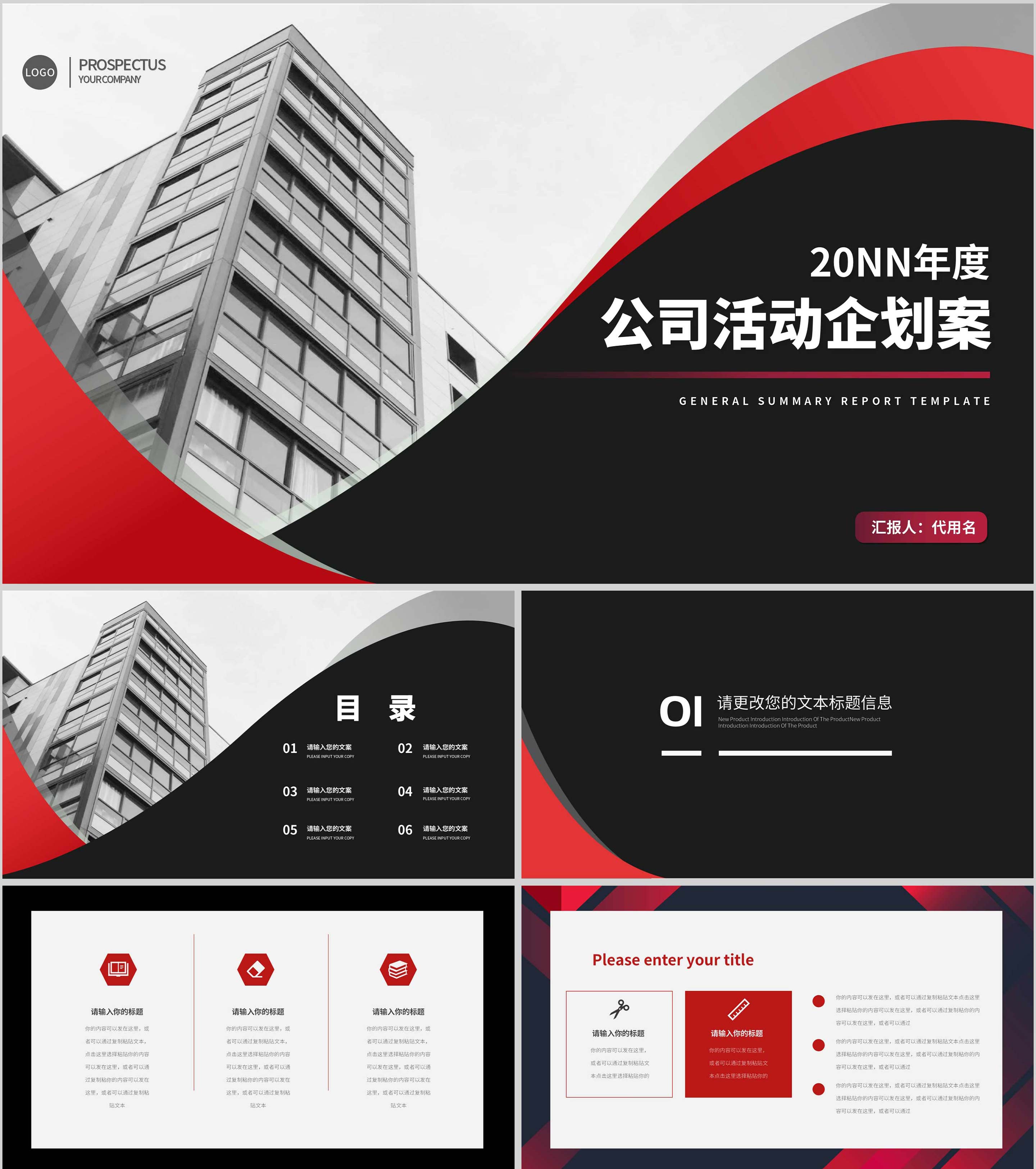 商务风灰红目标计划管理提案汇报PPT模板