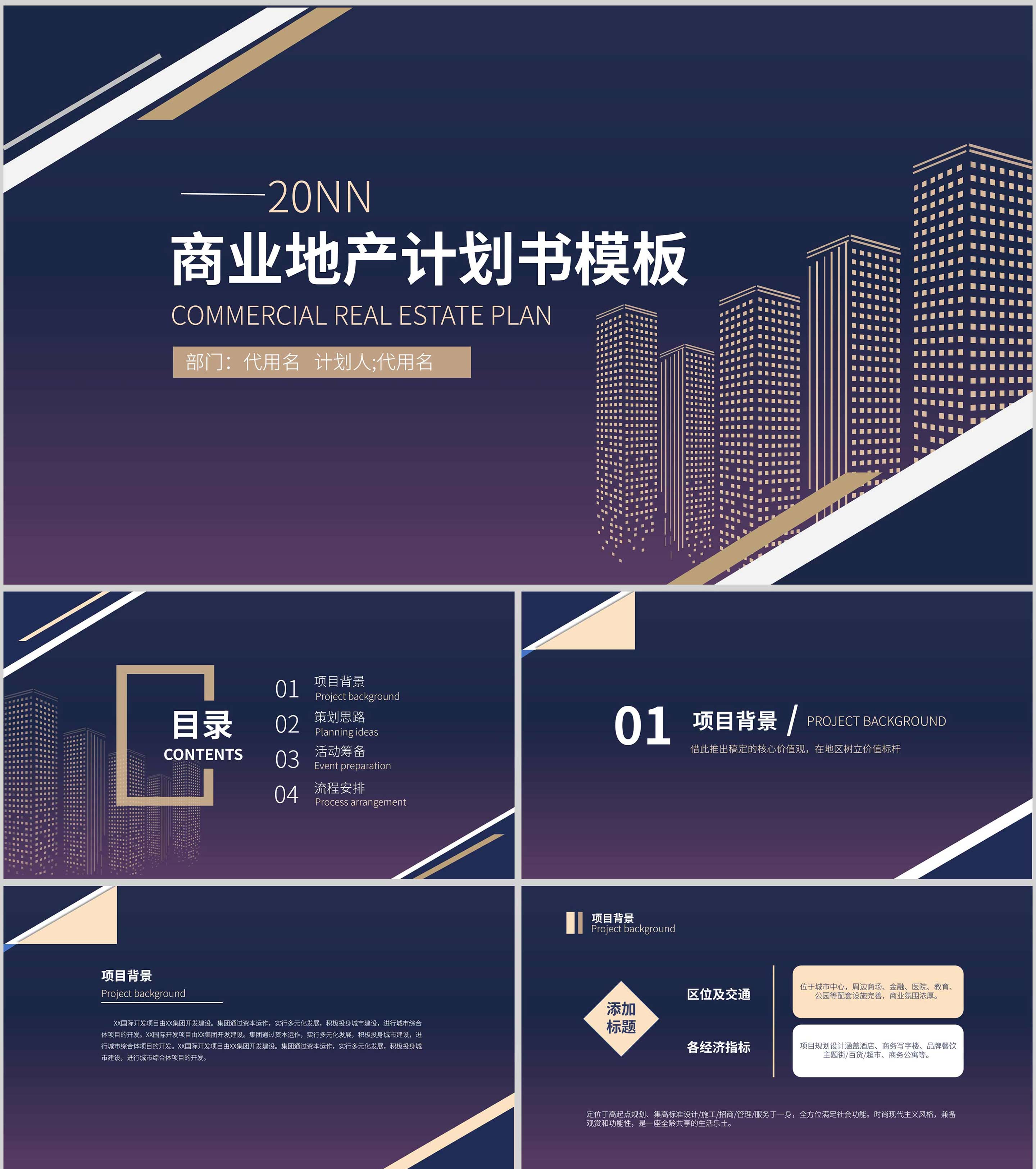 紫色渐变简约大气商业地产计划书PPT模板